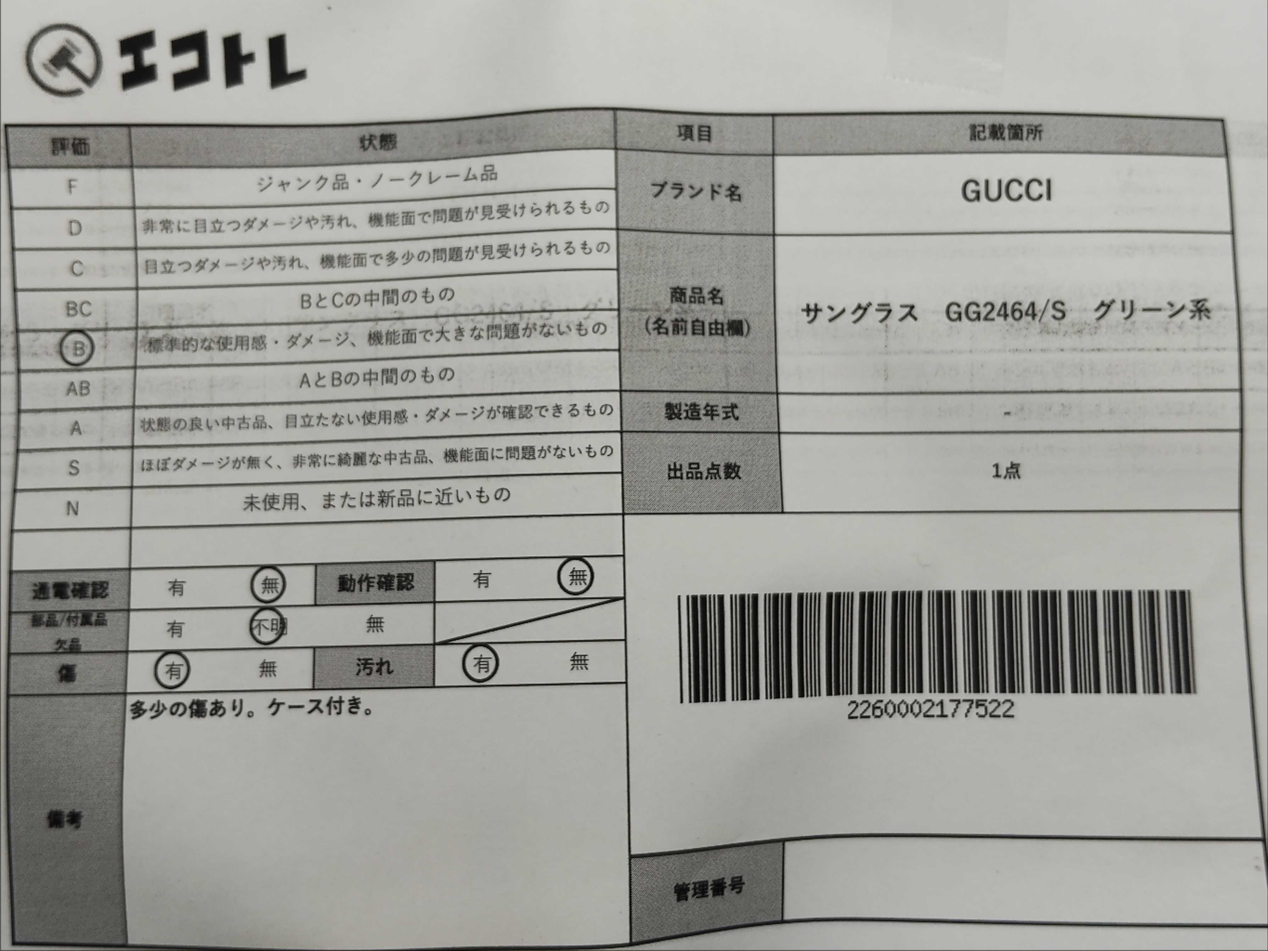 ◆CAN’T SHIPPING TO USA◆商品内容によって、JITBOXなどでの発送となる可能性がございます事ご理解下さい。年式などの商品情報詳細は写真にてご確認願います。※ご入札の際はご利用規約をよくお読みになってからのご参加お願いします。","タイプライン": "", "カテゴリ": "小物", "形状コード": "サングラス・メガネ", "付属品コード": "", "シリアル・シール・型番": ""
