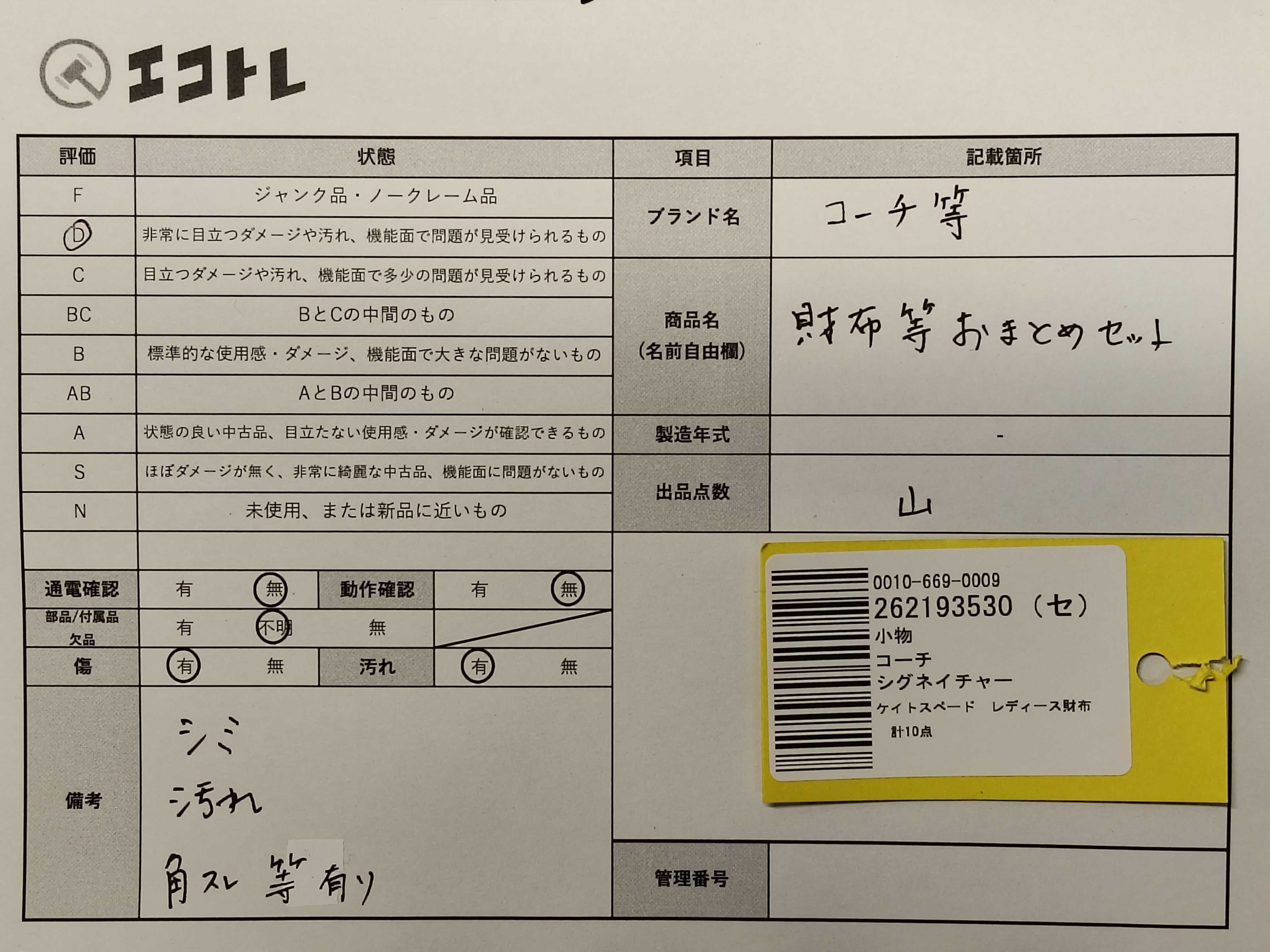 商品内容によって、JITBOXなどでの発送となる可能性がございます事ご理解下さい。年式などの商品情報詳細は写真にてご確認願います。※ご入札の際はご利用規約をよくお読みになってからのご参加お願いします。","タイプライン": "", "カテゴリ": "小物", "形状コード": "その他小物", "付属品コード": "", "シリアル・シール・型番": ""