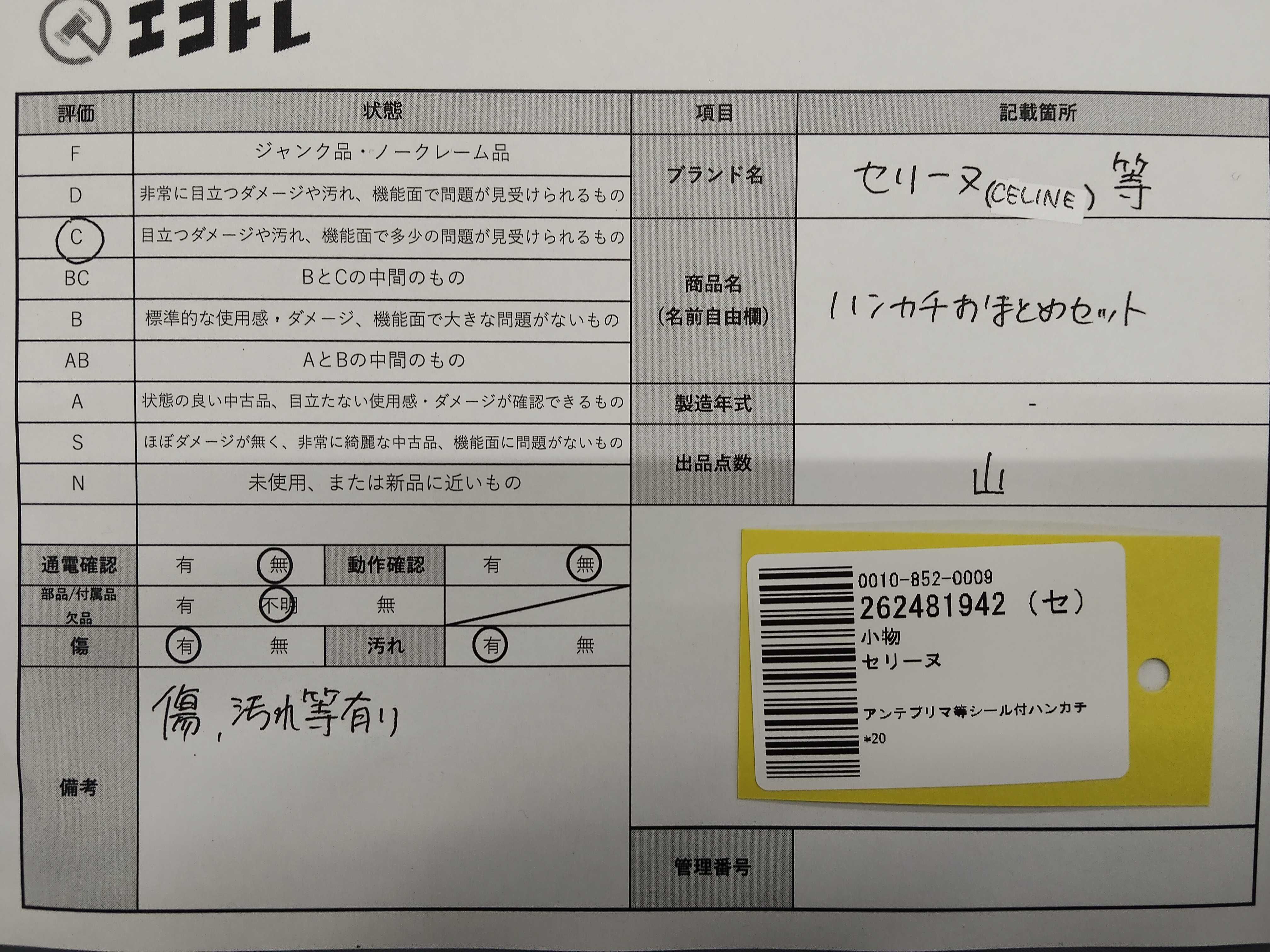 (11948_0259)▼CELINE アンテプリマ等シール付ハンカチ*20 おまとめ その他小物