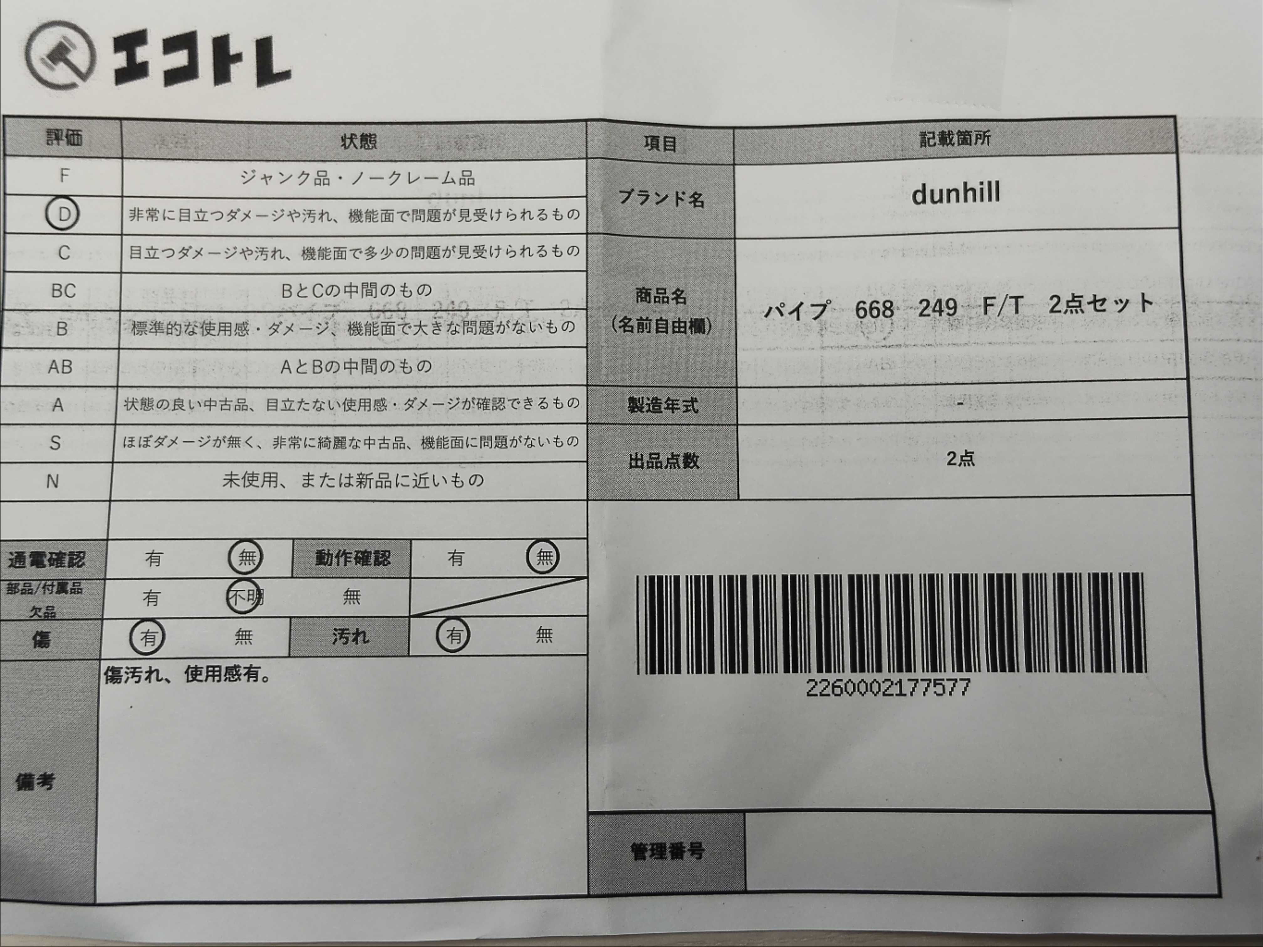 (11948_0261)▼dunhill ダンヒル パイプ 668 249 F/T 2点セット その他小物
