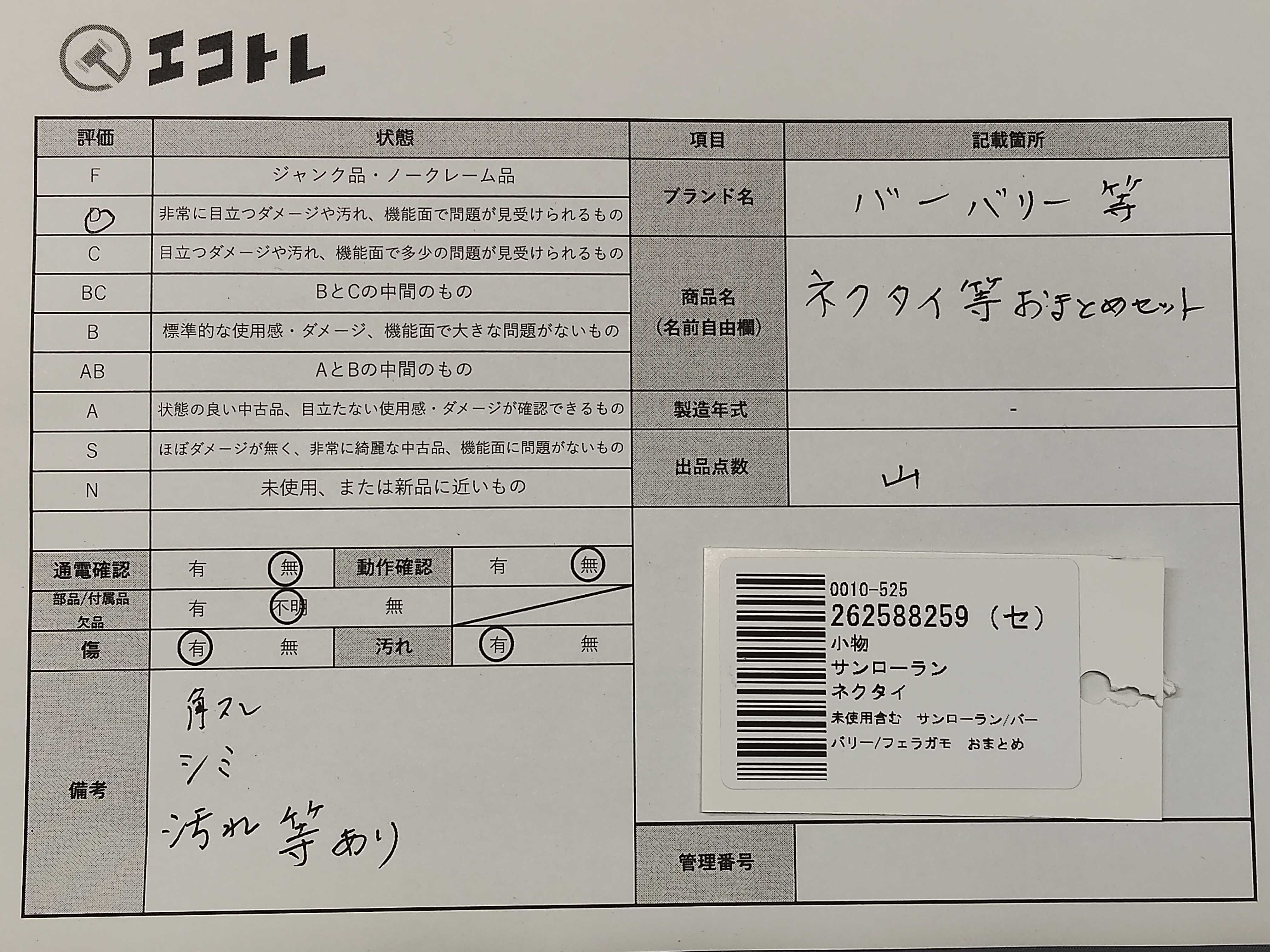 商品内容によって、JITBOXなどでの発送となる可能性がございます事ご理解下さい。年式などの商品情報詳細は写真にてご確認願います。※ご入札の際はご利用規約をよくお読みになってからのご参加お願いします。","タイプライン": "", "カテゴリ": "小物", "形状コード": "その他小物", "付属品コード": "", "シリアル・シール・型番": ""