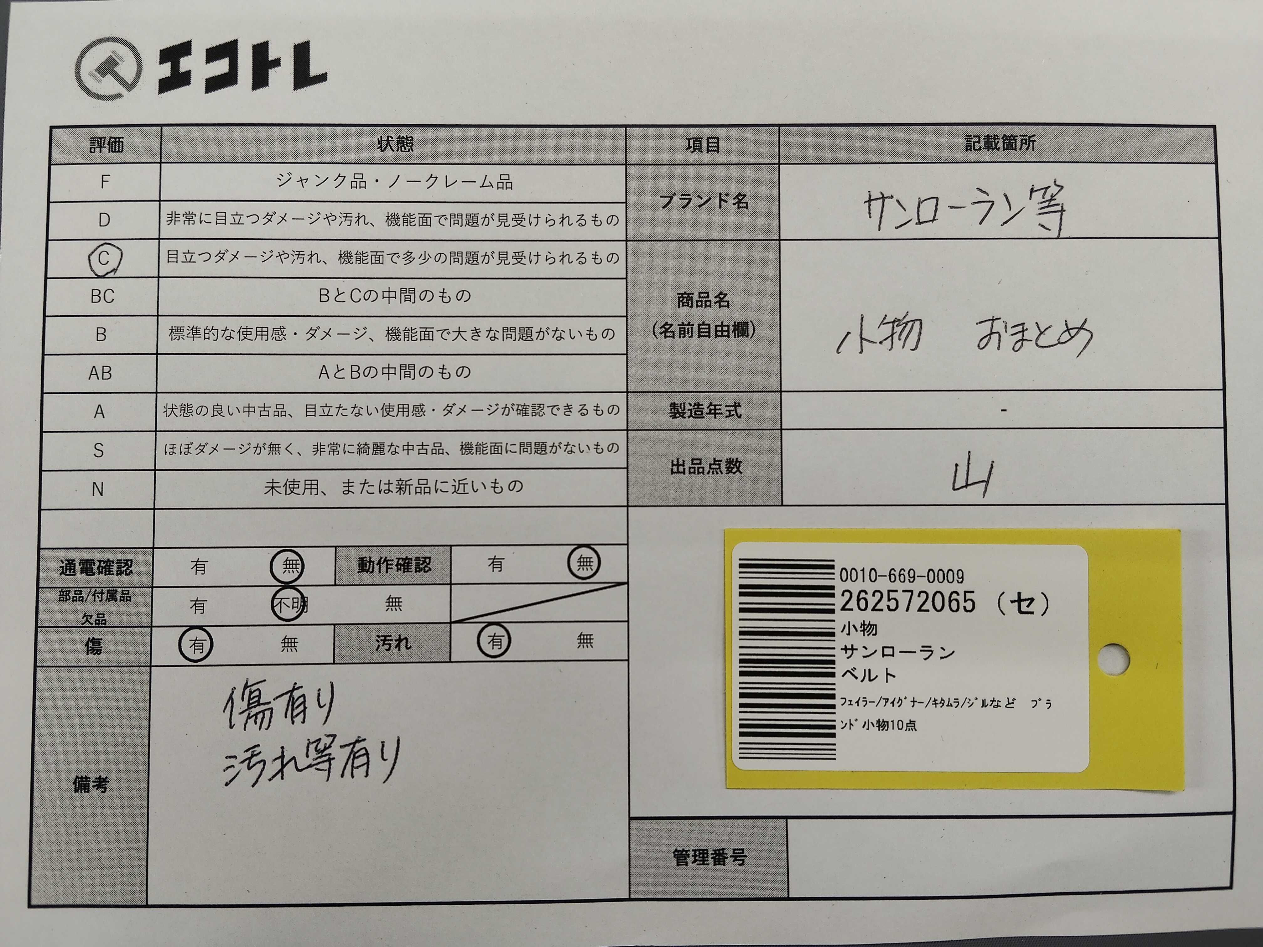商品内容によって、JITBOXなどでの発送となる可能性がございます事ご理解下さい。年式などの商品情報詳細は写真にてご確認願います。※ご入札の際はご利用規約をよくお読みになってからのご参加お願いします。","タイプライン": "", "カテゴリ": "小物", "形状コード": "その他小物", "付属品コード": "", "シリアル・シール・型番": ""