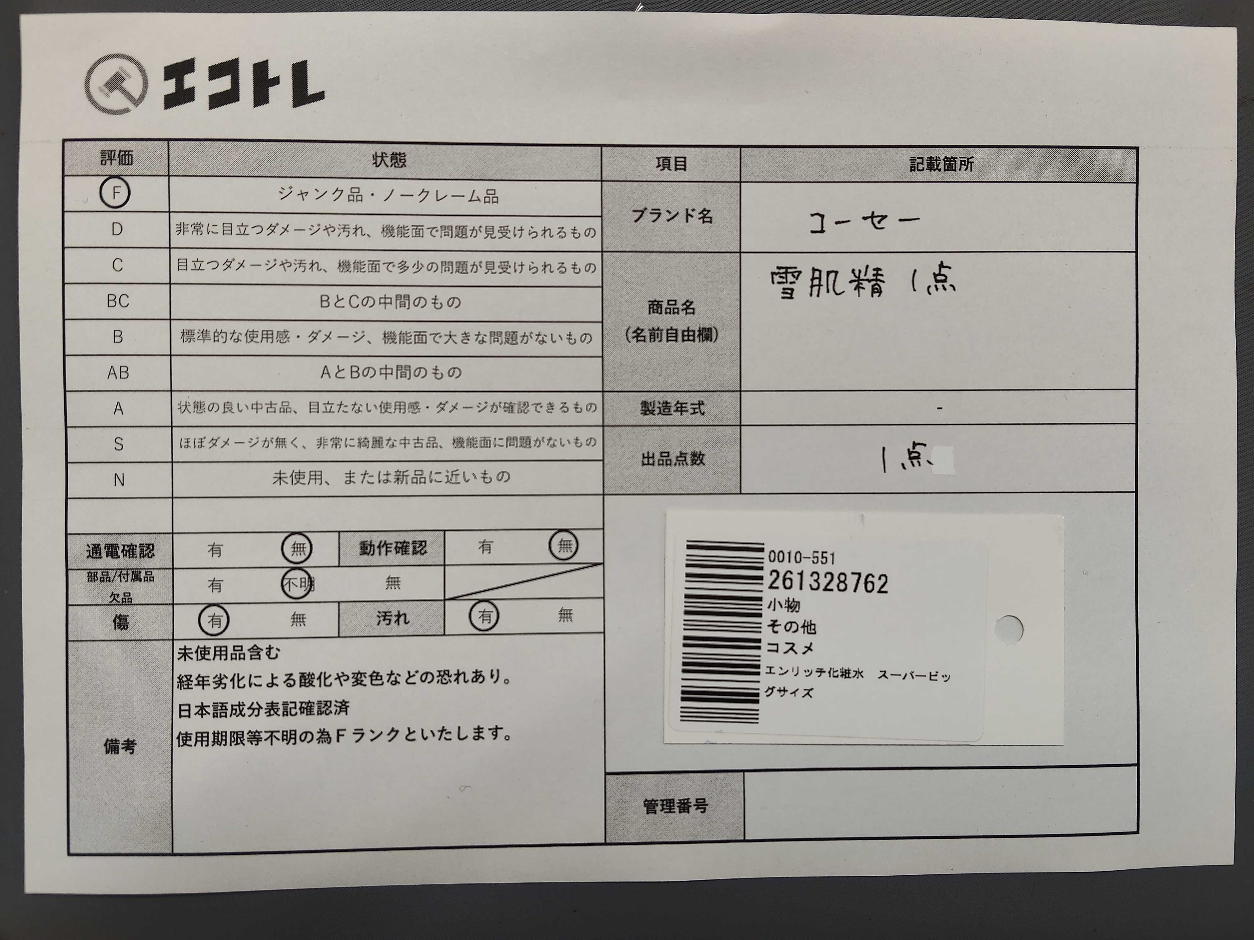 商品内容によって、JITBOXなどでの発送となる可能性がございます事ご理解下さい。年式などの商品情報詳細は写真にてご確認願います。※ご入札の際はご利用規約をよくお読みになってからのご参加お願いします。","タイプライン": "", "カテゴリ": "小物", "形状コード": "その他小物", "付属品コード": "", "シリアル・シール・型番": ""
