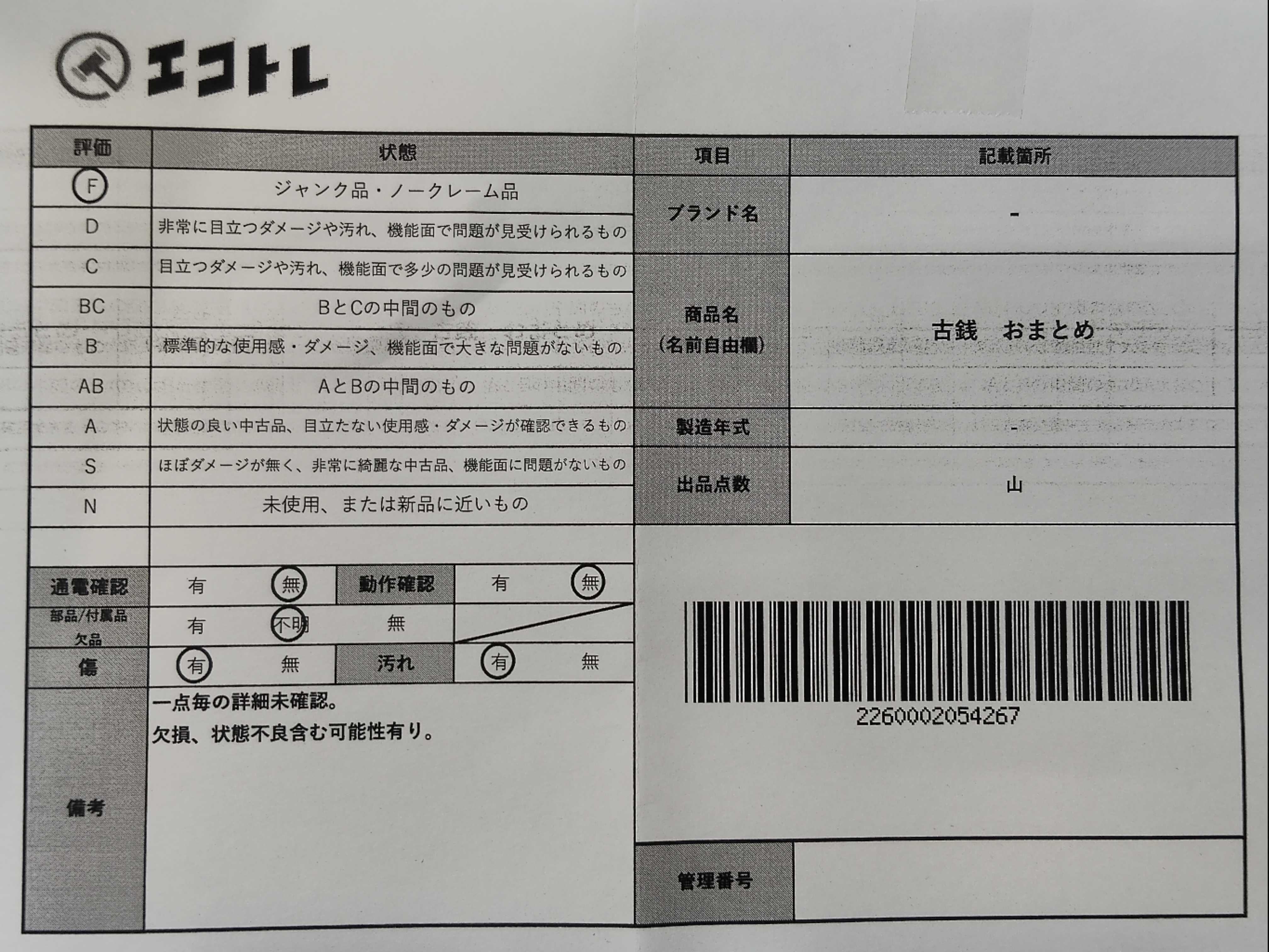 商品内容によって、JITBOXなどでの発送となる可能性がございます事ご理解下さい。年式などの商品情報詳細は写真にてご確認願います。※ご入札の際はご利用規約をよくお読みになってからのご参加お願いします。","タイプライン": "", "カテゴリ": "小物", "形状コード": "その他小物", "付属品コード": "", "シリアル・シール・型番": ""
