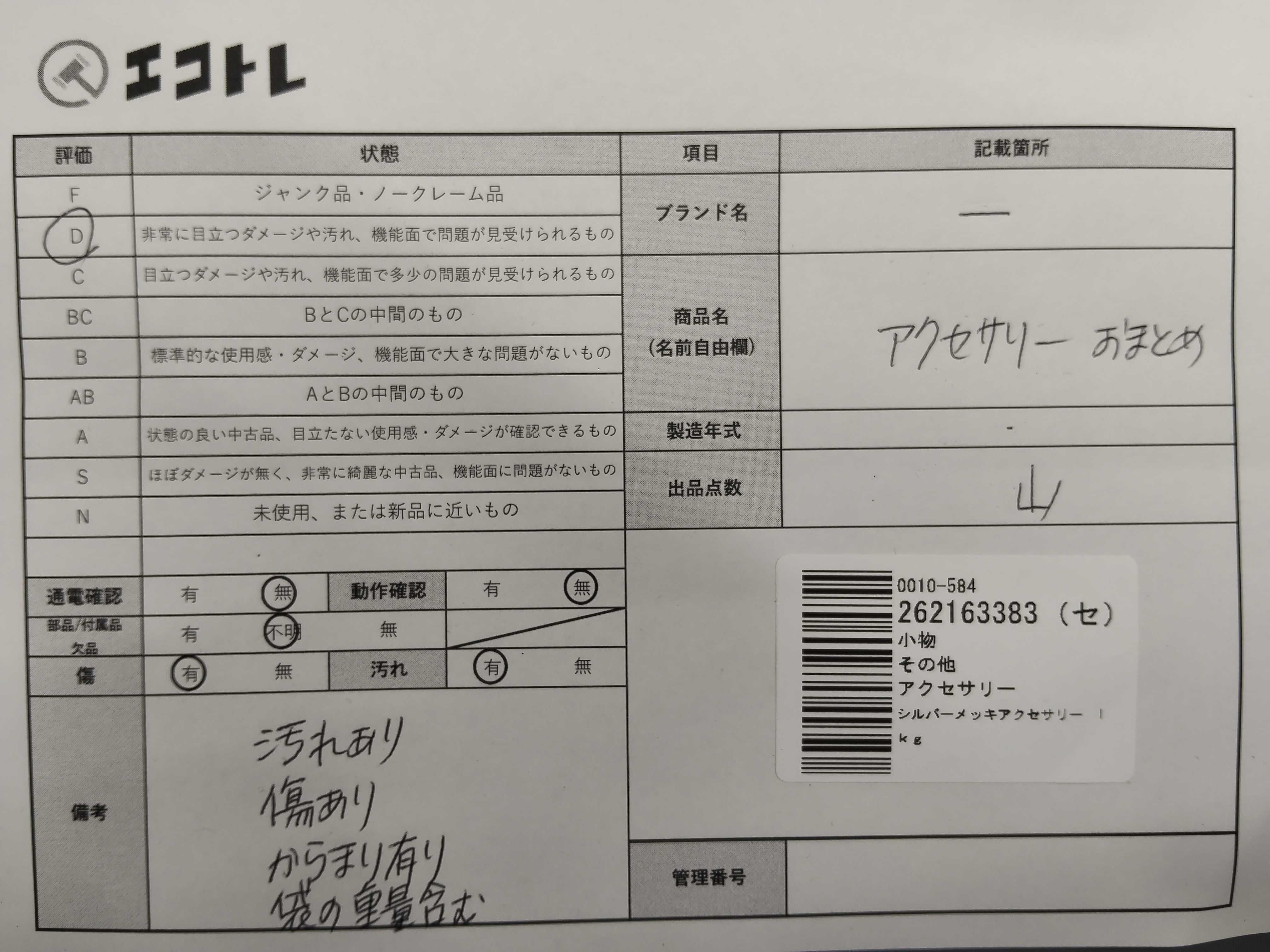 商品内容によって、JITBOXなどでの発送となる可能性がございます事ご理解下さい。年式などの商品情報詳細は写真にてご確認願います。※ご入札の際はご利用規約をよくお読みになってからのご参加お願いします。","タイプライン": "", "カテゴリ": "小物", "形状コード": "その他小物", "付属品コード": "", "シリアル・シール・型番": ""