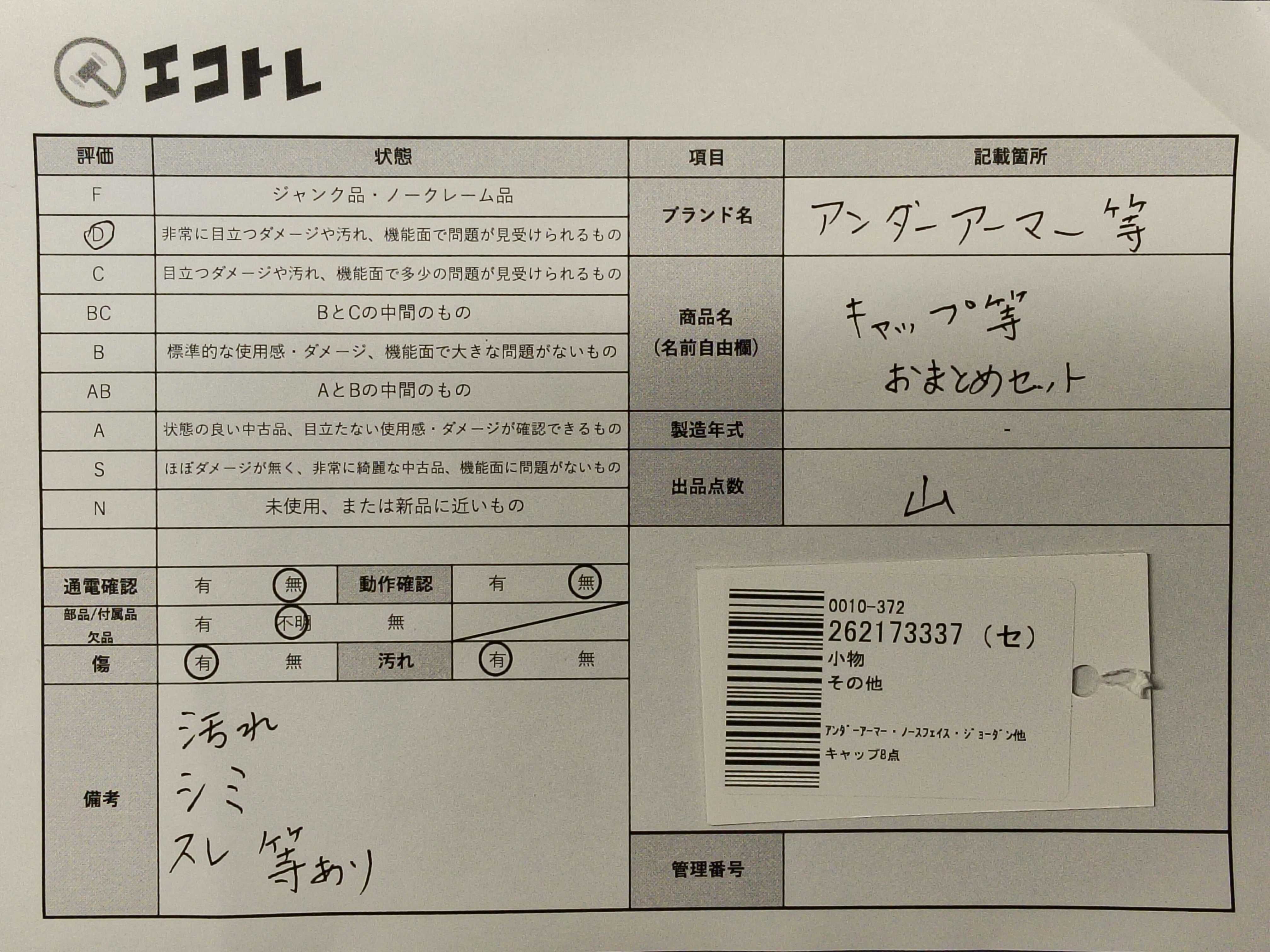 商品内容によって、JITBOXなどでの発送となる可能性がございます事ご理解下さい。年式などの商品情報詳細は写真にてご確認願います。※ご入札の際はご利用規約をよくお読みになってからのご参加お願いします。","タイプライン": "", "カテゴリ": "小物", "形状コード": "その他小物", "付属品コード": "", "シリアル・シール・型番": ""