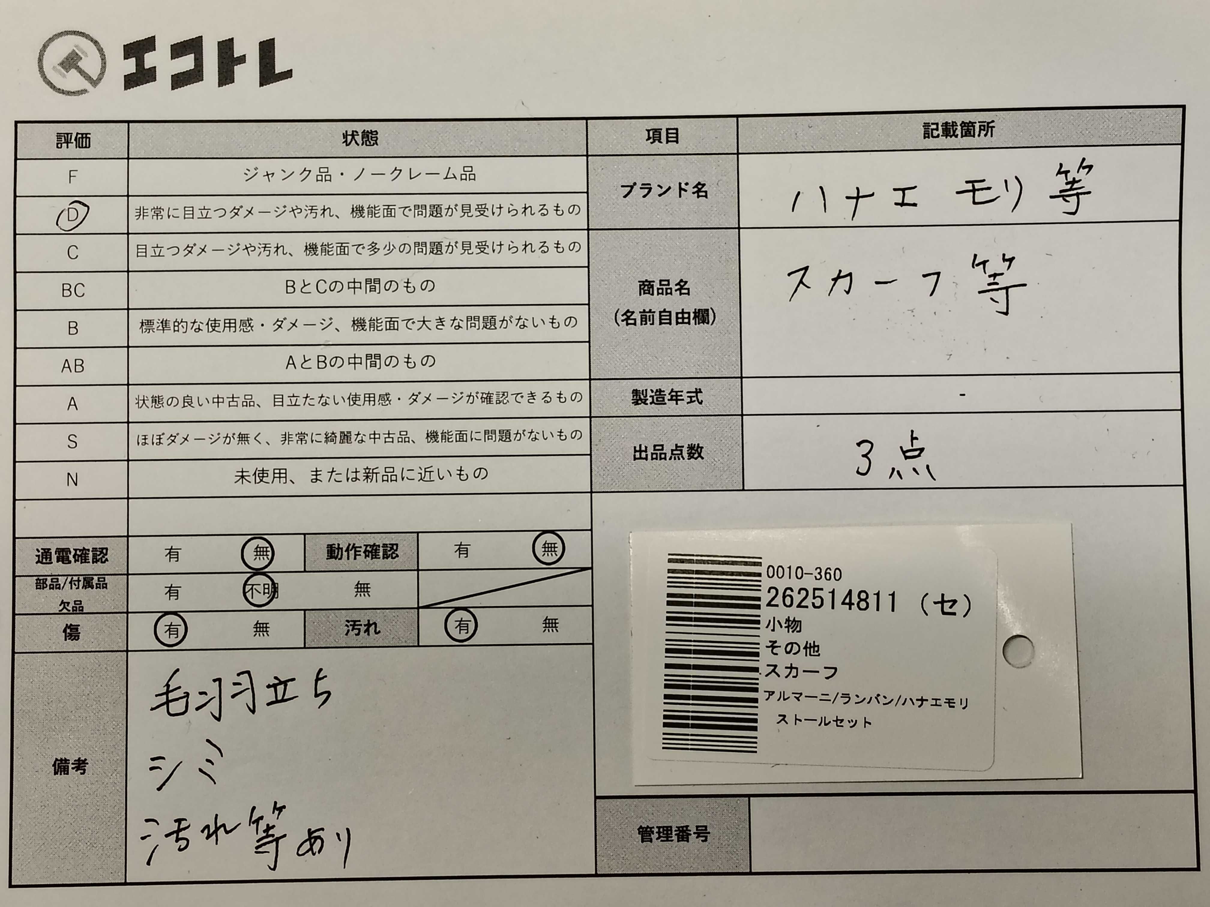商品内容によって、JITBOXなどでの発送となる可能性がございます事ご理解下さい。年式などの商品情報詳細は写真にてご確認願います。※ご入札の際はご利用規約をよくお読みになってからのご参加お願いします。","タイプライン": "", "カテゴリ": "小物", "形状コード": "その他小物", "付属品コード": "", "シリアル・シール・型番": ""