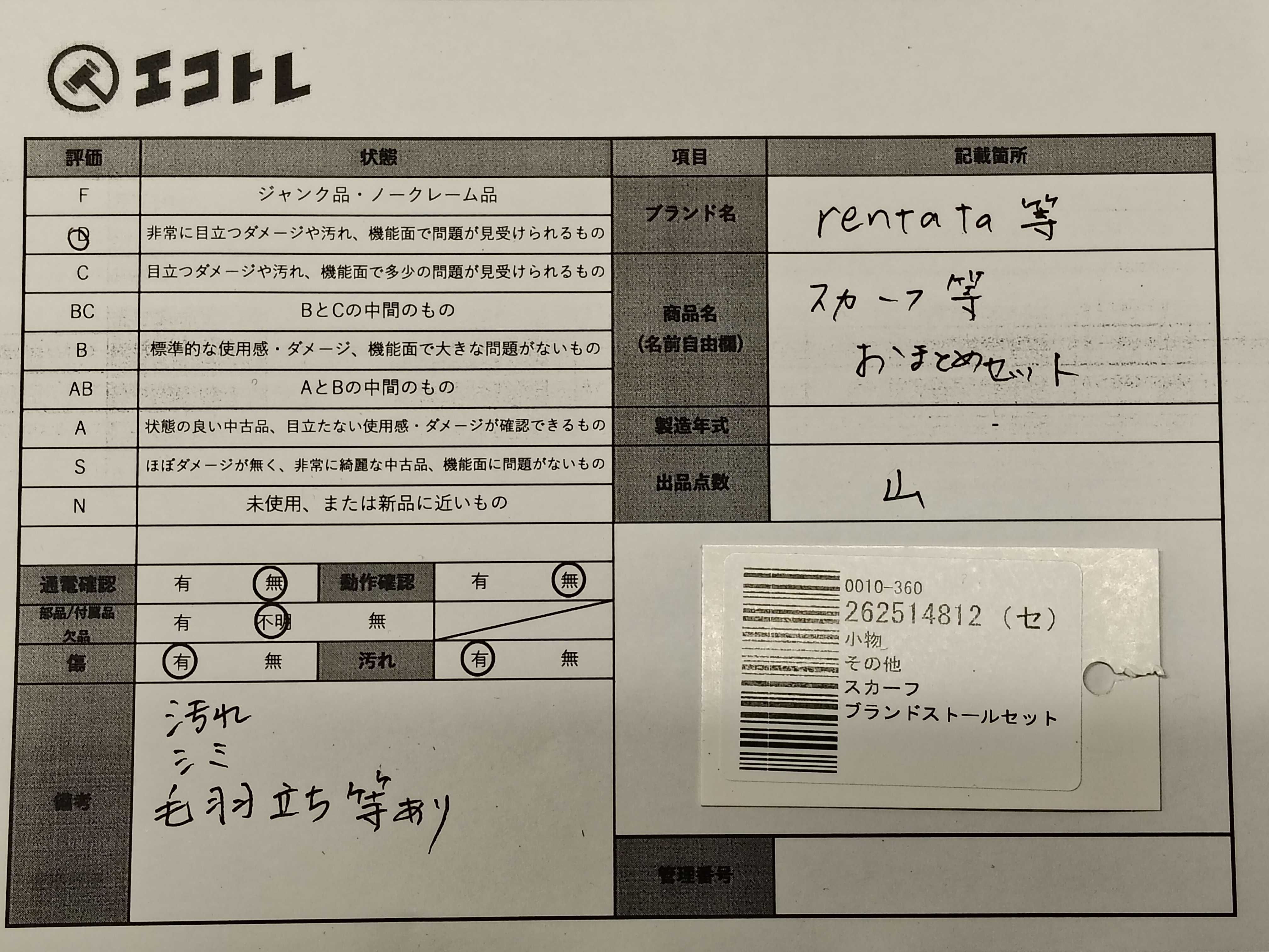 商品内容によって、JITBOXなどでの発送となる可能性がございます事ご理解下さい。年式などの商品情報詳細は写真にてご確認願います。※ご入札の際はご利用規約をよくお読みになってからのご参加お願いします。","タイプライン": "", "カテゴリ": "小物", "形状コード": "その他小物", "付属品コード": "", "シリアル・シール・型番": ""