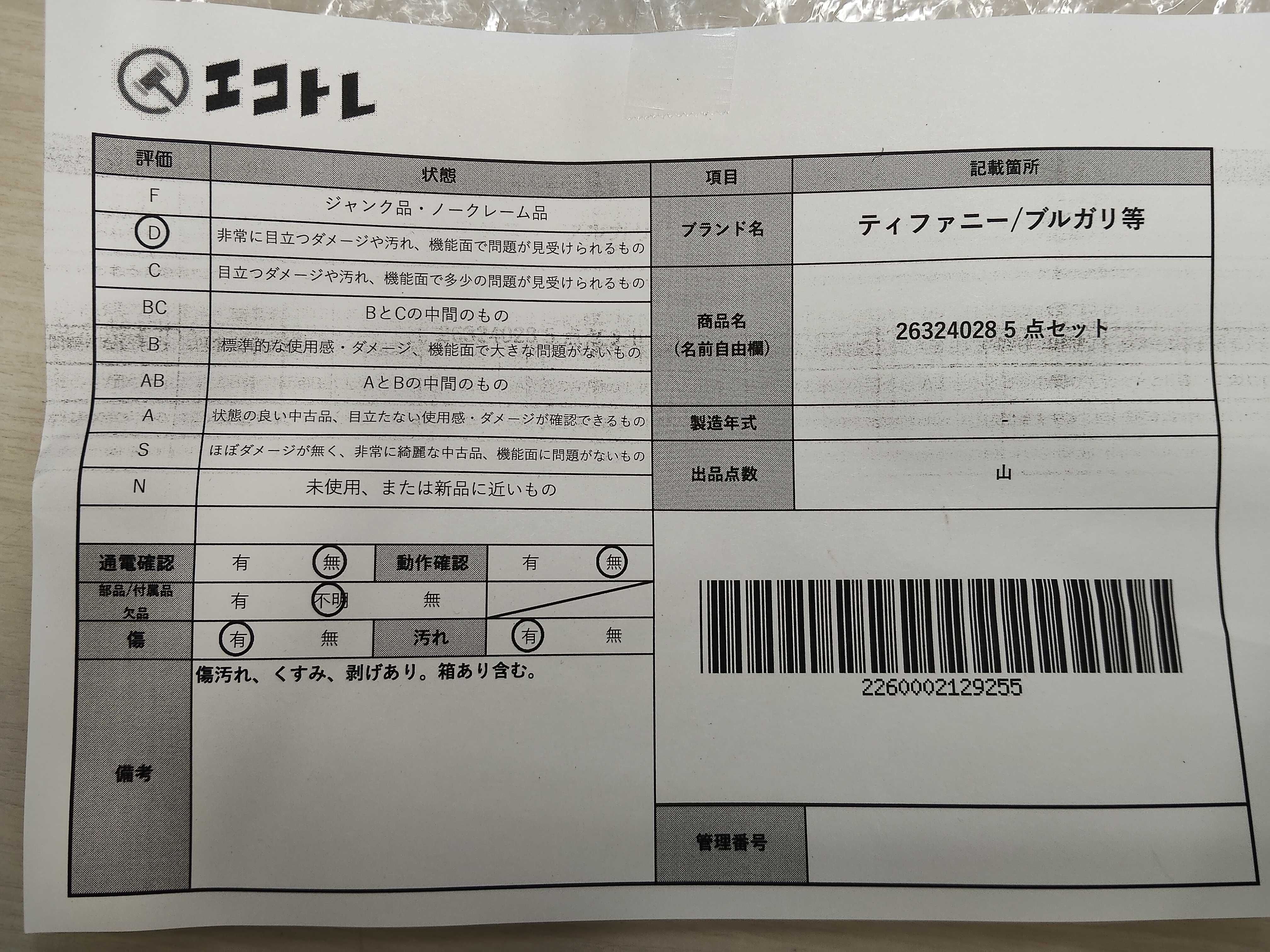 商品内容によって、JITBOXなどでの発送となる可能性がございます事ご理解下さい。年式などの商品情報詳細は写真にてご確認願います。※ご入札の際はご利用規約をよくお読みになってからのご参加お願いします。","タイプライン": "", "カテゴリ": "小物", "形状コード": "その他小物", "付属品コード": "", "シリアル・シール・型番": ""