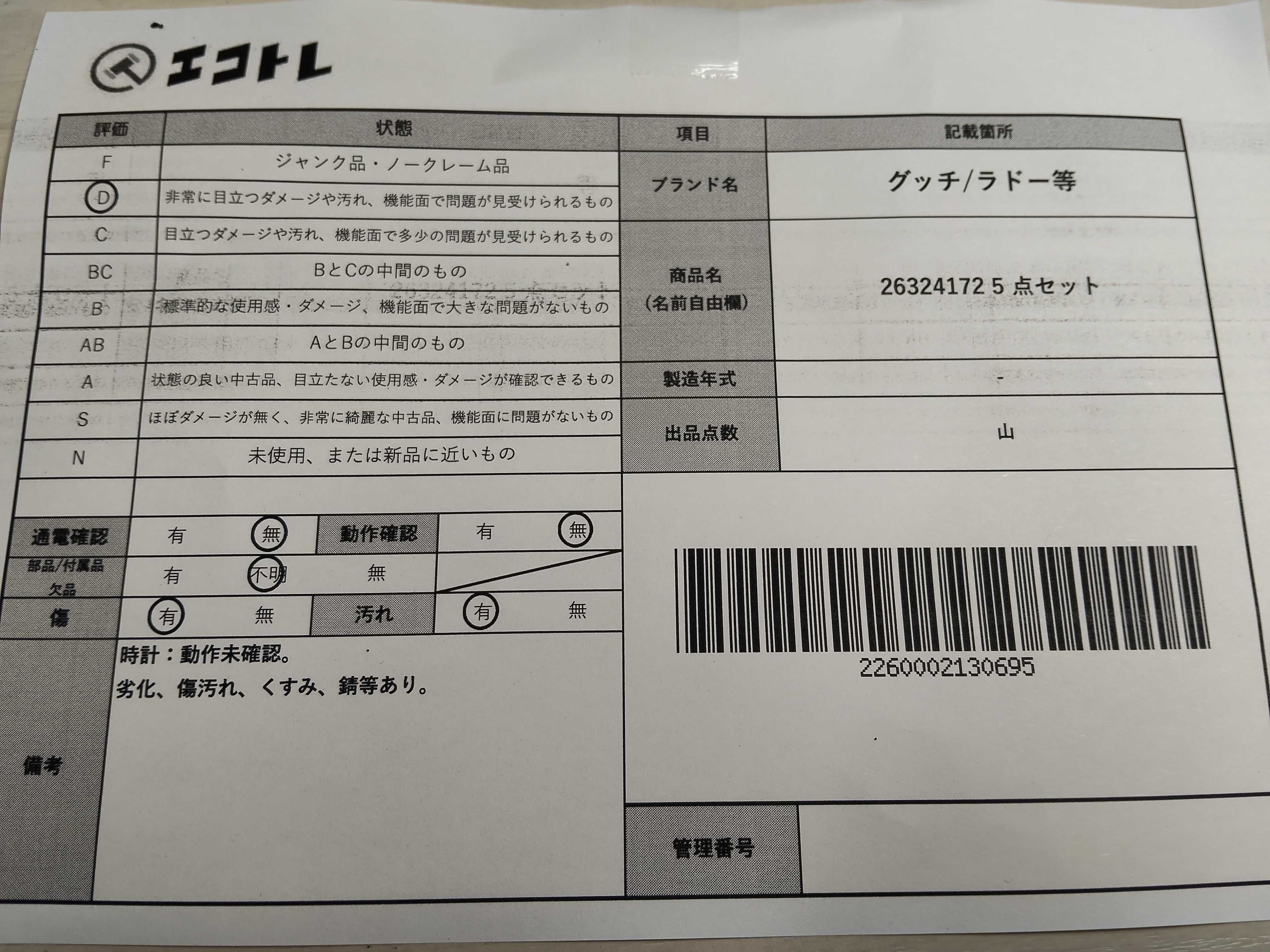 商品内容によって、JITBOXなどでの発送となる可能性がございます事ご理解下さい。年式などの商品情報詳細は写真にてご確認願います。※ご入札の際はご利用規約をよくお読みになってからのご参加お願いします。","タイプライン": "", "カテゴリ": "小物", "形状コード": "その他小物", "付属品コード": "", "シリアル・シール・型番": ""