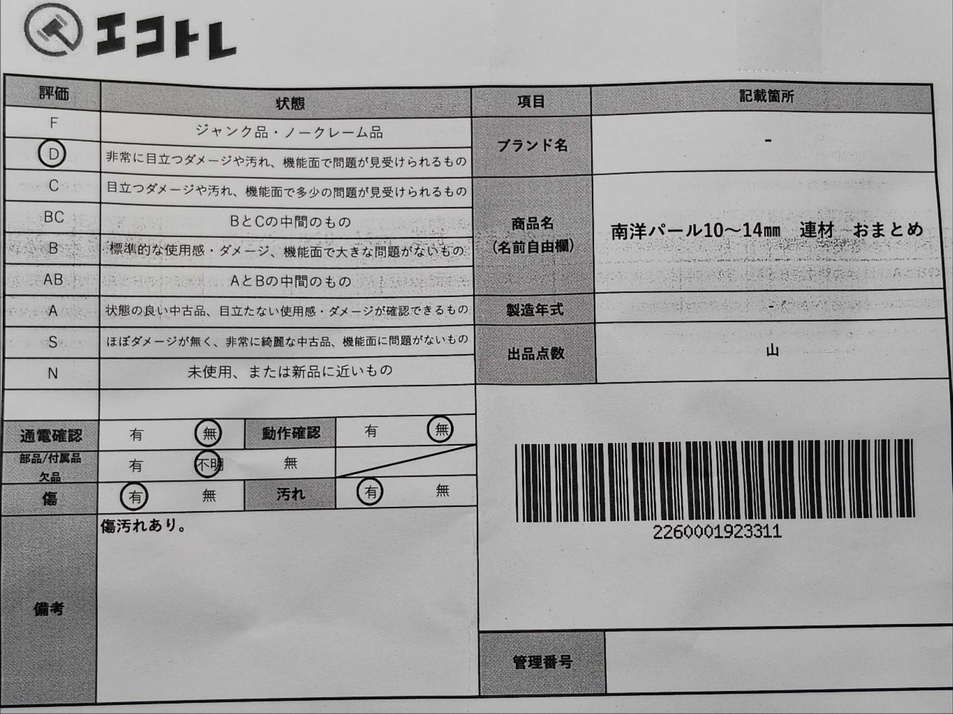 商品内容によって、JITBOXなどでの発送となる可能性がございます事ご理解下さい。年式などの商品情報詳細は写真にてご確認願います。※ご入札の際はご利用規約をよくお読みになってからのご参加お願いします。","タイプライン": "", "カテゴリ": "小物", "形状コード": "その他小物", "付属品コード": "", "シリアル・シール・型番": ""