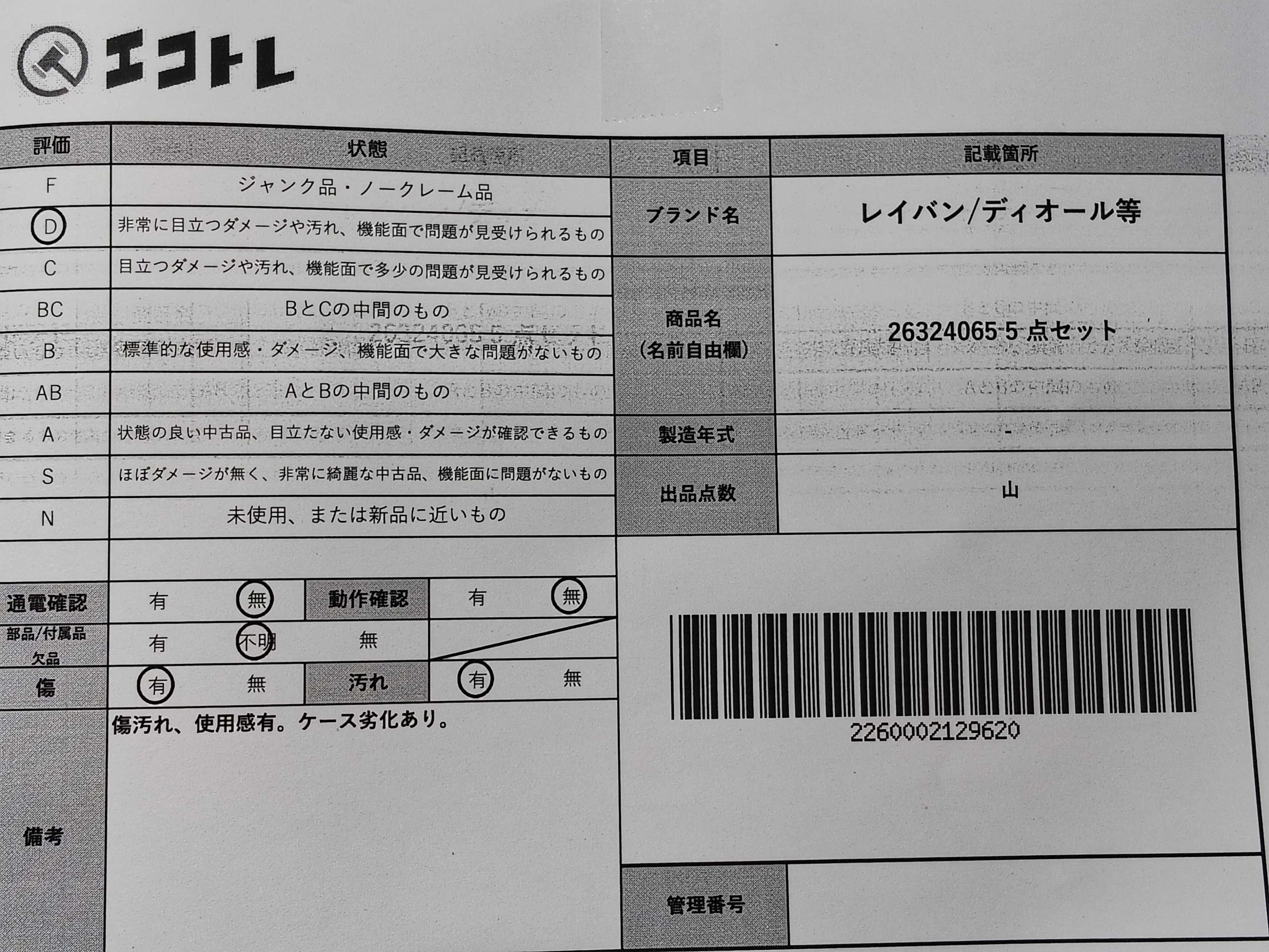 ◆CAN’T SHIPPING TO USA◆商品内容によって、JITBOXなどでの発送となる可能性がございます事ご理解下さい。年式などの商品情報詳細は写真にてご確認願います。※ご入札の際はご利用規約をよくお読みになってからのご参加お願いします。","タイプライン": "", "カテゴリ": "小物", "形状コード": "サングラス・メガネ", "付属品コード": "", "シリアル・シール・型番": ""