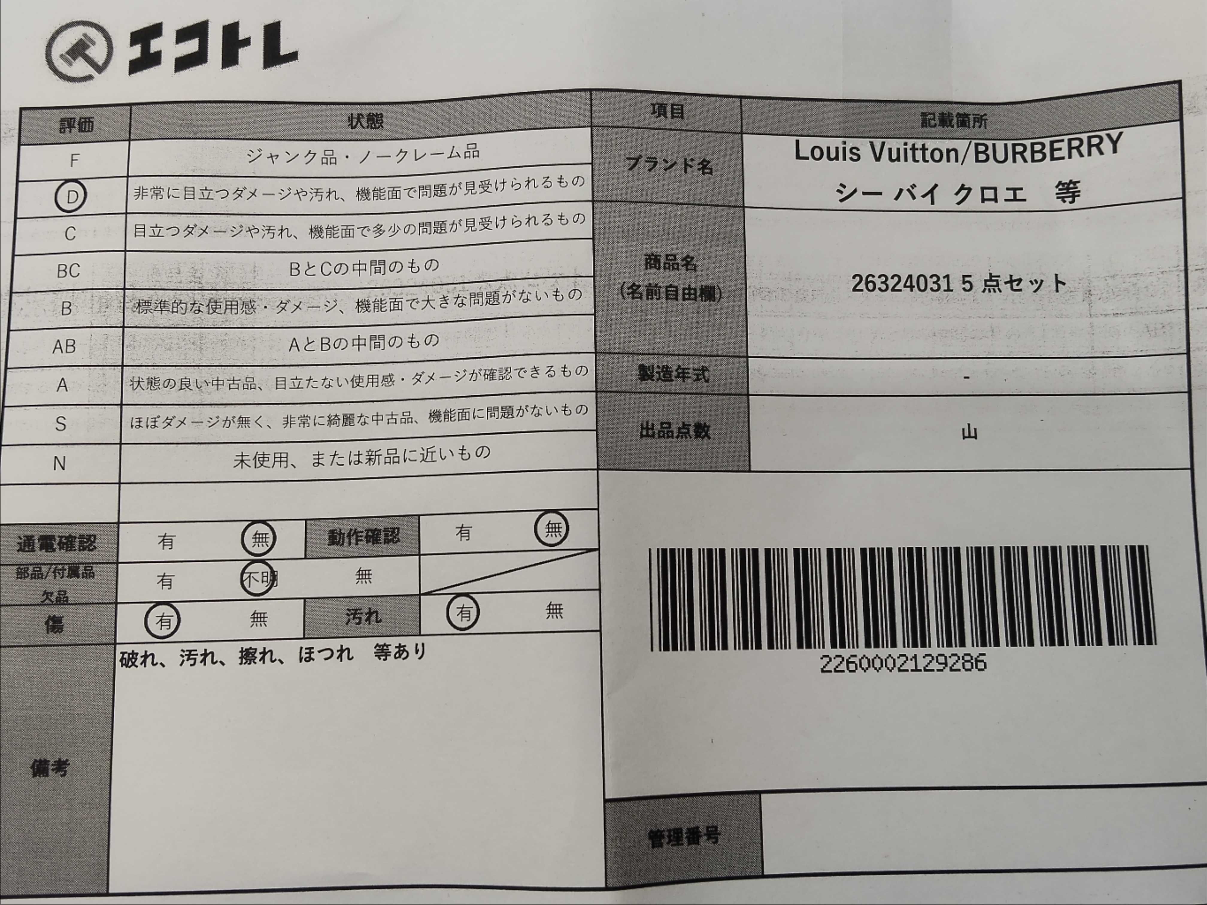 商品内容によって、JITBOXなどでの発送となる可能性がございます事ご理解下さい。年式などの商品情報詳細は写真にてご確認願います。※ご入札の際はご利用規約をよくお読みになってからのご参加お願いします。","タイプライン": "", "カテゴリ": "小物", "形状コード": "財布", "付属品コード": "", "シリアル・シール・型番": ""
