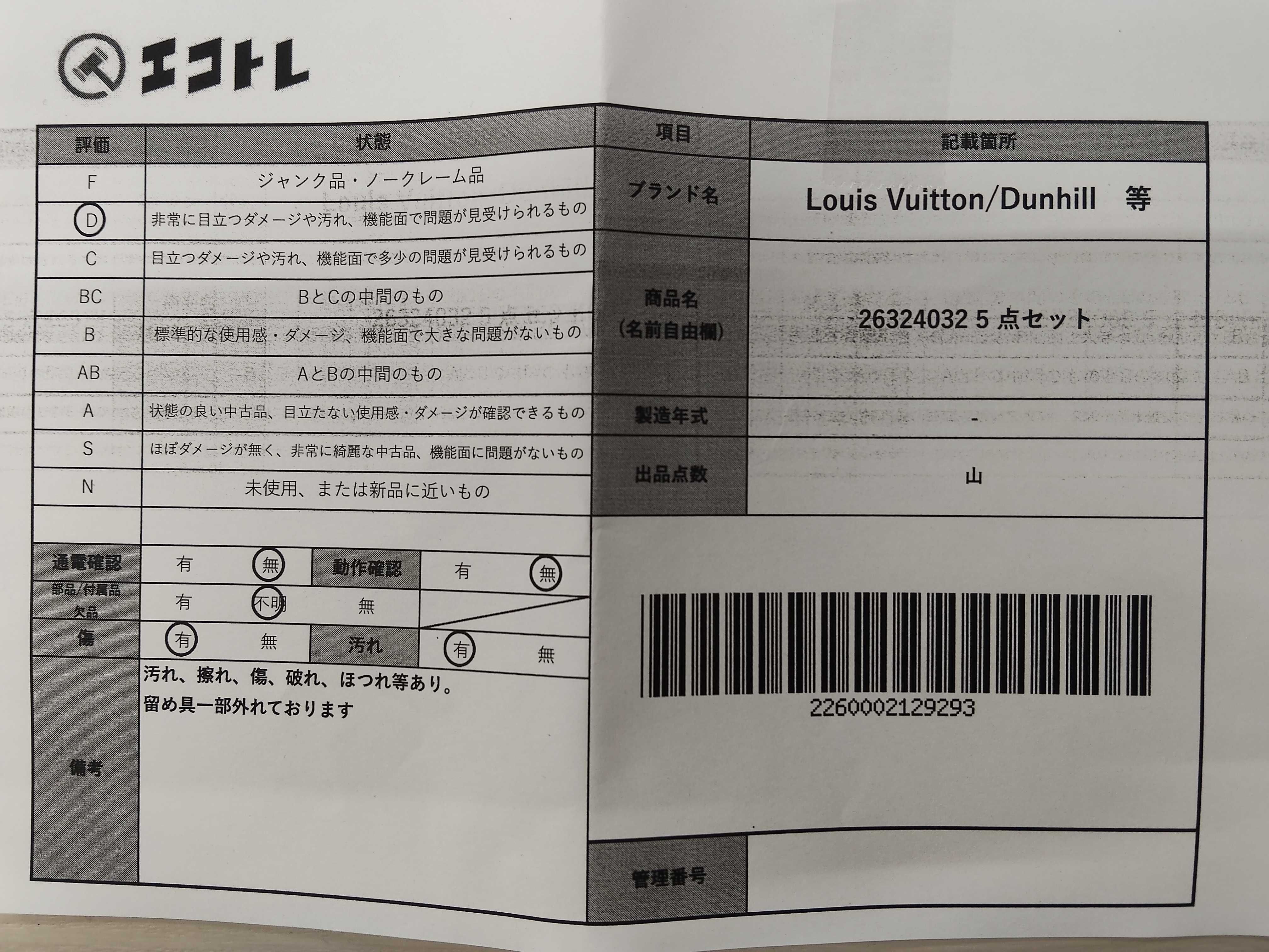 商品内容によって、JITBOXなどでの発送となる可能性がございます事ご理解下さい。年式などの商品情報詳細は写真にてご確認願います。※ご入札の際はご利用規約をよくお読みになってからのご参加お願いします。","タイプライン": "", "カテゴリ": "小物", "形状コード": "財布", "付属品コード": "", "シリアル・シール・型番": ""
