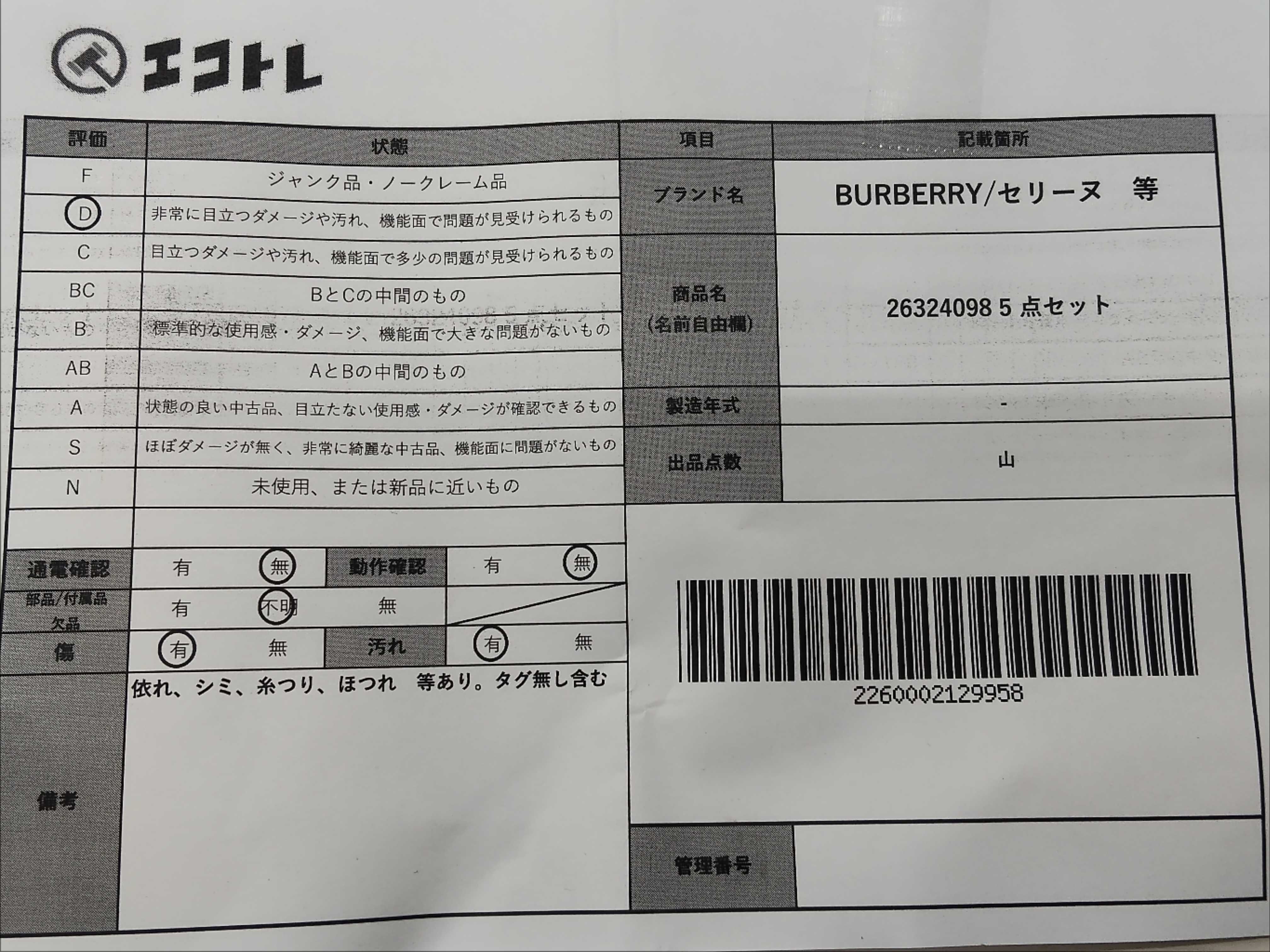商品内容によって、JITBOXなどでの発送となる可能性がございます事ご理解下さい。年式などの商品情報詳細は写真にてご確認願います。※ご入札の際はご利用規約をよくお読みになってからのご参加お願いします。","タイプライン": "", "カテゴリ": "小物", "形状コード": "ギフト", "付属品コード": "", "シリアル・シール・型番": ""