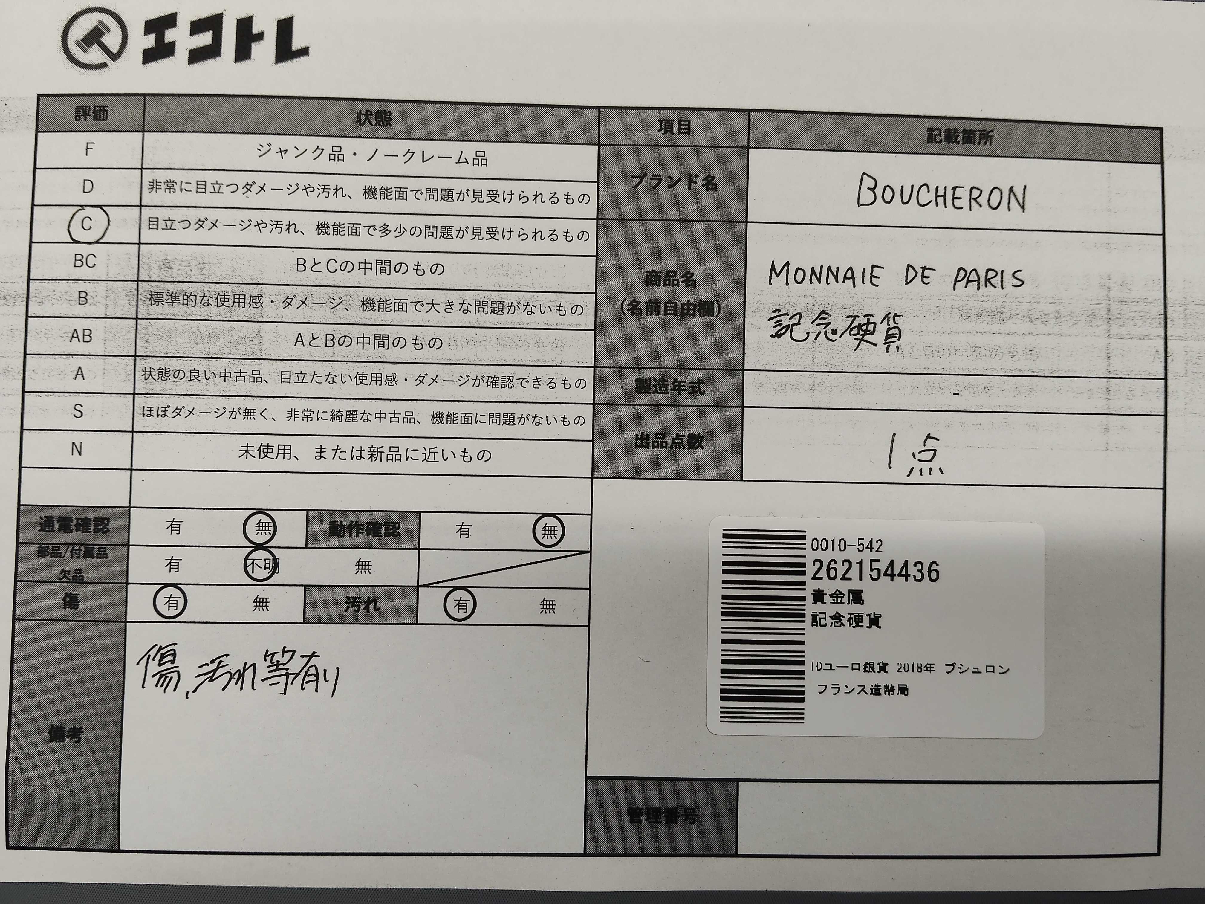 (11948_0454)▼10ユーロ銀貨 2018年 ブシュロン フランス造幣局 その他小物