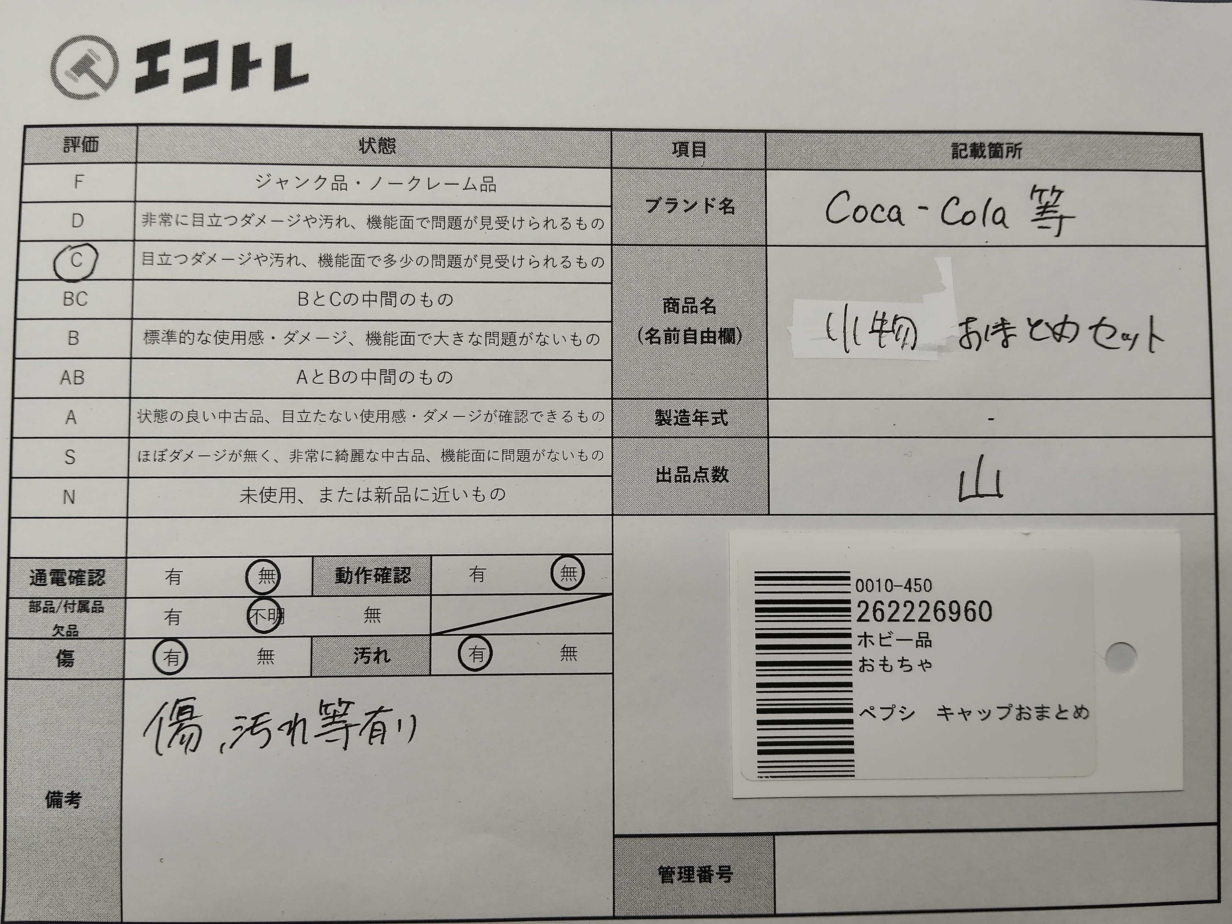商品内容によって、JITBOXなどでの発送となる可能性がございます事ご理解下さい。年式などの商品情報詳細は写真にてご確認願います。※ご入札の際はご利用規約をよくお読みになってからのご参加お願いします。","タイプライン": "", "カテゴリ": "小物", "形状コード": "その他小物", "付属品コード": "", "シリアル・シール・型番": ""