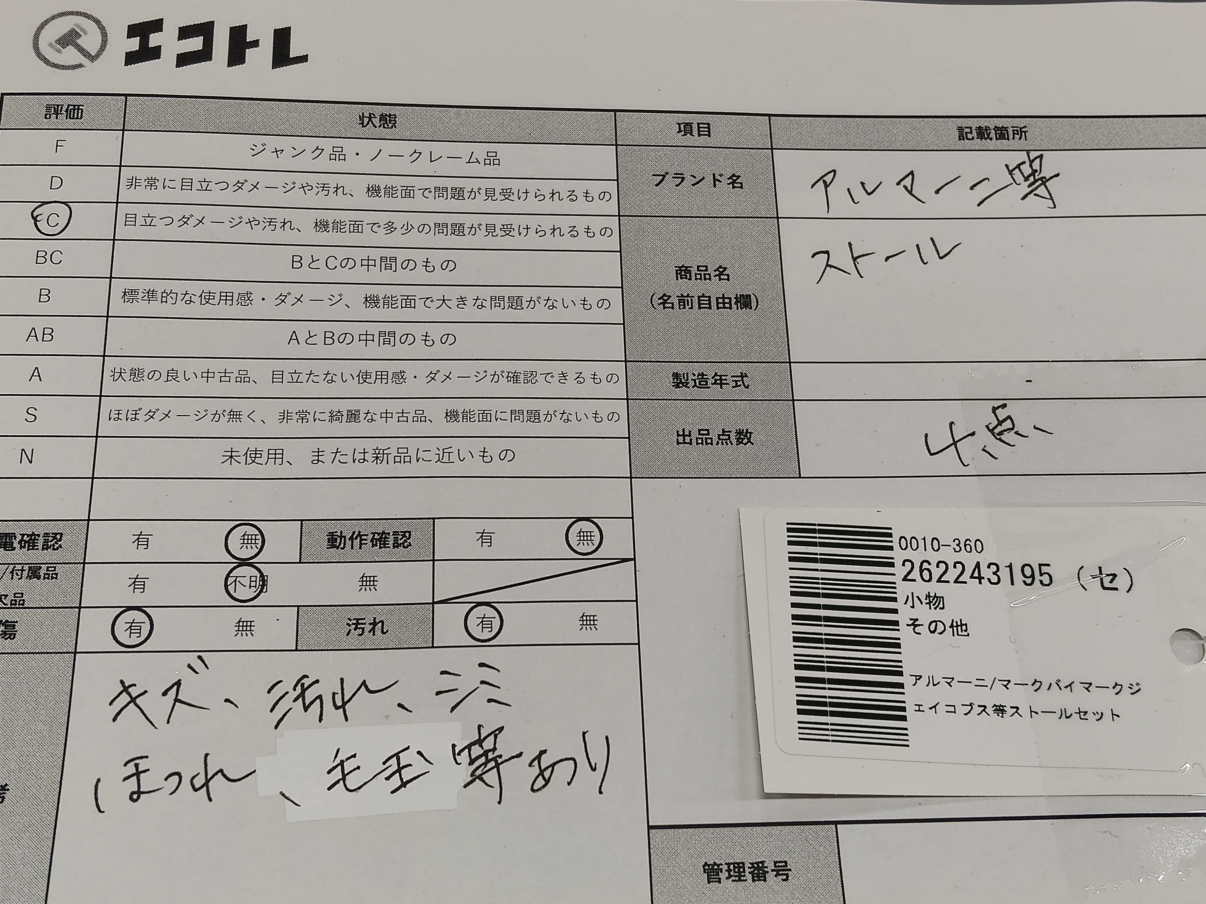 商品内容によって、JITBOXなどでの発送となる可能性がございます事ご理解下さい。年式などの商品情報詳細は写真にてご確認願います。※ご入札の際はご利用規約をよくお読みになってからのご参加お願いします。","タイプライン": "", "カテゴリ": "小物", "形状コード": "その他小物", "付属品コード": "", "シリアル・シール・型番": ""