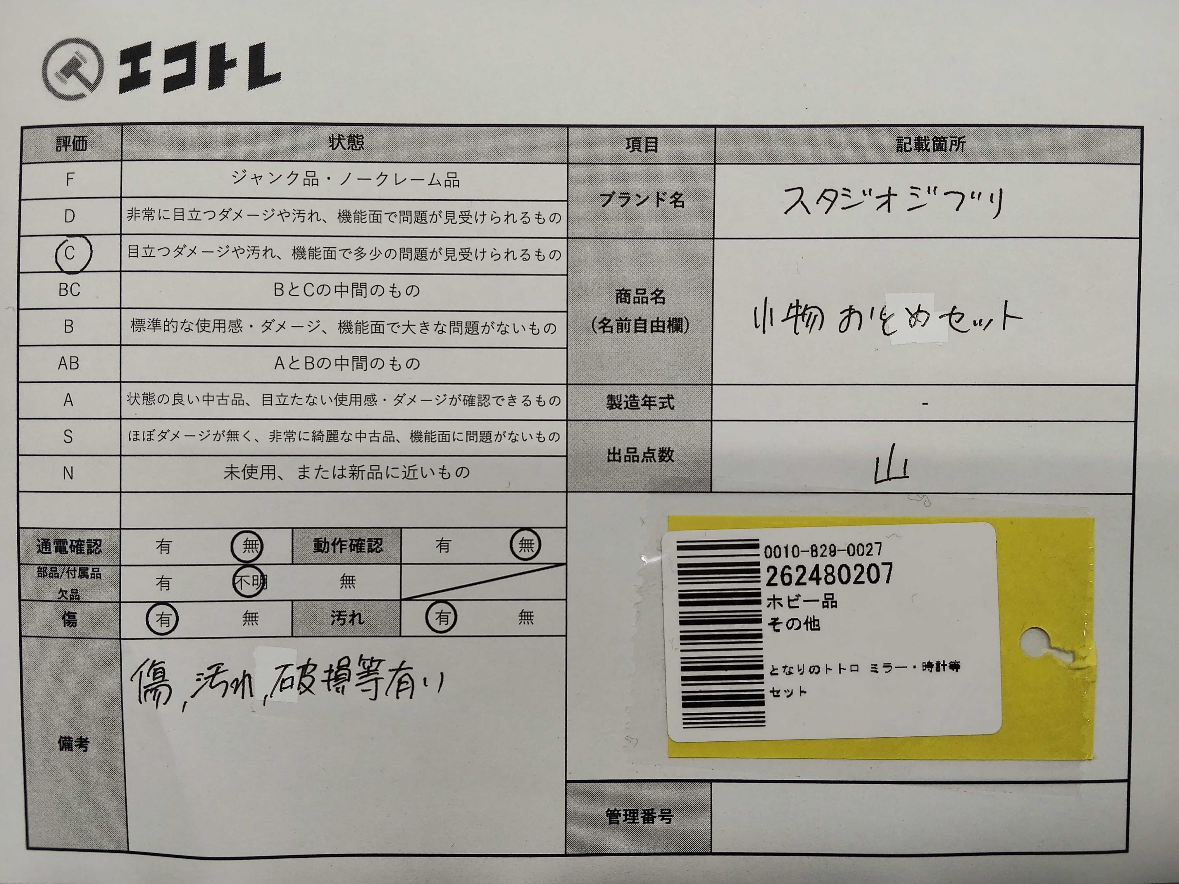 商品内容によって、JITBOXなどでの発送となる可能性がございます事ご理解下さい。年式などの商品情報詳細は写真にてご確認願います。※ご入札の際はご利用規約をよくお読みになってからのご参加お願いします。","タイプライン": "", "カテゴリ": "小物", "形状コード": "その他小物", "付属品コード": "", "シリアル・シール・型番": ""
