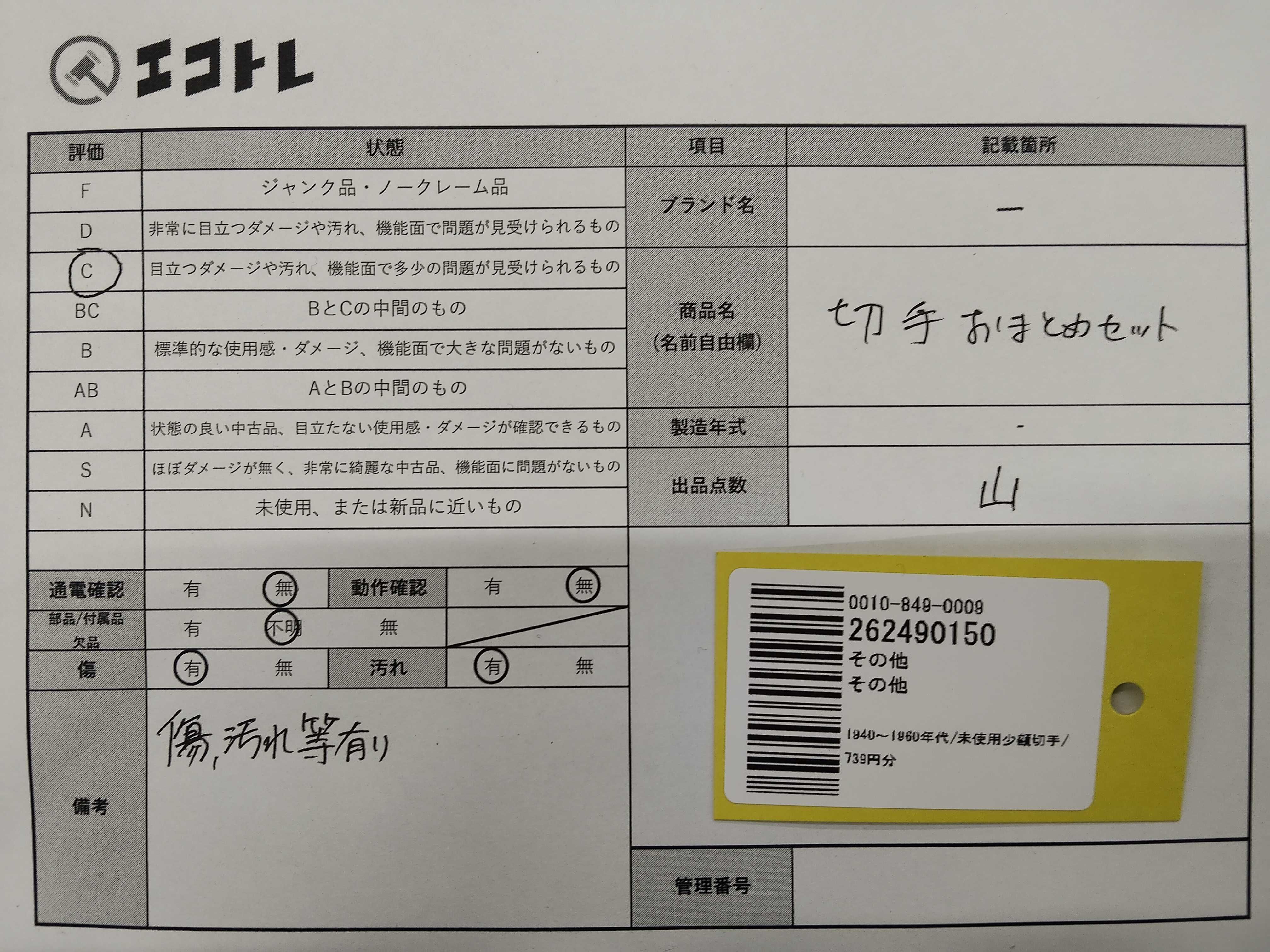 商品内容によって、JITBOXなどでの発送となる可能性がございます事ご理解下さい。年式などの商品情報詳細は写真にてご確認願います。※ご入札の際はご利用規約をよくお読みになってからのご参加お願いします。","タイプライン": "", "カテゴリ": "小物", "形状コード": "その他小物", "付属品コード": "", "シリアル・シール・型番": ""
