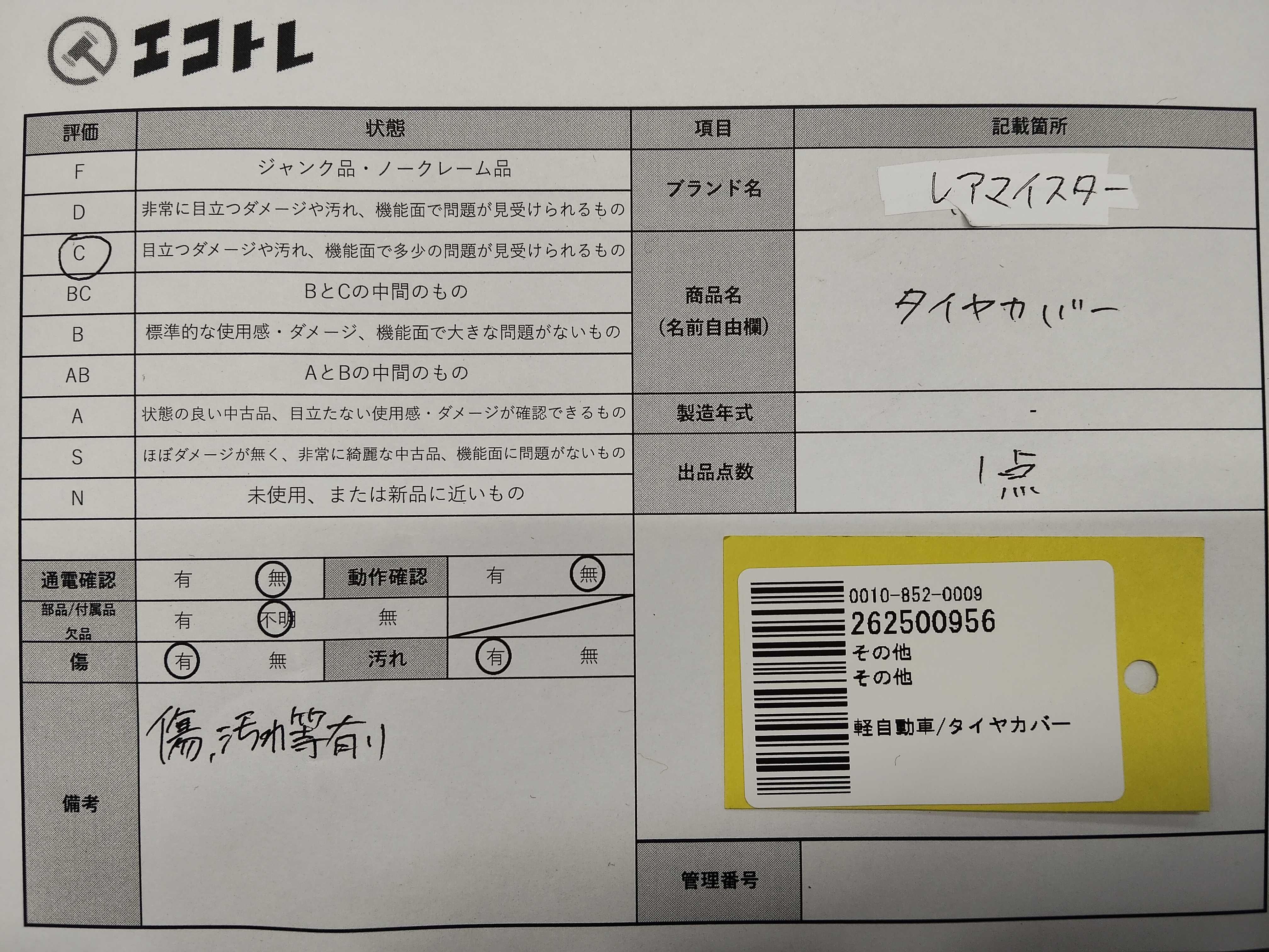 商品内容によって、JITBOXなどでの発送となる可能性がございます事ご理解下さい。年式などの商品情報詳細は写真にてご確認願います。※ご入札の際はご利用規約をよくお読みになってからのご参加お願いします。","タイプライン": "", "カテゴリ": "小物", "形状コード": "その他小物", "付属品コード": "", "シリアル・シール・型番": ""
