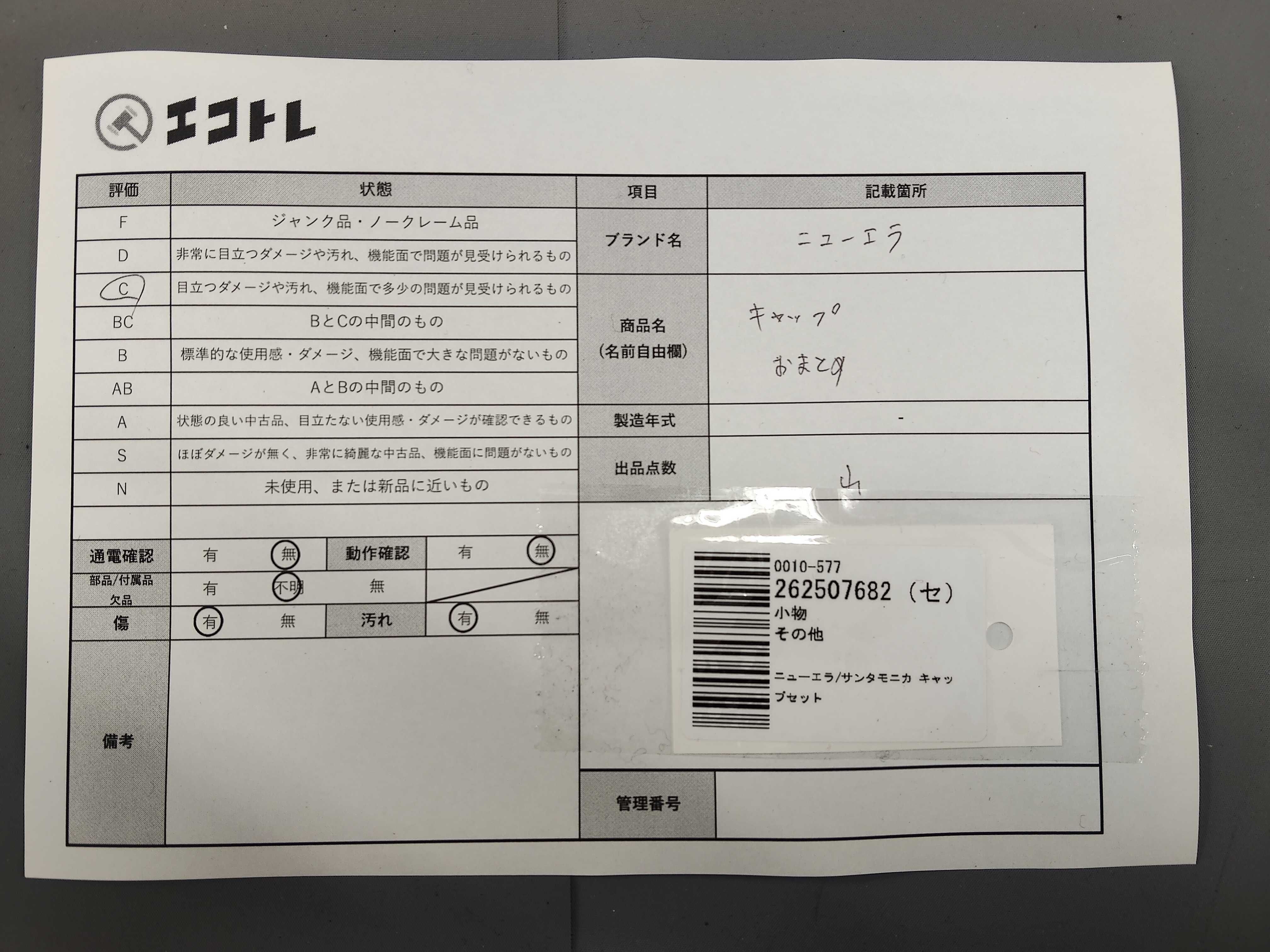 商品内容によって、JITBOXなどでの発送となる可能性がございます事ご理解下さい。年式などの商品情報詳細は写真にてご確認願います。※ご入札の際はご利用規約をよくお読みになってからのご参加お願いします。","タイプライン": "", "カテゴリ": "小物", "形状コード": "その他小物", "付属品コード": "", "シリアル・シール・型番": ""