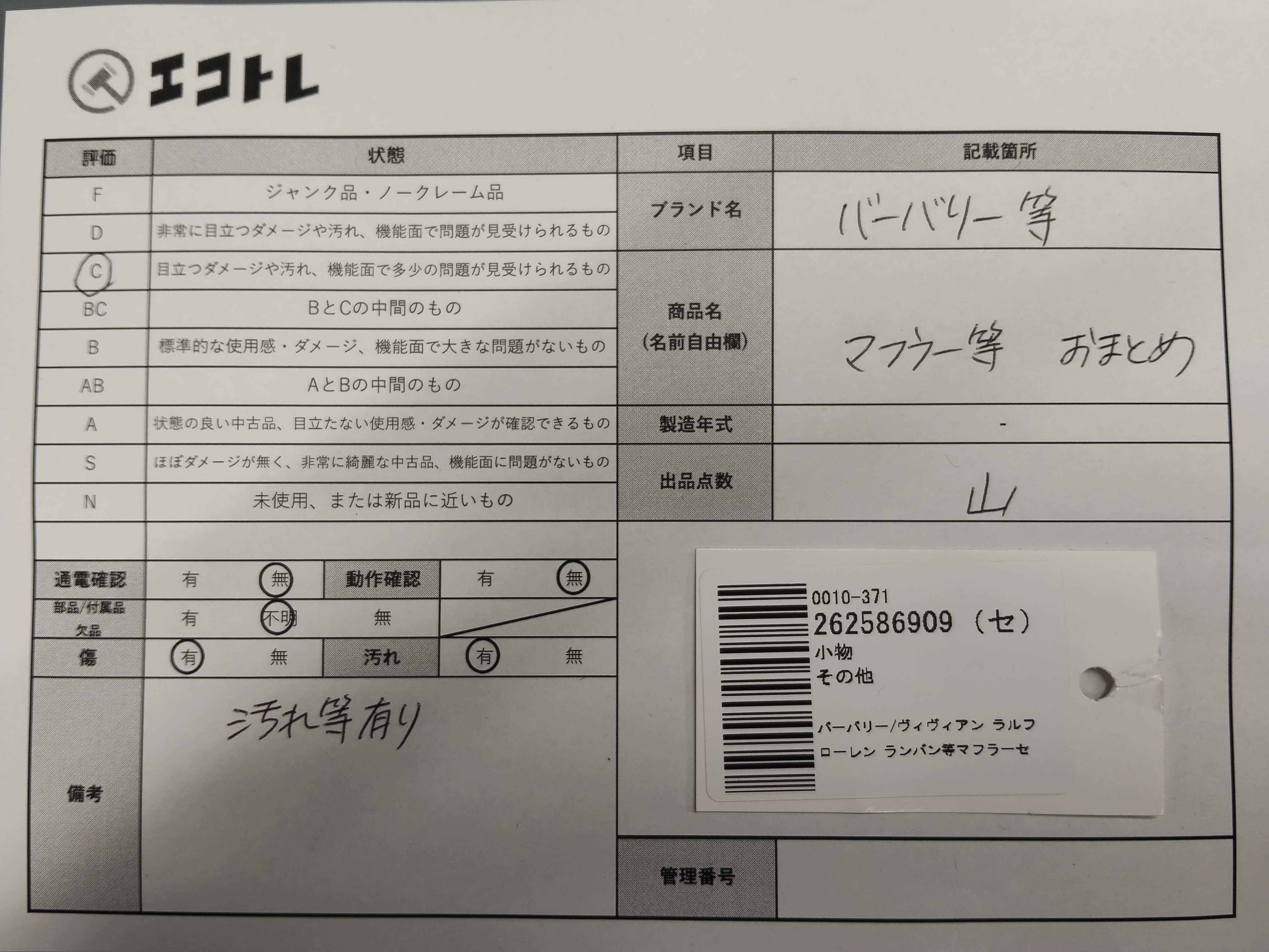 商品内容によって、JITBOXなどでの発送となる可能性がございます事ご理解下さい。年式などの商品情報詳細は写真にてご確認願います。※ご入札の際はご利用規約をよくお読みになってからのご参加お願いします。","タイプライン": "", "カテゴリ": "小物", "形状コード": "その他小物", "付属品コード": "", "シリアル・シール・型番": ""