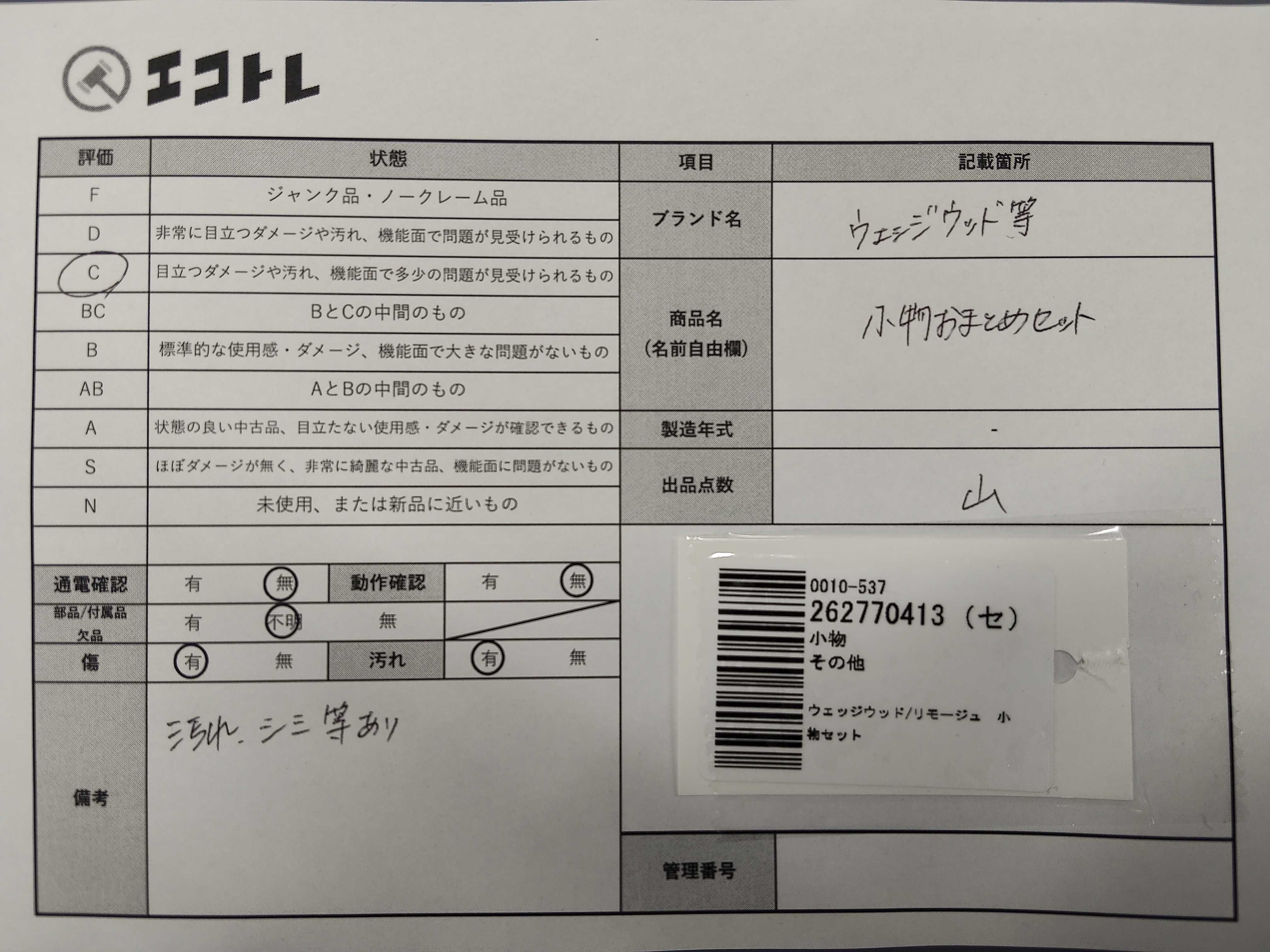 商品内容によって、JITBOXなどでの発送となる可能性がございます事ご理解下さい。年式などの商品情報詳細は写真にてご確認願います。※ご入札の際はご利用規約をよくお読みになってからのご参加お願いします。","タイプライン": "", "カテゴリ": "小物", "形状コード": "その他小物", "付属品コード": "", "シリアル・シール・型番": ""