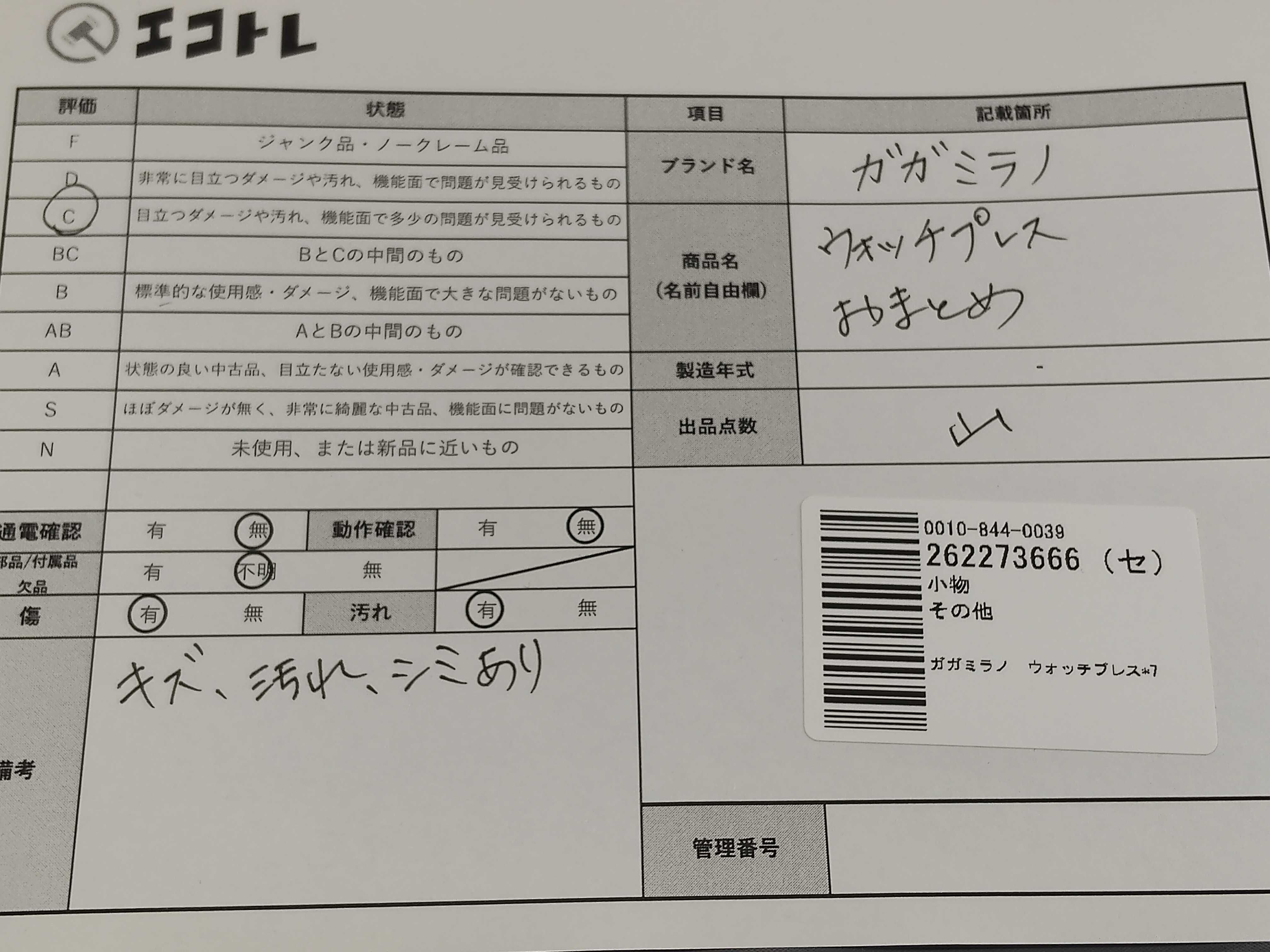 商品内容によって、JITBOXなどでの発送となる可能性がございます事ご理解下さい。年式などの商品情報詳細は写真にてご確認願います。※ご入札の際はご利用規約をよくお読みになってからのご参加お願いします。","タイプライン": "", "カテゴリ": "小物", "形状コード": "その他小物", "付属品コード": "", "シリアル・シール・型番": ""