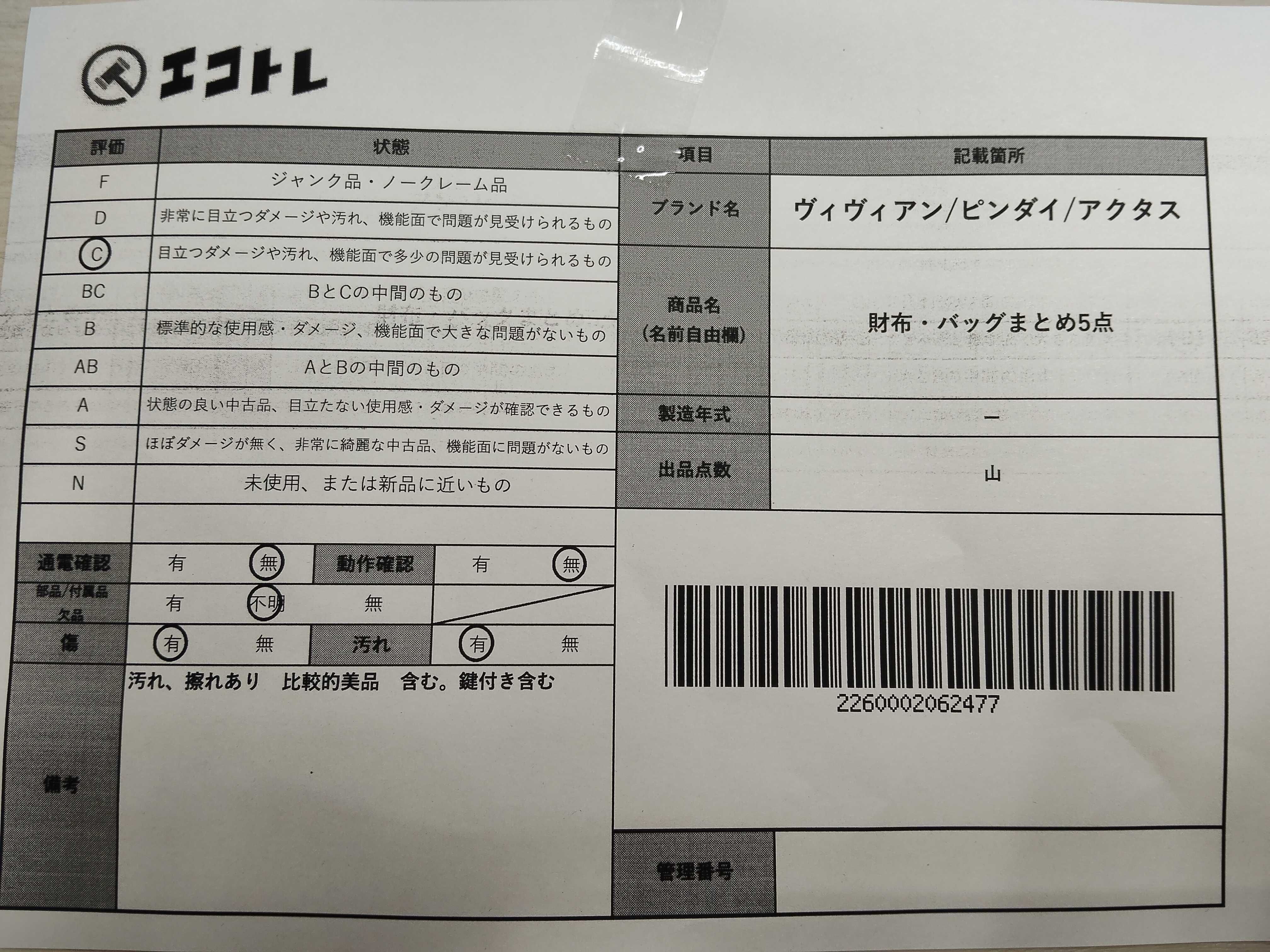 商品内容によって、JITBOXなどでの発送となる可能性がございます事ご理解下さい。年式などの商品情報詳細は写真にてご確認願います。※ご入札の際はご利用規約をよくお読みになってからのご参加お願いします。","タイプライン": "", "カテゴリ": "小物", "形状コード": "その他小物", "付属品コード": "", "シリアル・シール・型番": ""