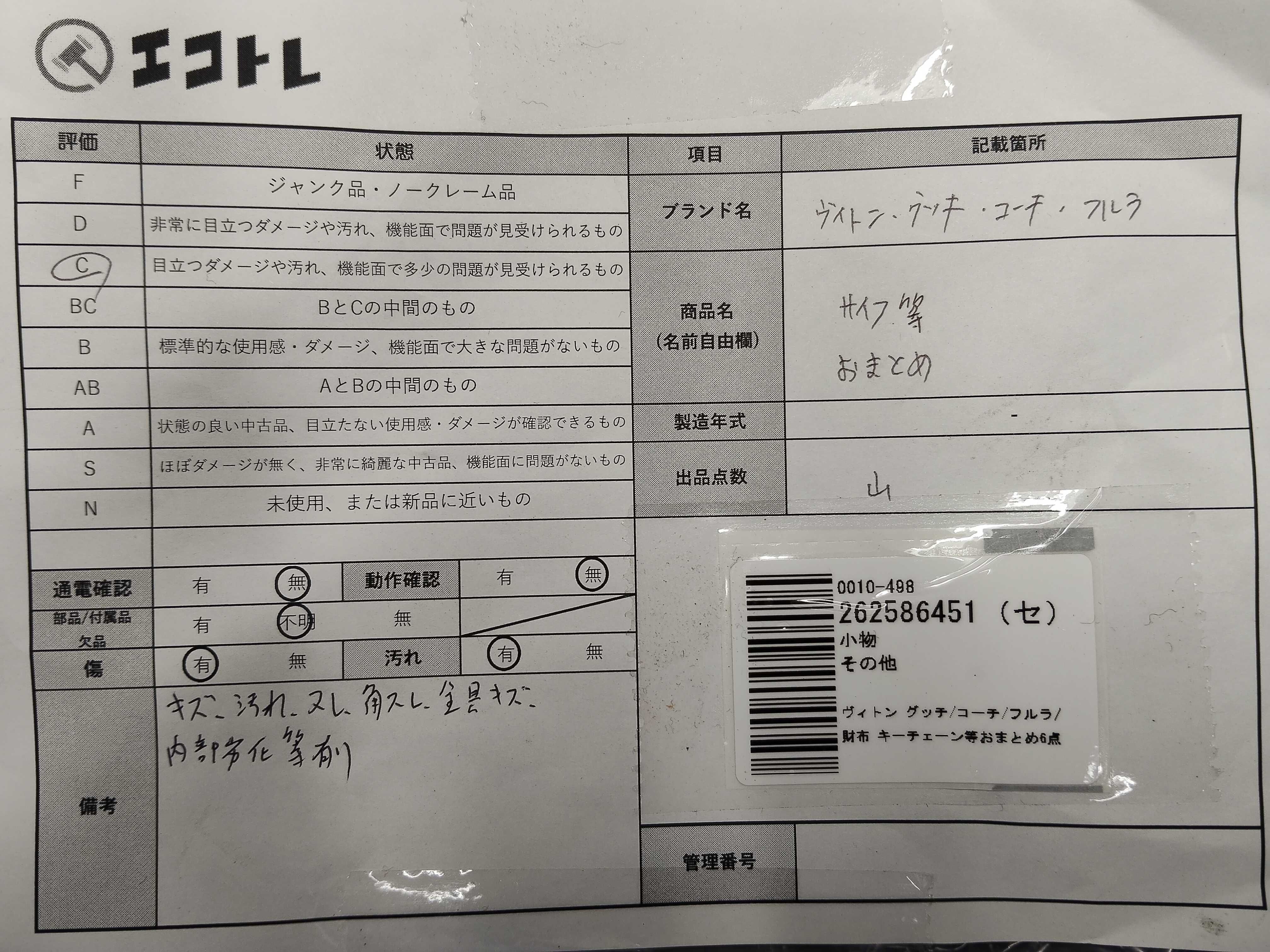 商品内容によって、JITBOXなどでの発送となる可能性がございます事ご理解下さい。年式などの商品情報詳細は写真にてご確認願います。※ご入札の際はご利用規約をよくお読みになってからのご参加お願いします。","タイプライン": "", "カテゴリ": "小物", "形状コード": "財布", "付属品コード": "", "シリアル・シール・型番": ""
