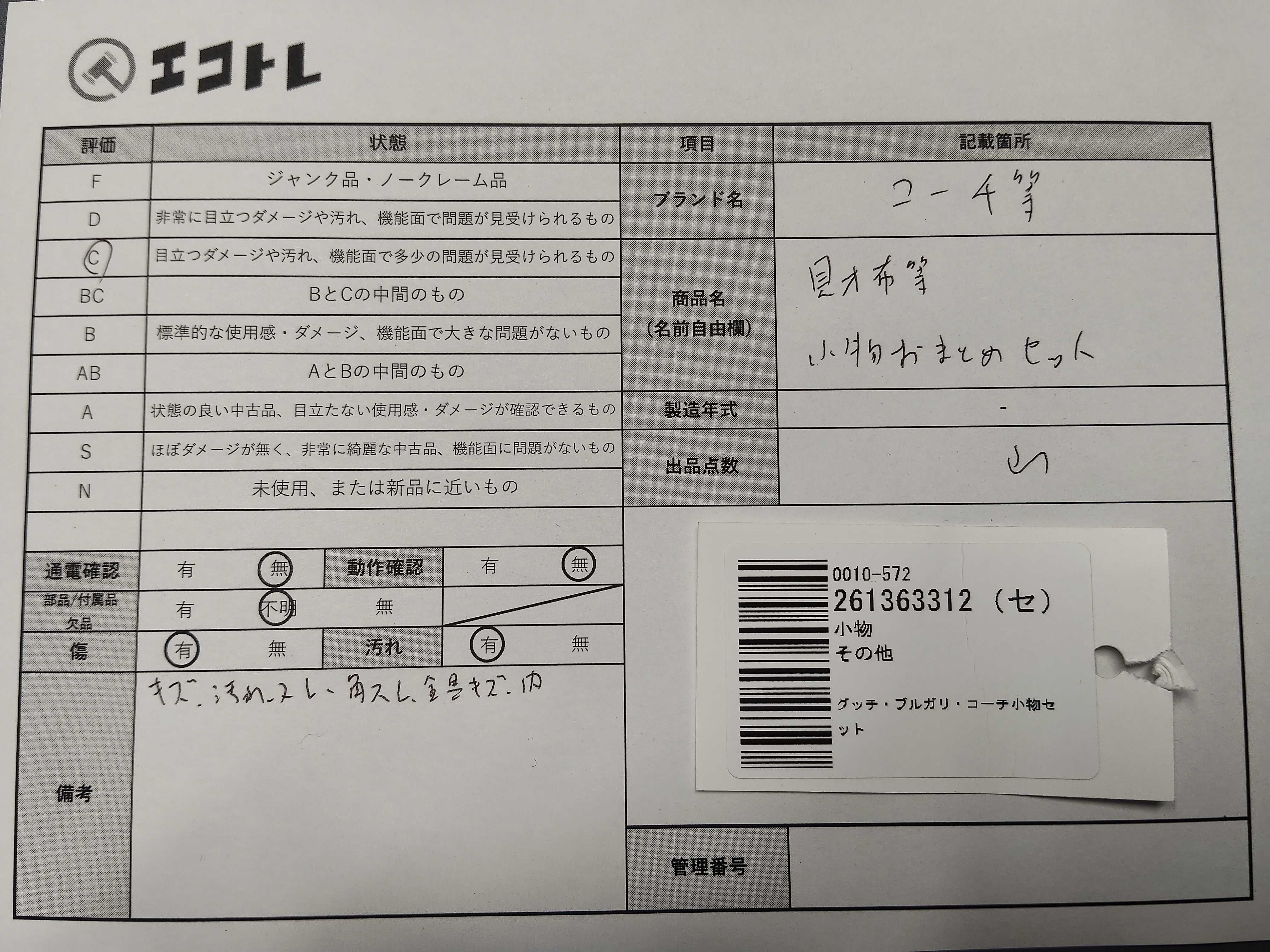 商品内容によって、JITBOXなどでの発送となる可能性がございます事ご理解下さい。年式などの商品情報詳細は写真にてご確認願います。※ご入札の際はご利用規約をよくお読みになってからのご参加お願いします。","タイプライン": "", "カテゴリ": "小物", "形状コード": "財布", "付属品コード": "", "シリアル・シール・型番": ""
