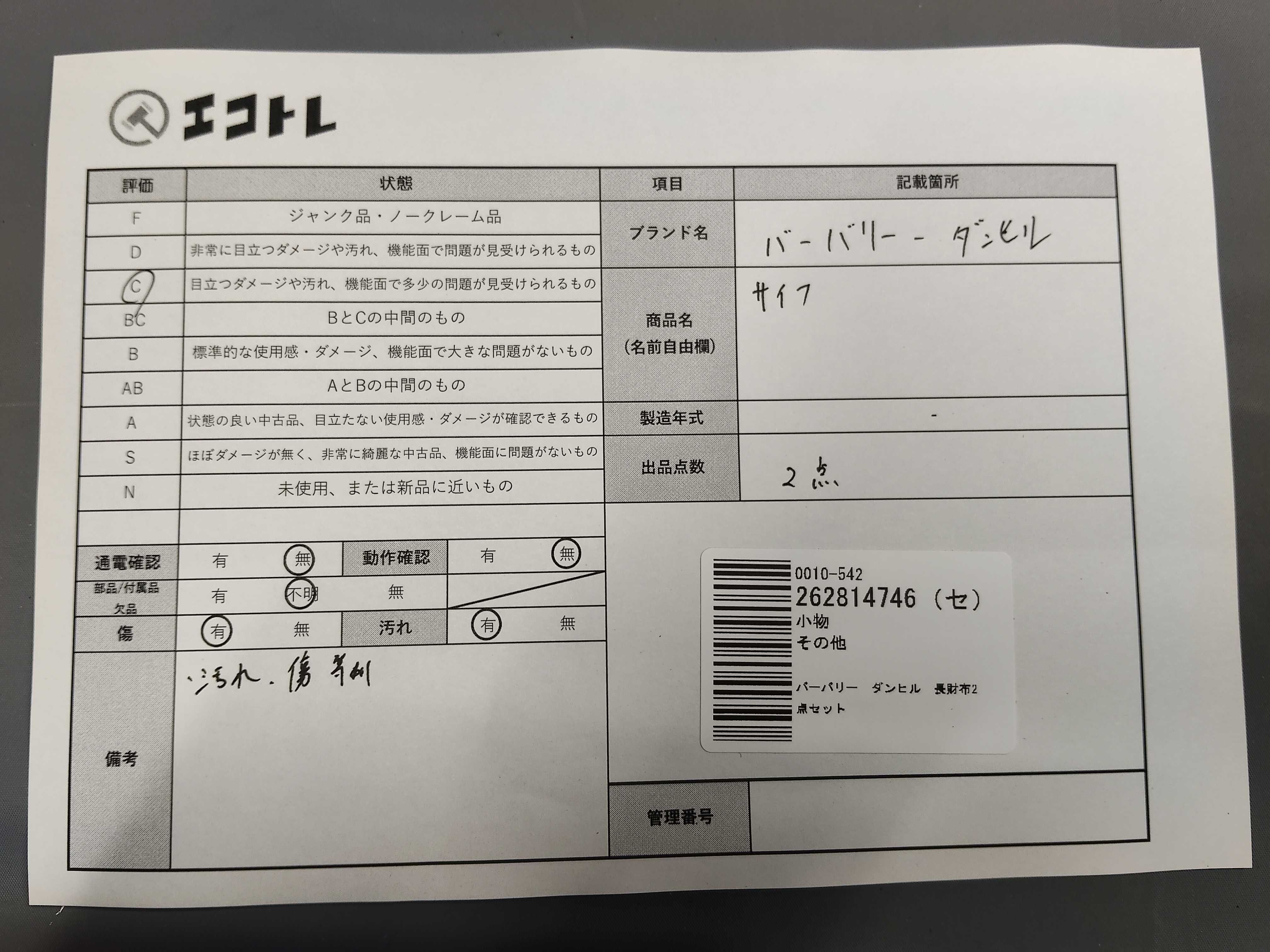商品内容によって、JITBOXなどでの発送となる可能性がございます事ご理解下さい。年式などの商品情報詳細は写真にてご確認願います。※ご入札の際はご利用規約をよくお読みになってからのご参加お願いします。","タイプライン": "", "カテゴリ": "小物", "形状コード": "財布", "付属品コード": "", "シリアル・シール・型番": ""