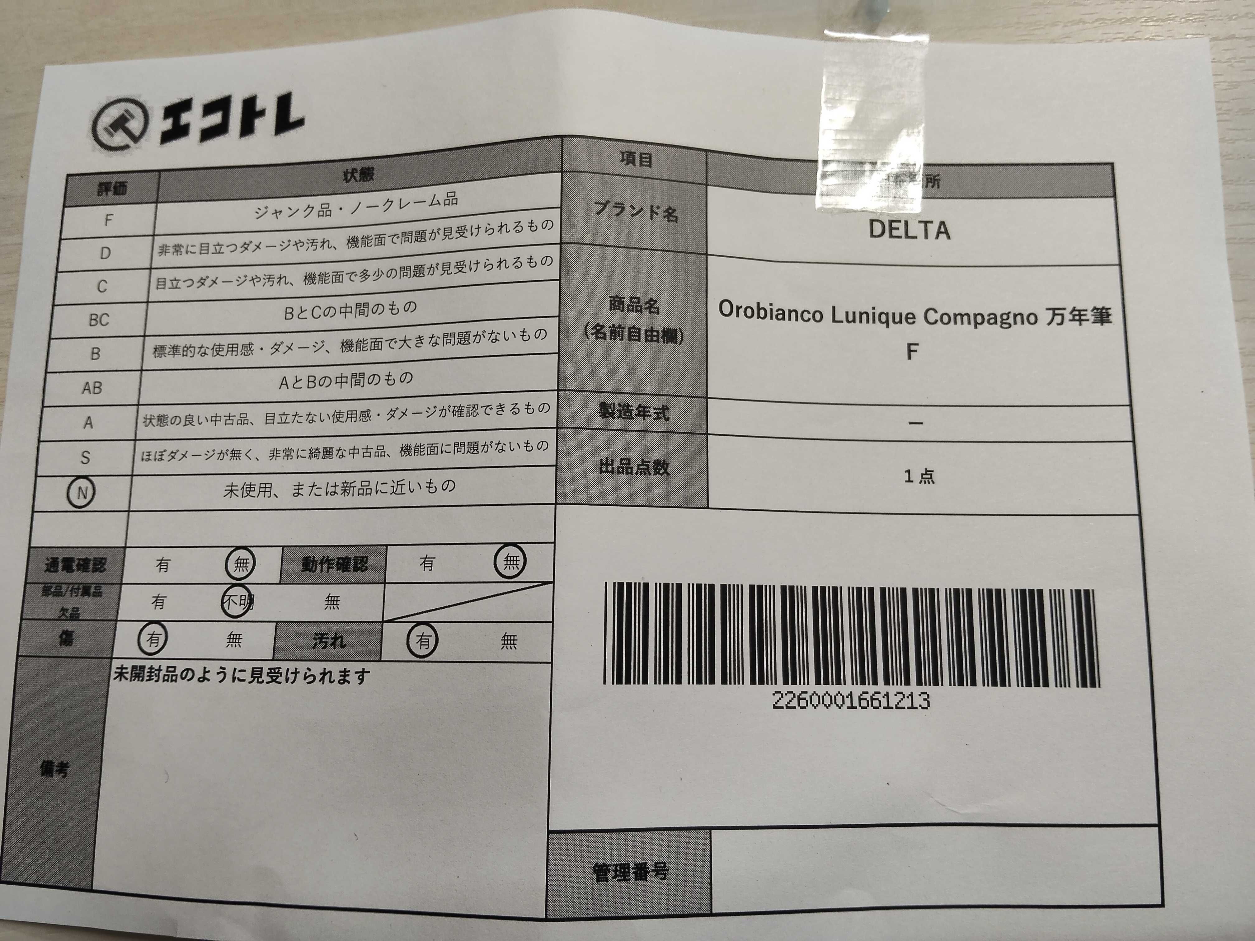 商品内容によって、JITBOXなどでの発送となる可能性がございます事ご理解下さい。年式などの商品情報詳細は写真にてご確認願います。※ご入札の際はご利用規約をよくお読みになってからのご参加お願いします。","タイプライン": "", "カテゴリ": "小物", "形状コード": "ペン・万年筆", "付属品コード": "", "シリアル・シール・型番": ""