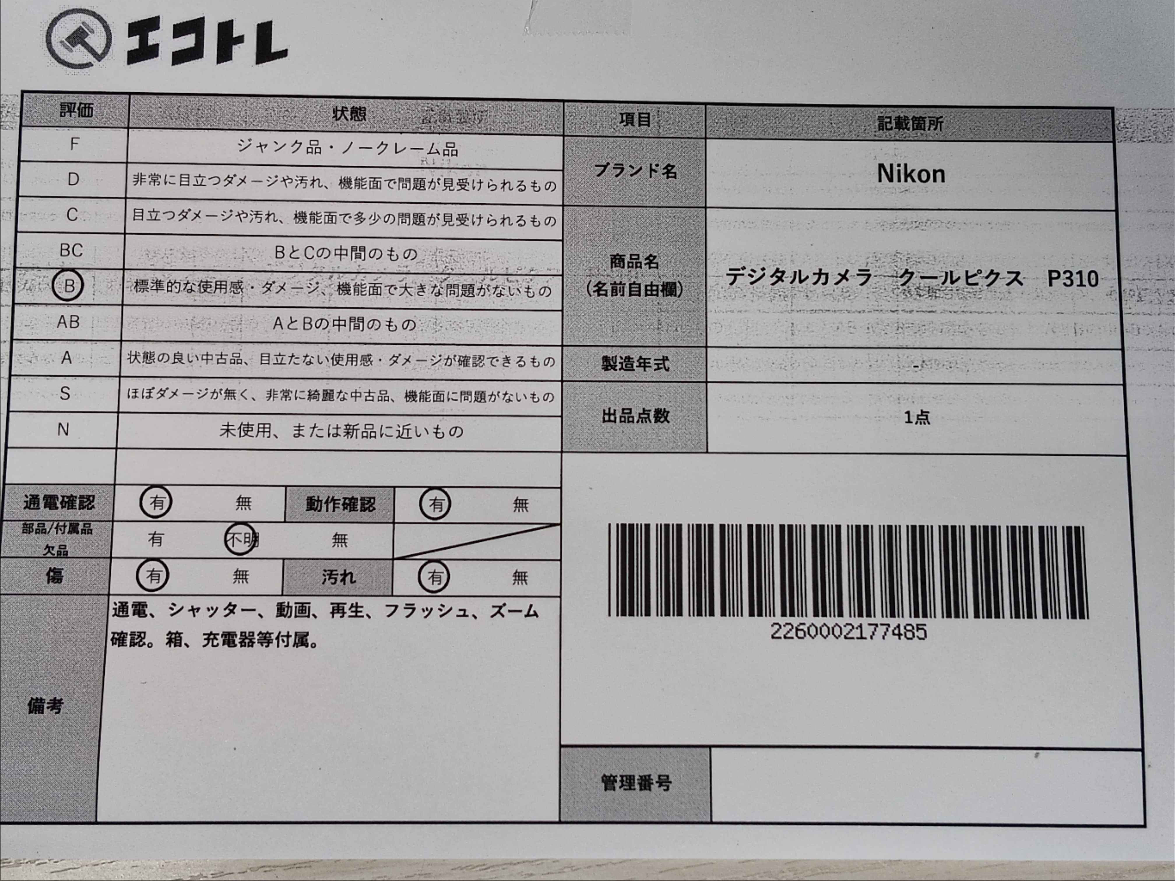 商品内容によって、JITBOXなどでの発送となる可能性がございます事ご理解下さい。年式などの商品情報詳細は写真にてご確認願います。※ご入札の際はご利用規約をよくお読みになってからのご参加お願いします。","タイプライン": "", "カテゴリ": "カメラ", "形状コード": "カメラ", "付属品コード": "", "シリアル・シール・型番": ""