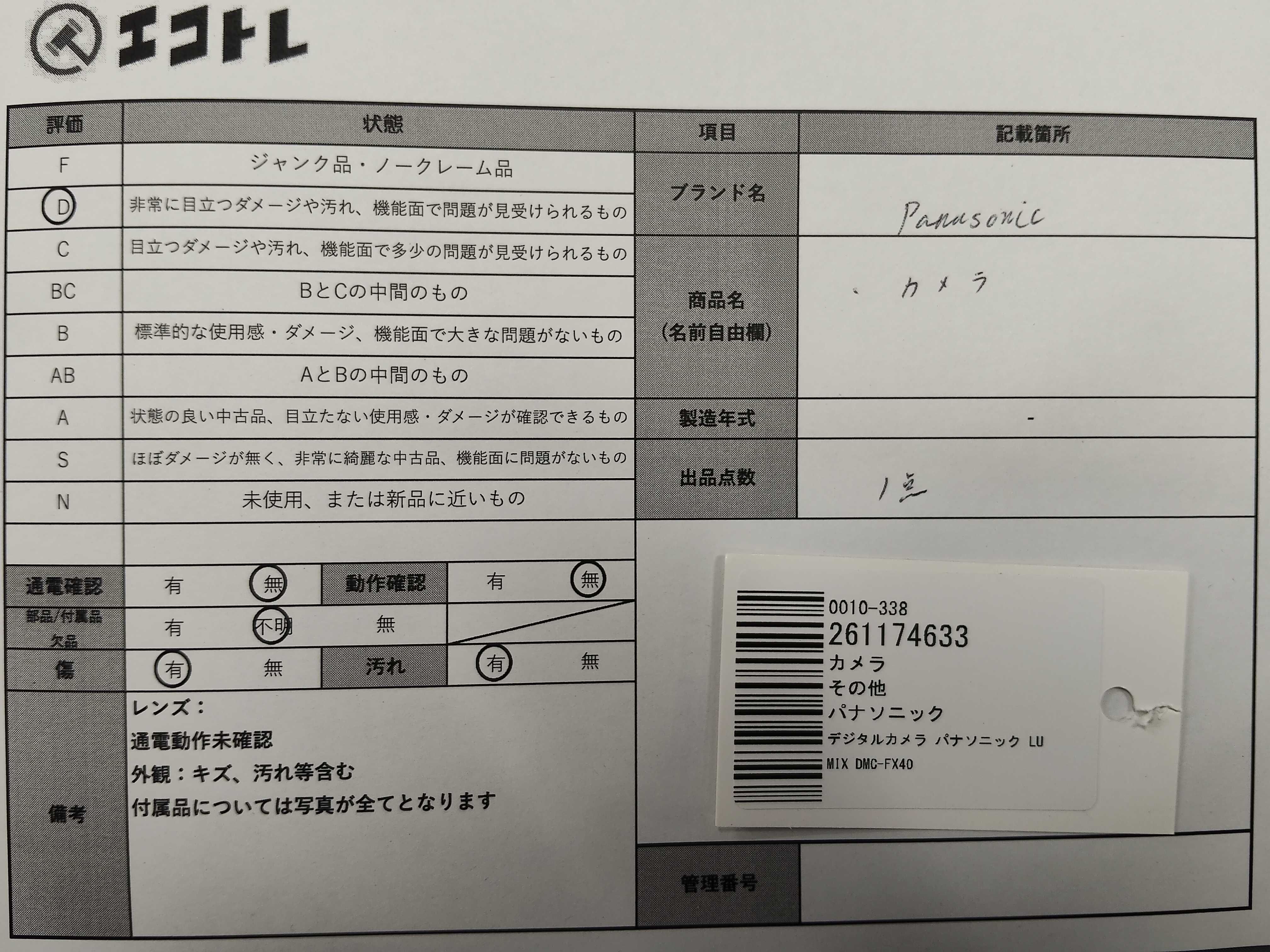 商品内容によって、JITBOXなどでの発送となる可能性がございます事ご理解下さい。年式などの商品情報詳細は写真にてご確認願います。※ご入札の際はご利用規約をよくお読みになってからのご参加お願いします。","タイプライン": "", "カテゴリ": "カメラ", "形状コード": "カメラ", "付属品コード": "", "シリアル・シール・型番": ""