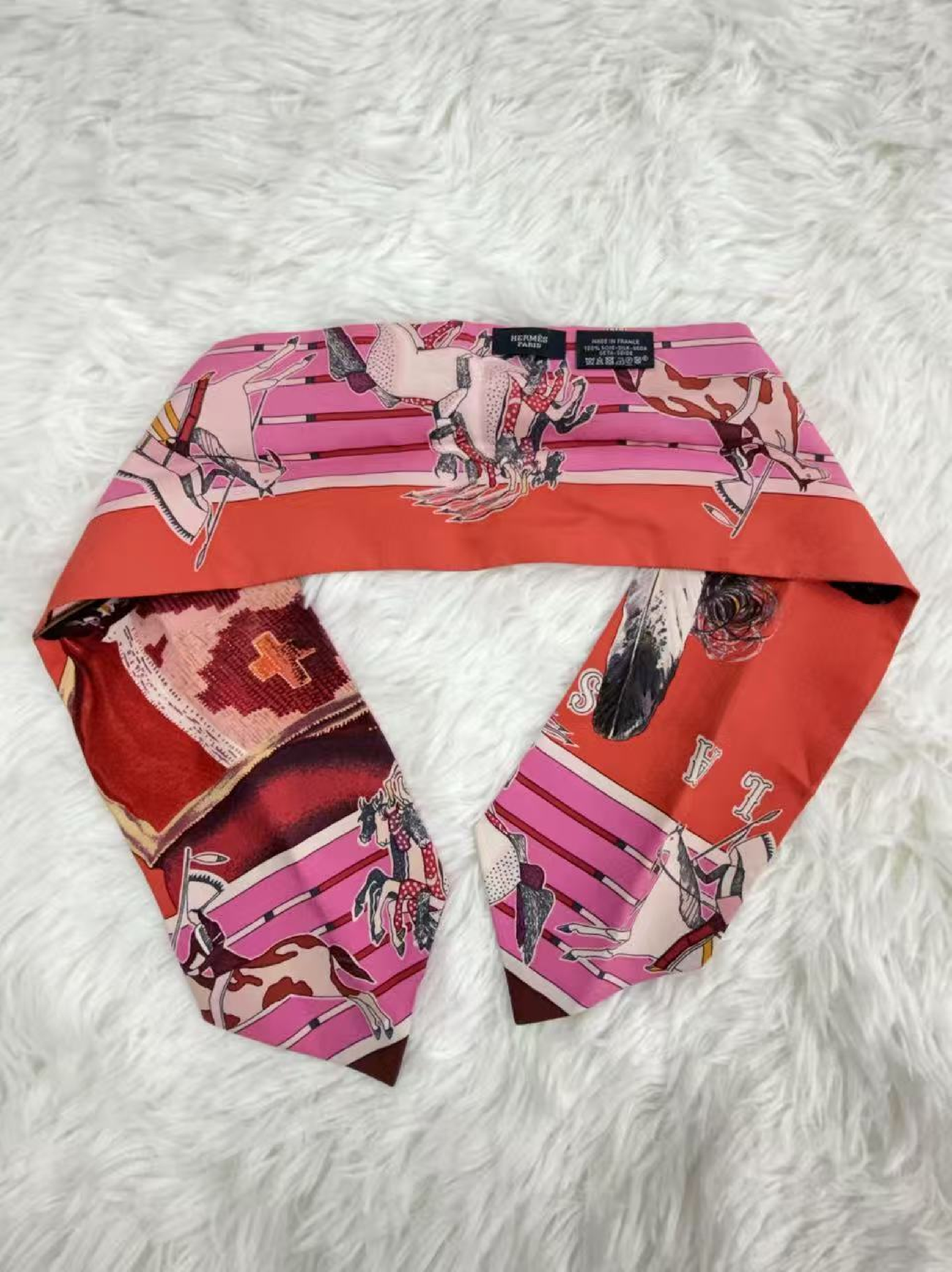 (11942_0005)HERMES エルメス トゥイリー 馬具柄 両面 シルク スカーフ オリジナル箱付き83×11cm その他小物