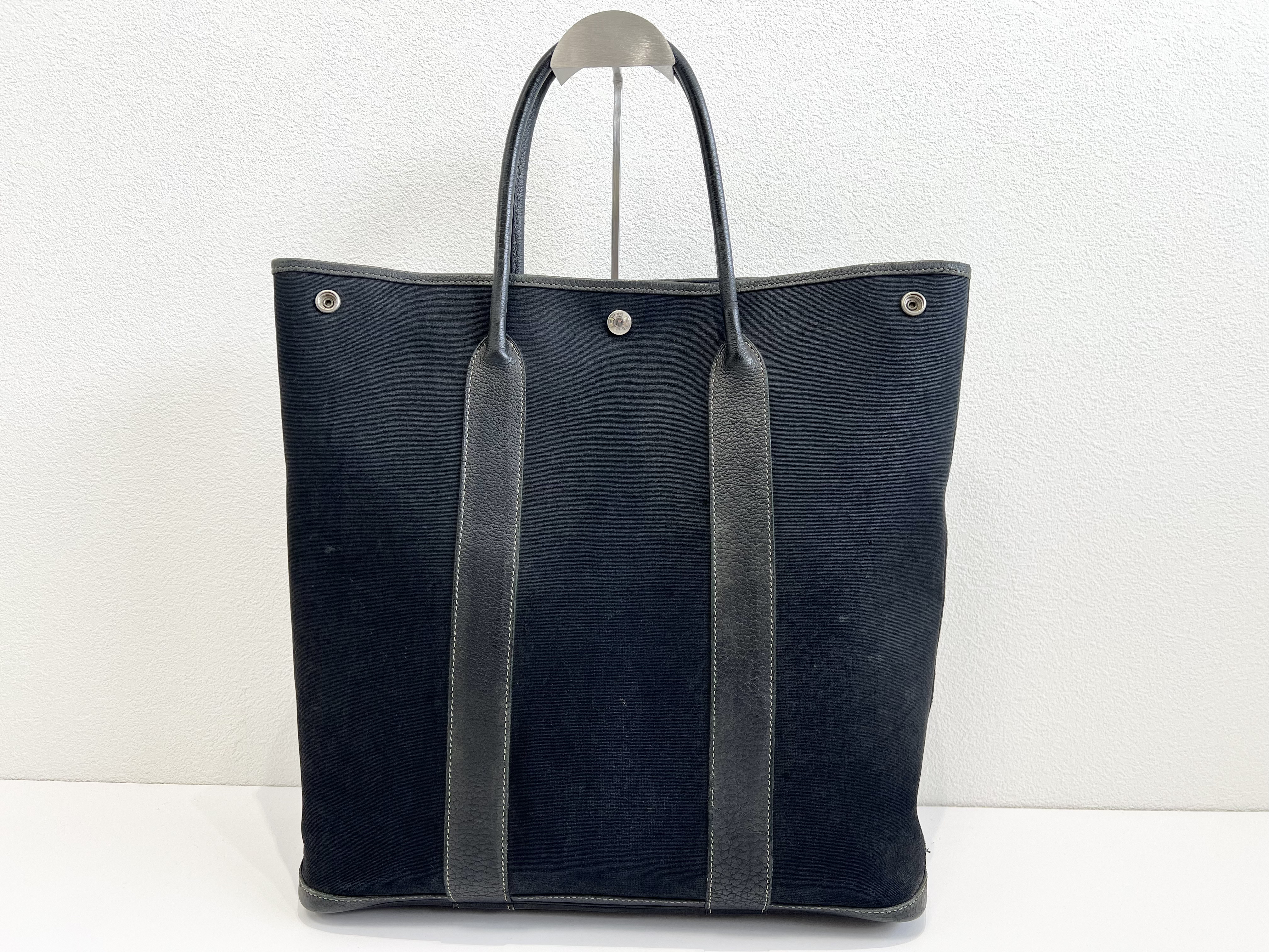 (11942_0011)HERMES エルメス □H刻印 ガーデンファイルMM トートバッグ ラージトート ハンドバッグ 縦長 トワルオフィシエ レザー ブラック 黒