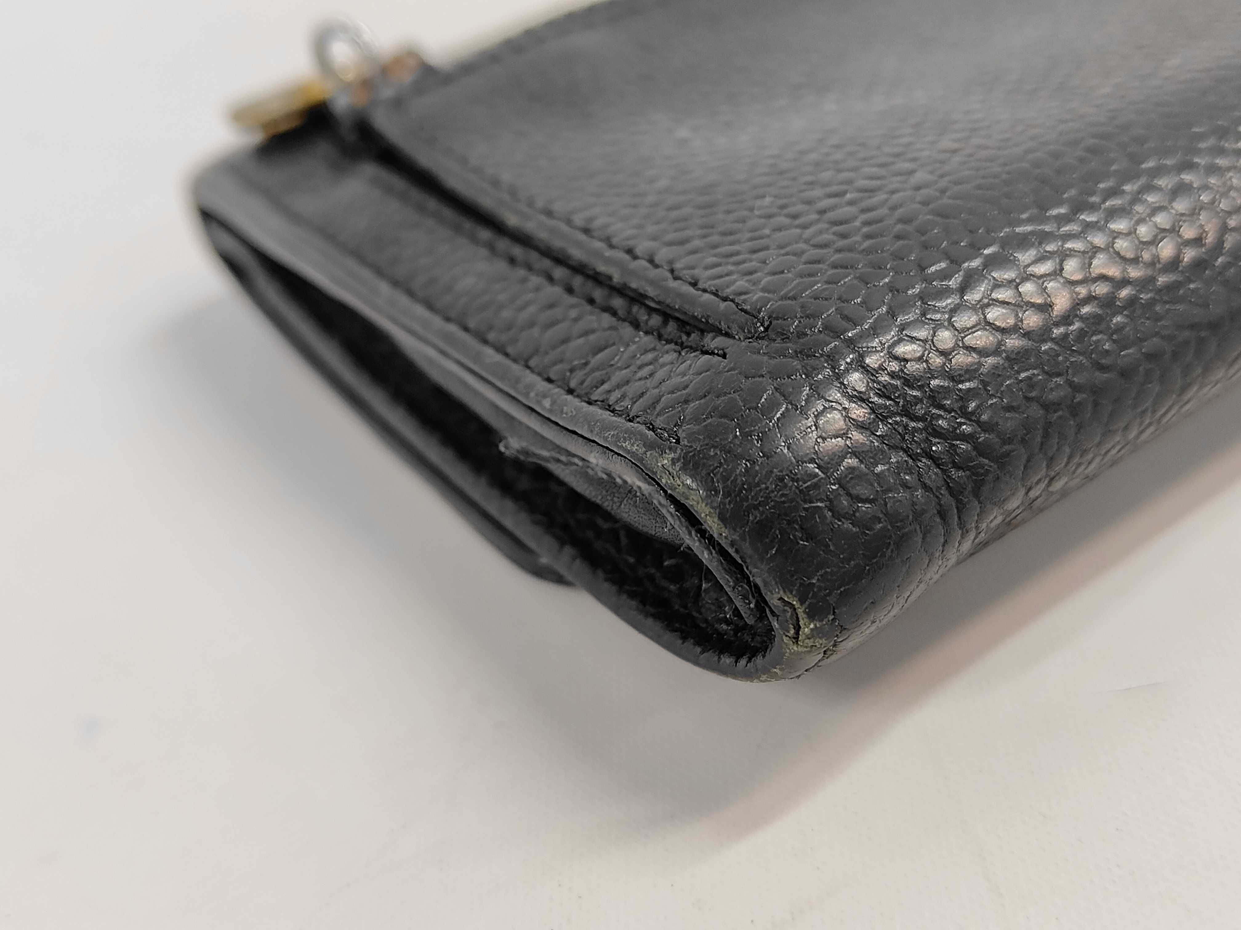 (11943_0023)CHANEL シャネル 二つ折り短財布 3453620 キャビアスキン 黒色 ブラック デカココマーク