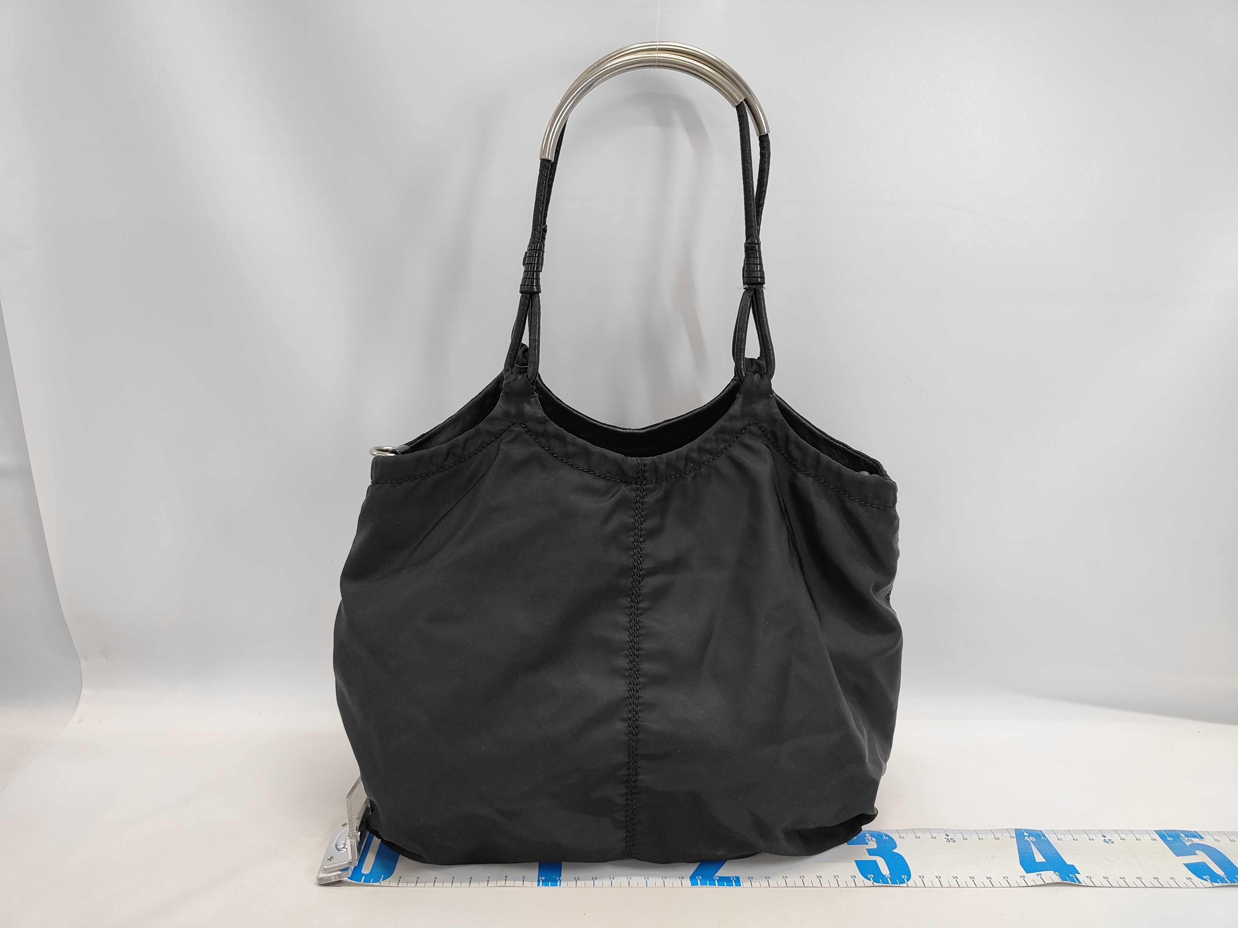 (11945_0090)PRADA テスートナイロン メタルハンドル トート ハンドバッグ