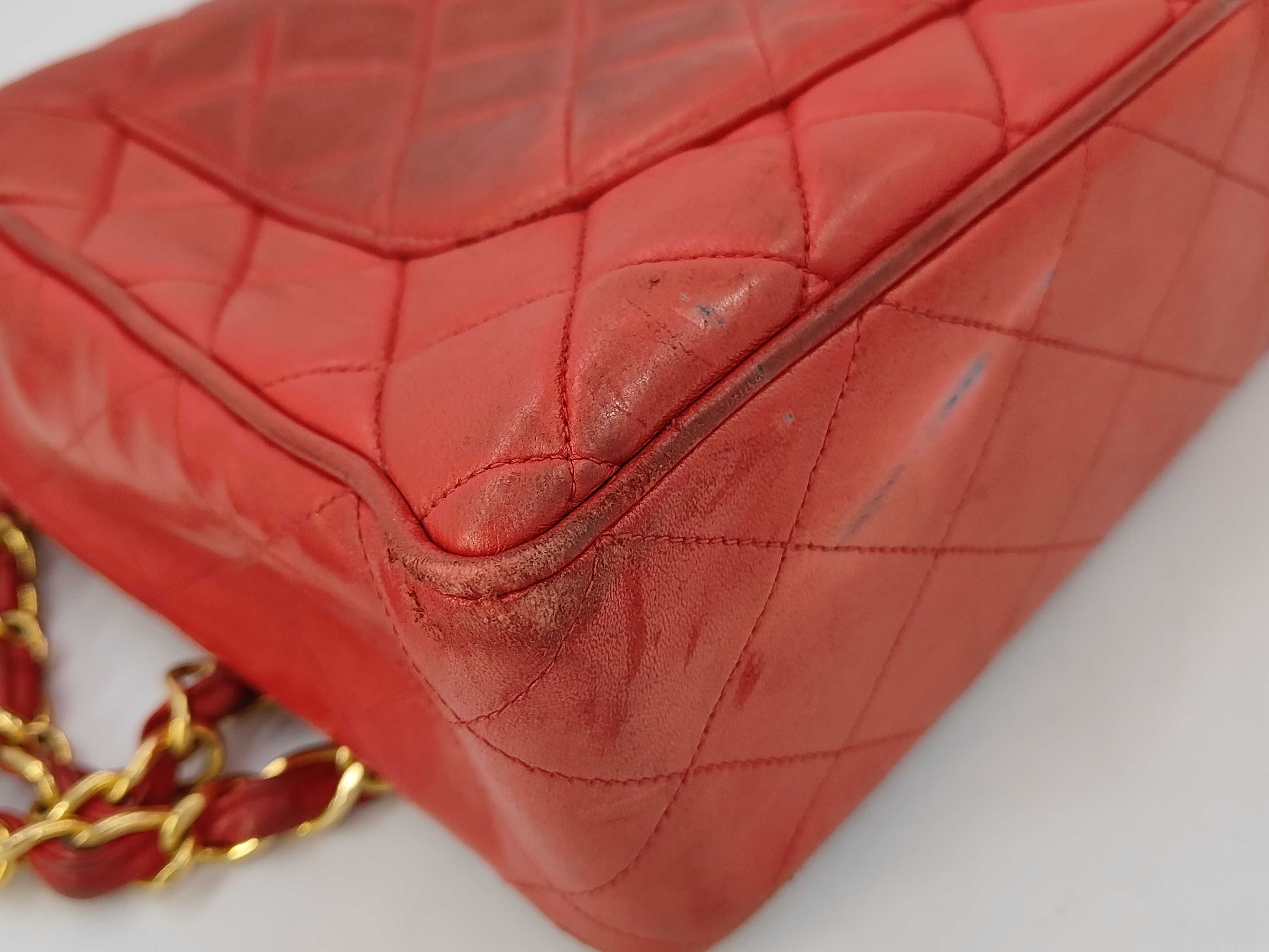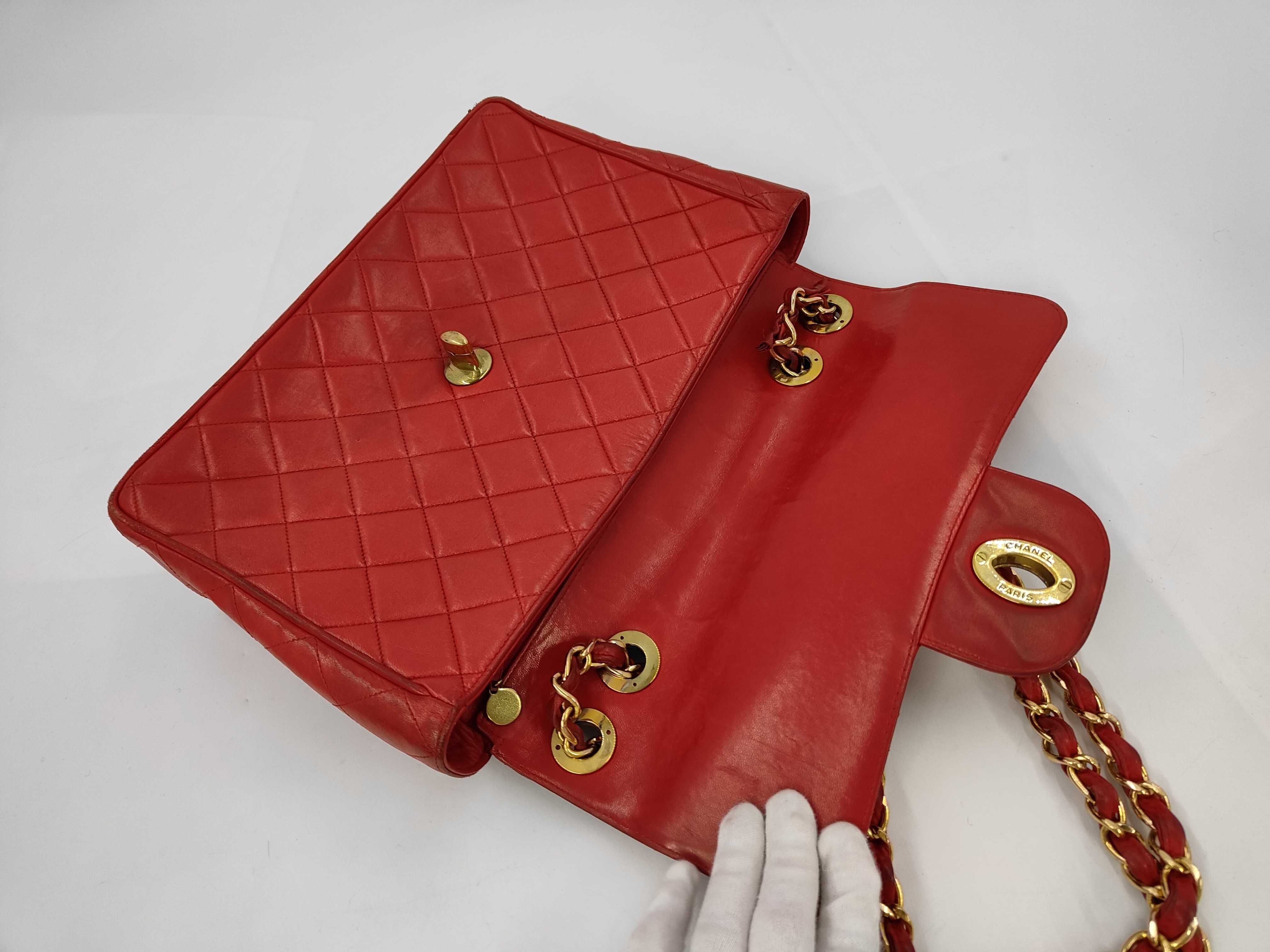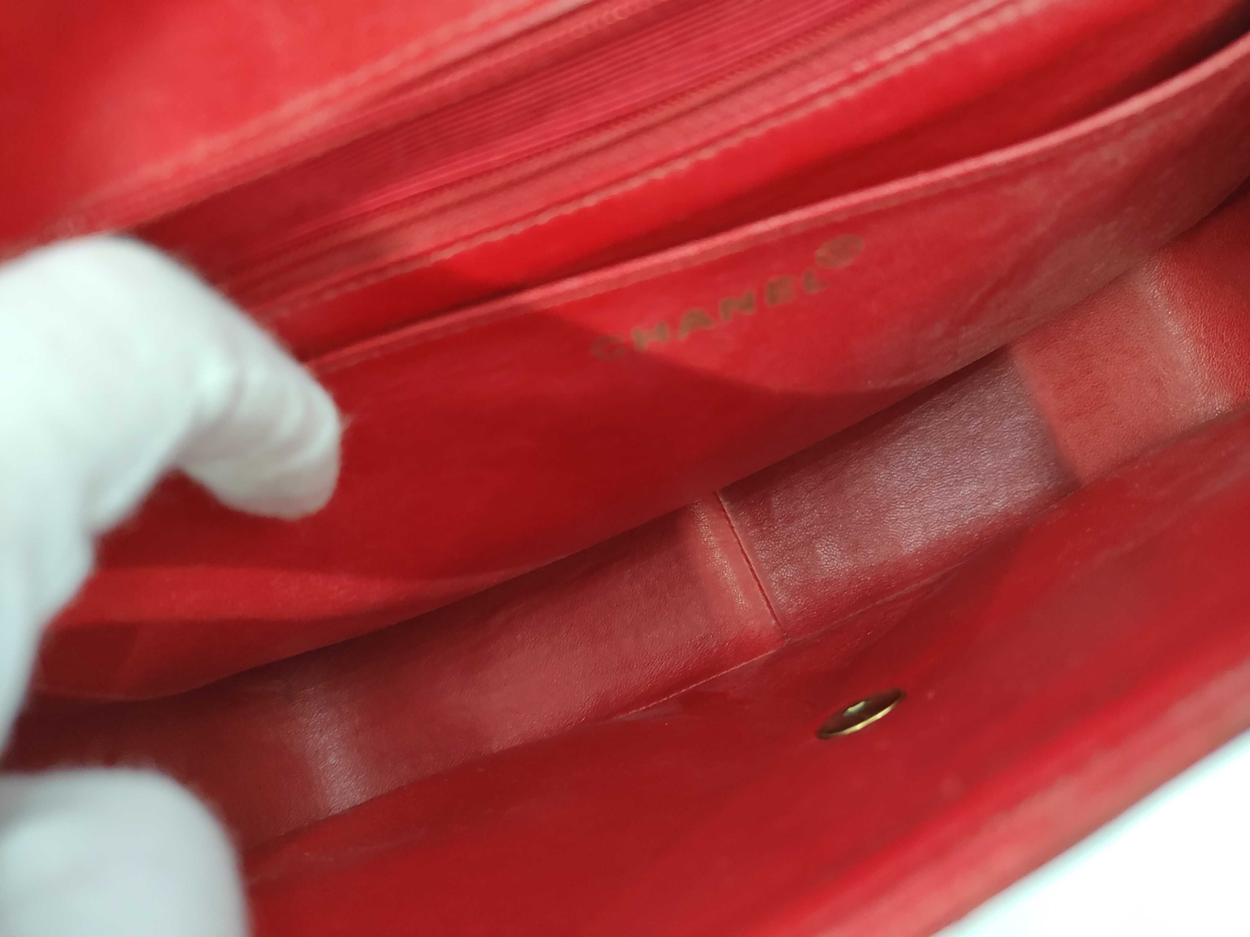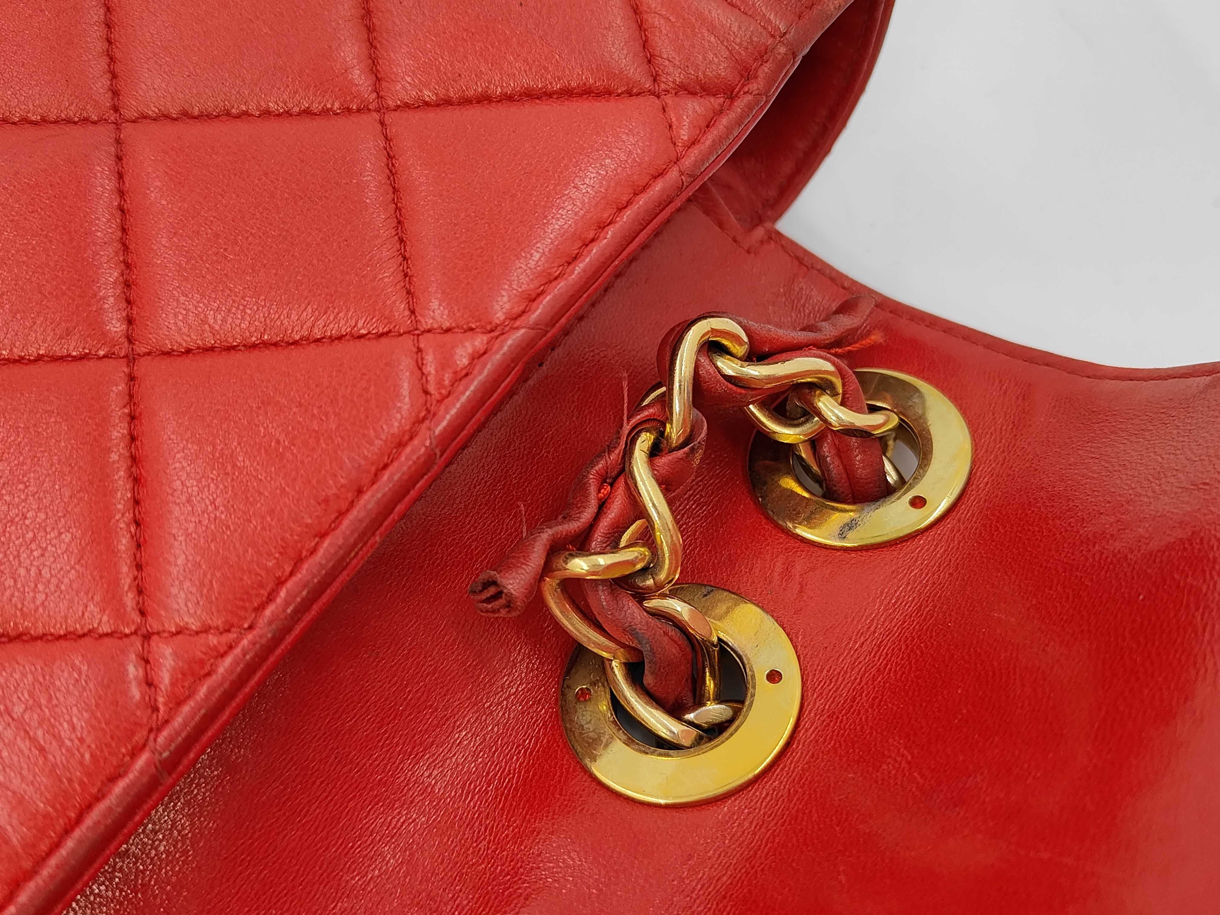 (11943_0029)CHANEL ラムスキン 赤 Wチェーン Sフラップ G金具 ショルダーバッグ