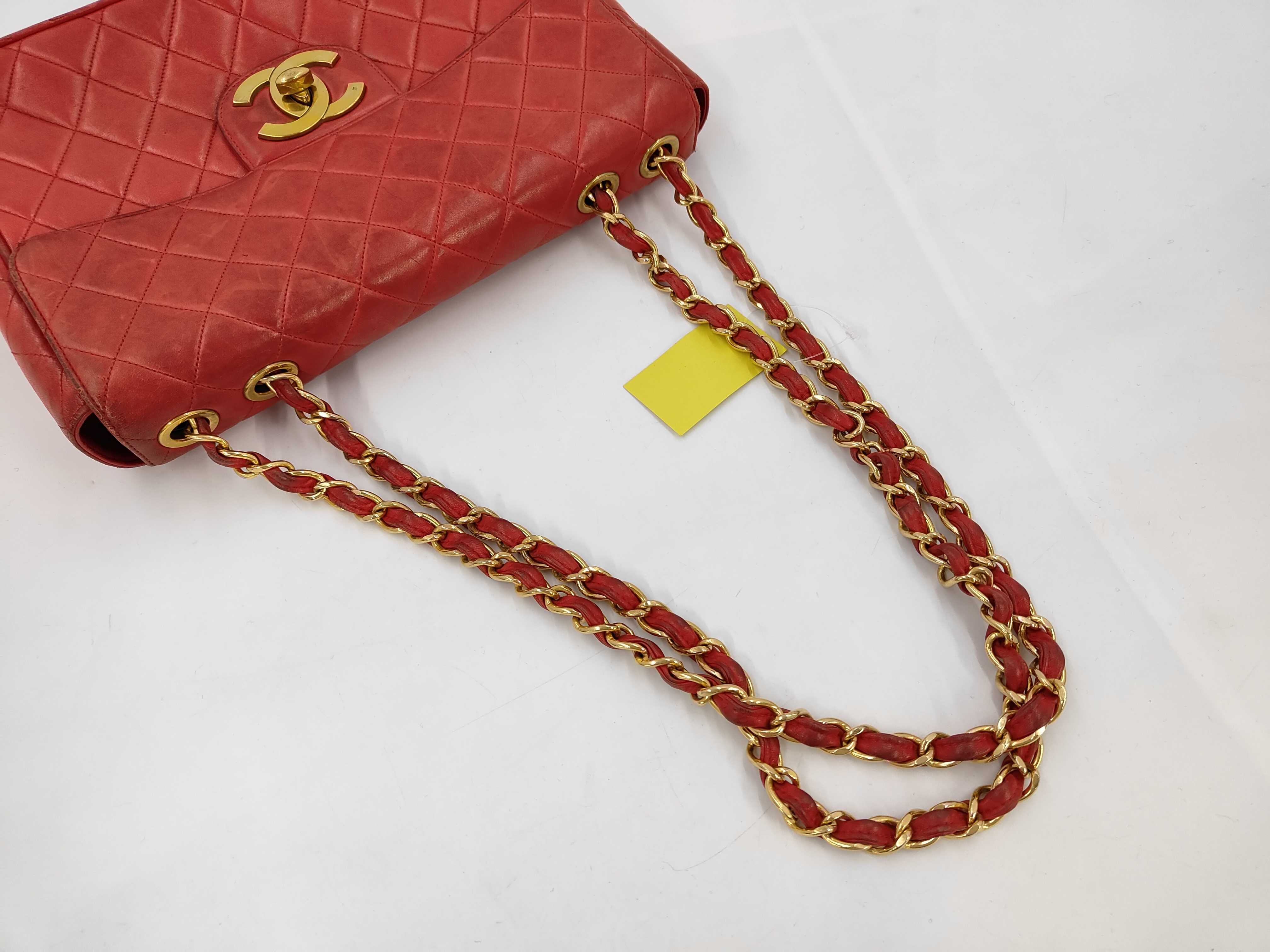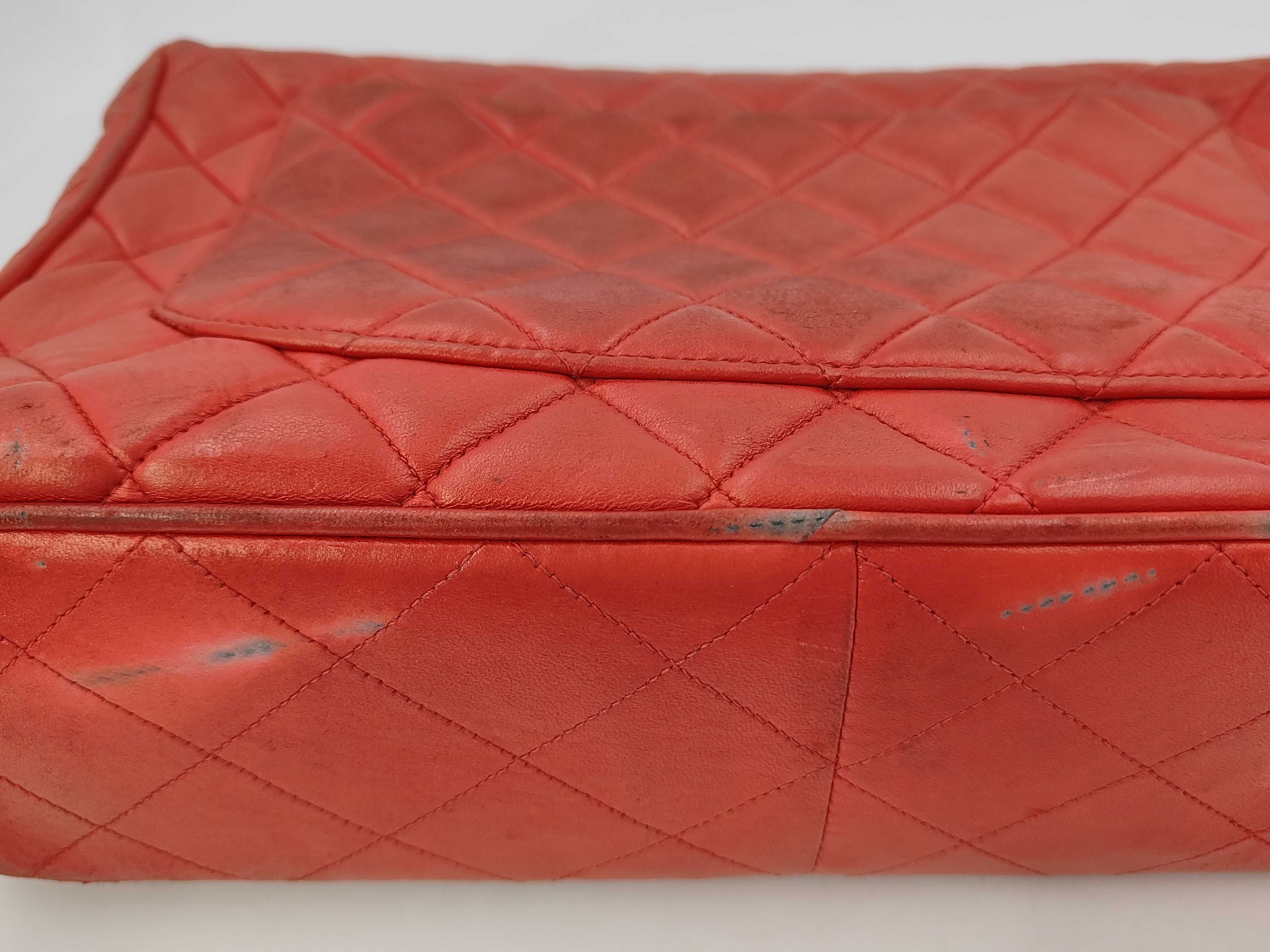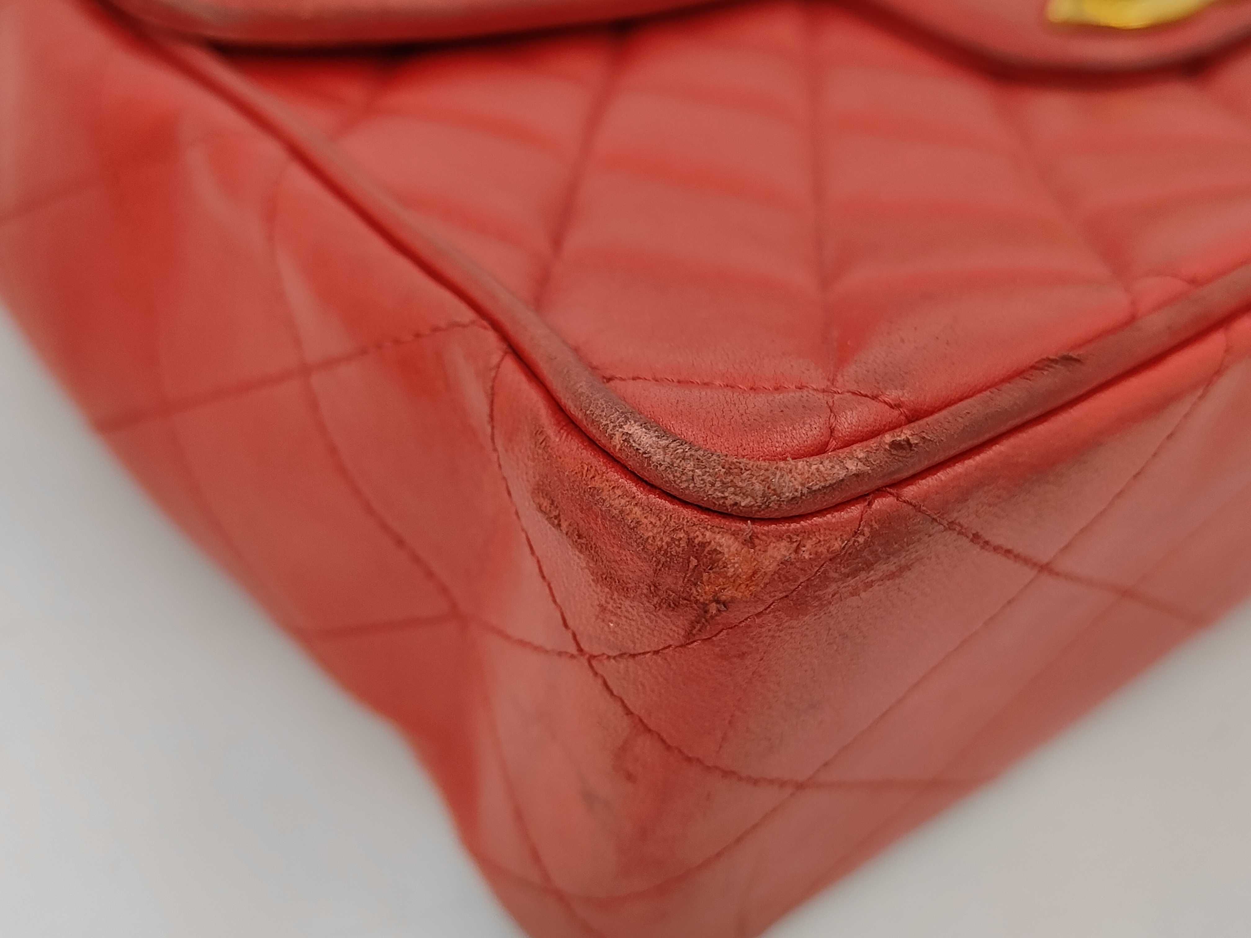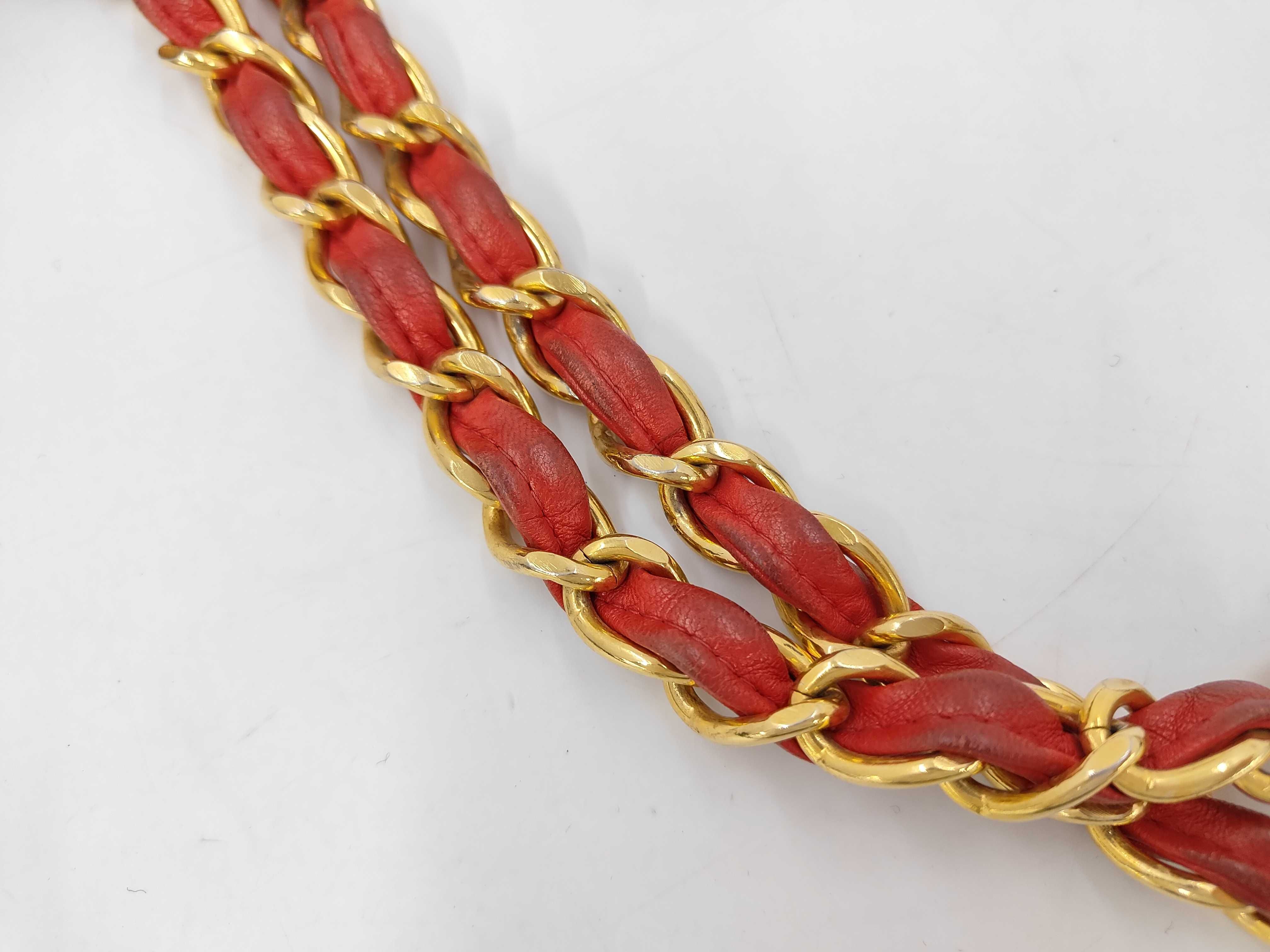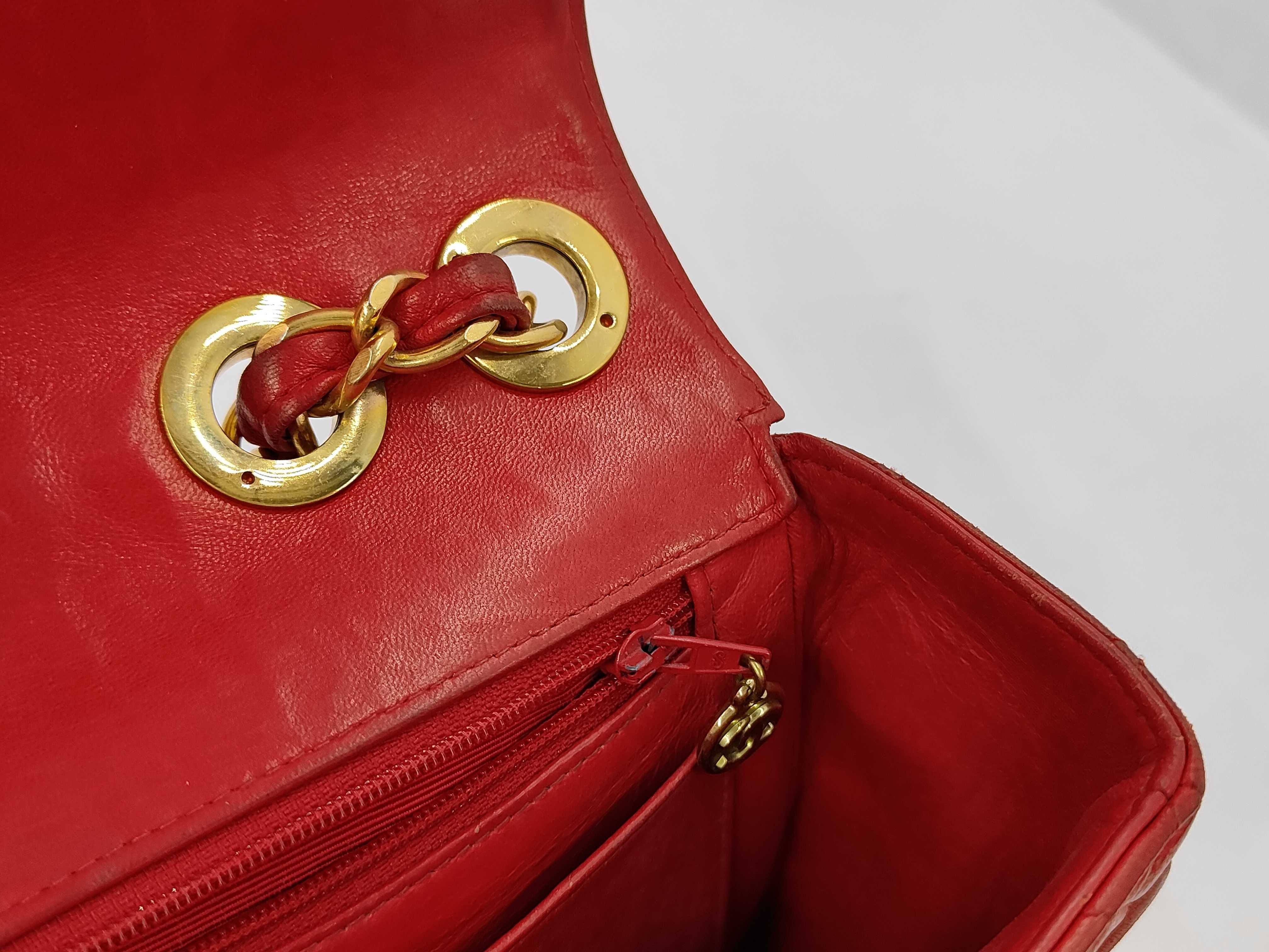 (11943_0029)CHANEL ラムスキン 赤 Wチェーン Sフラップ G金具 ショルダーバッグ