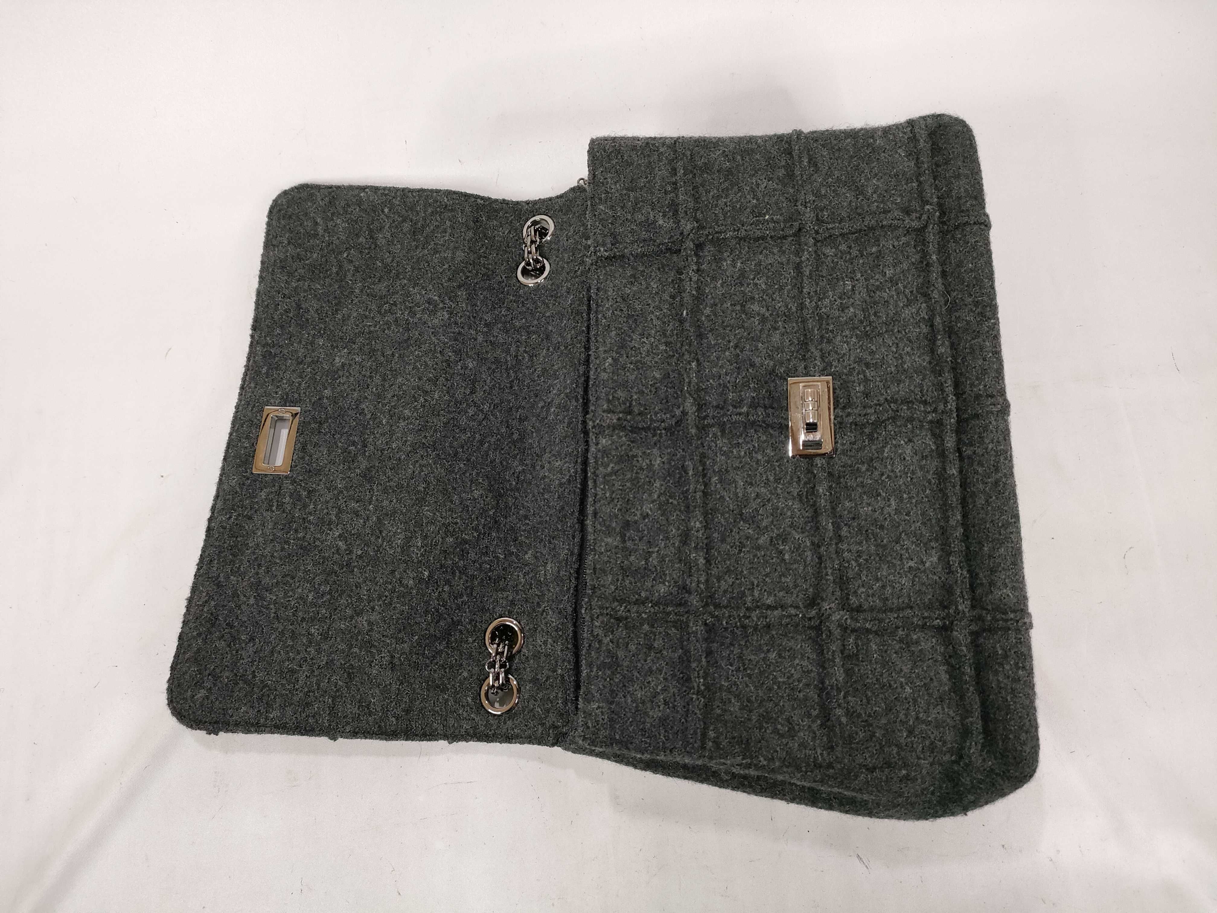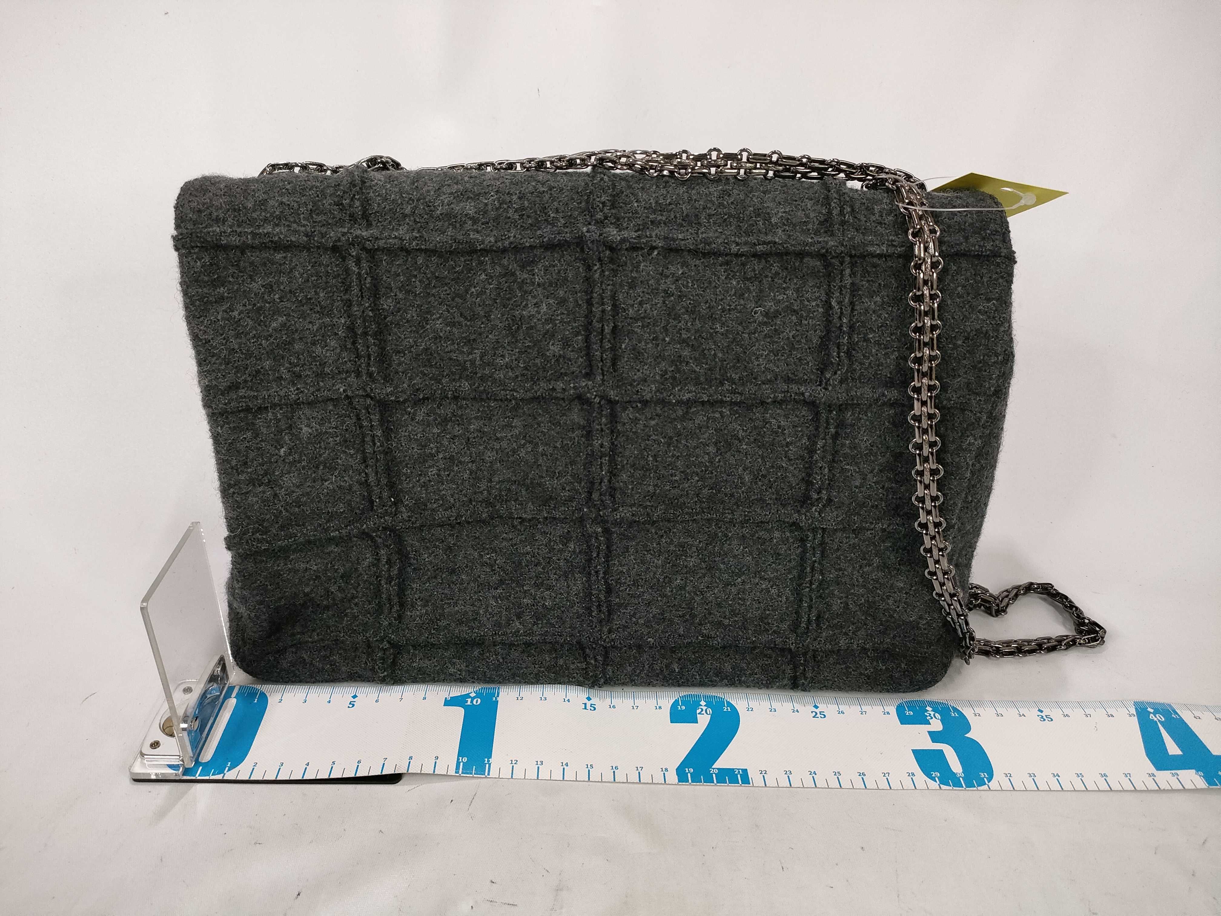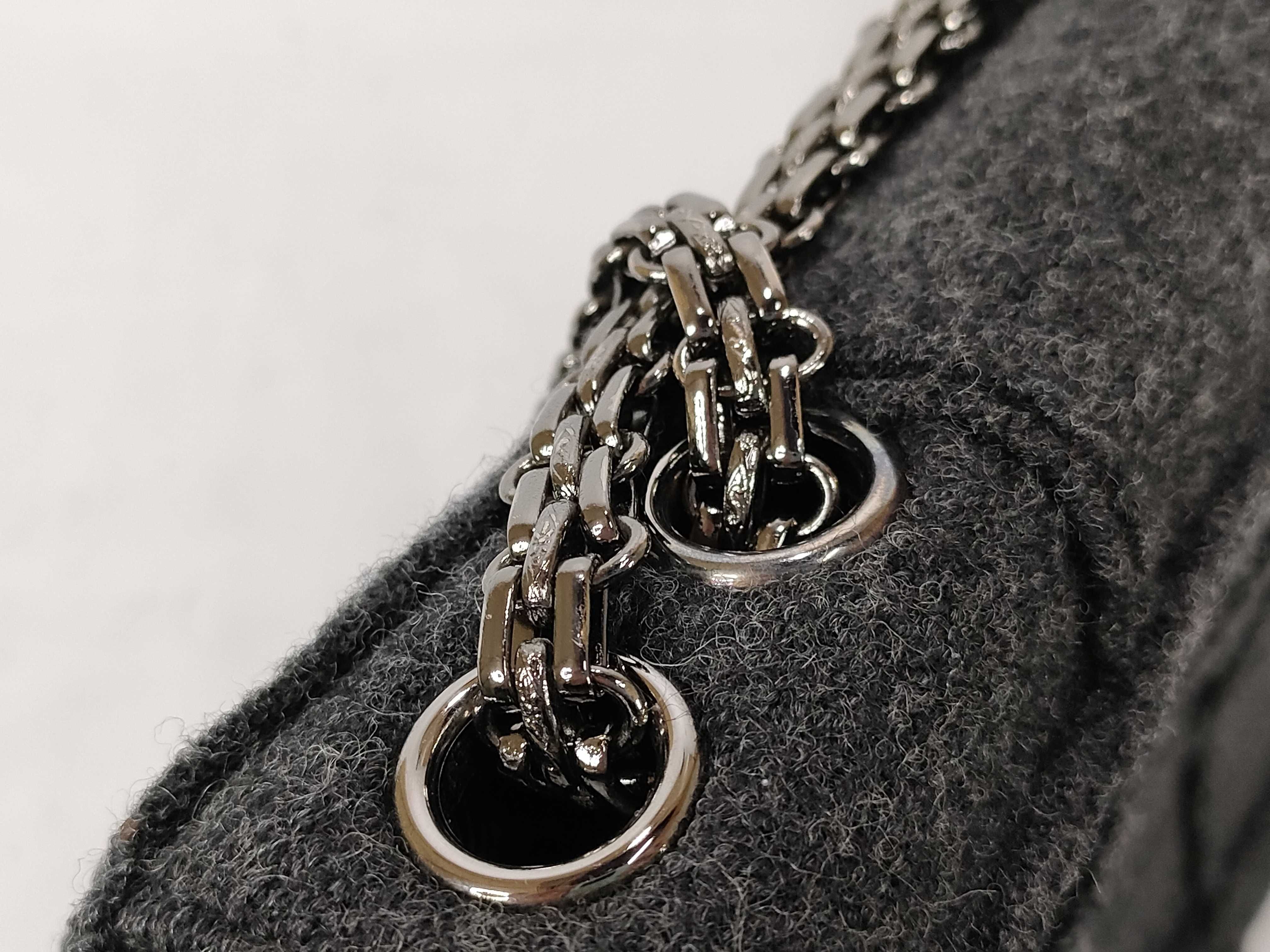 (11943_0050)CHANEL チョコバー フェルト Wチェーンショルダー グレー ショルダーバッグ
