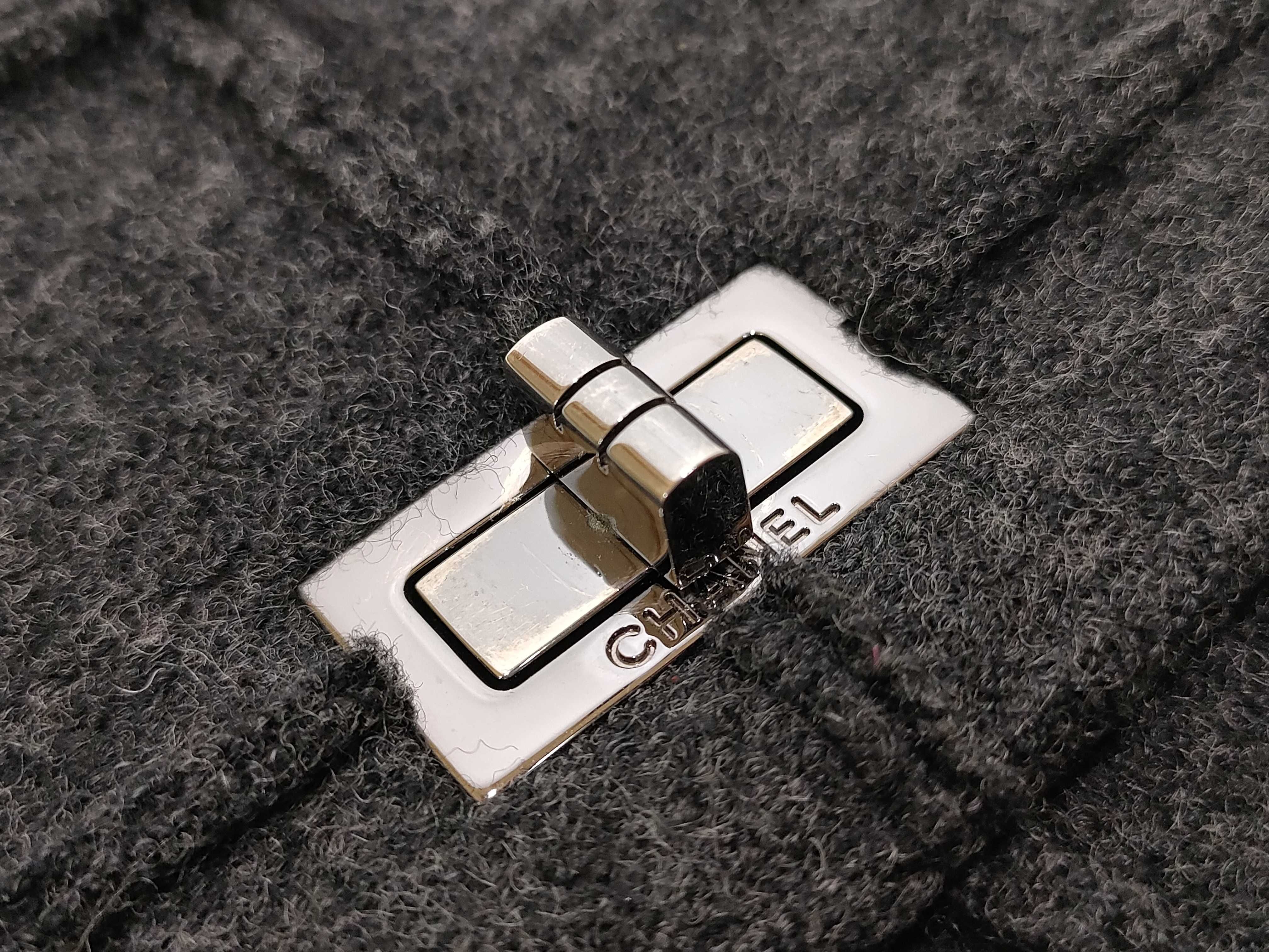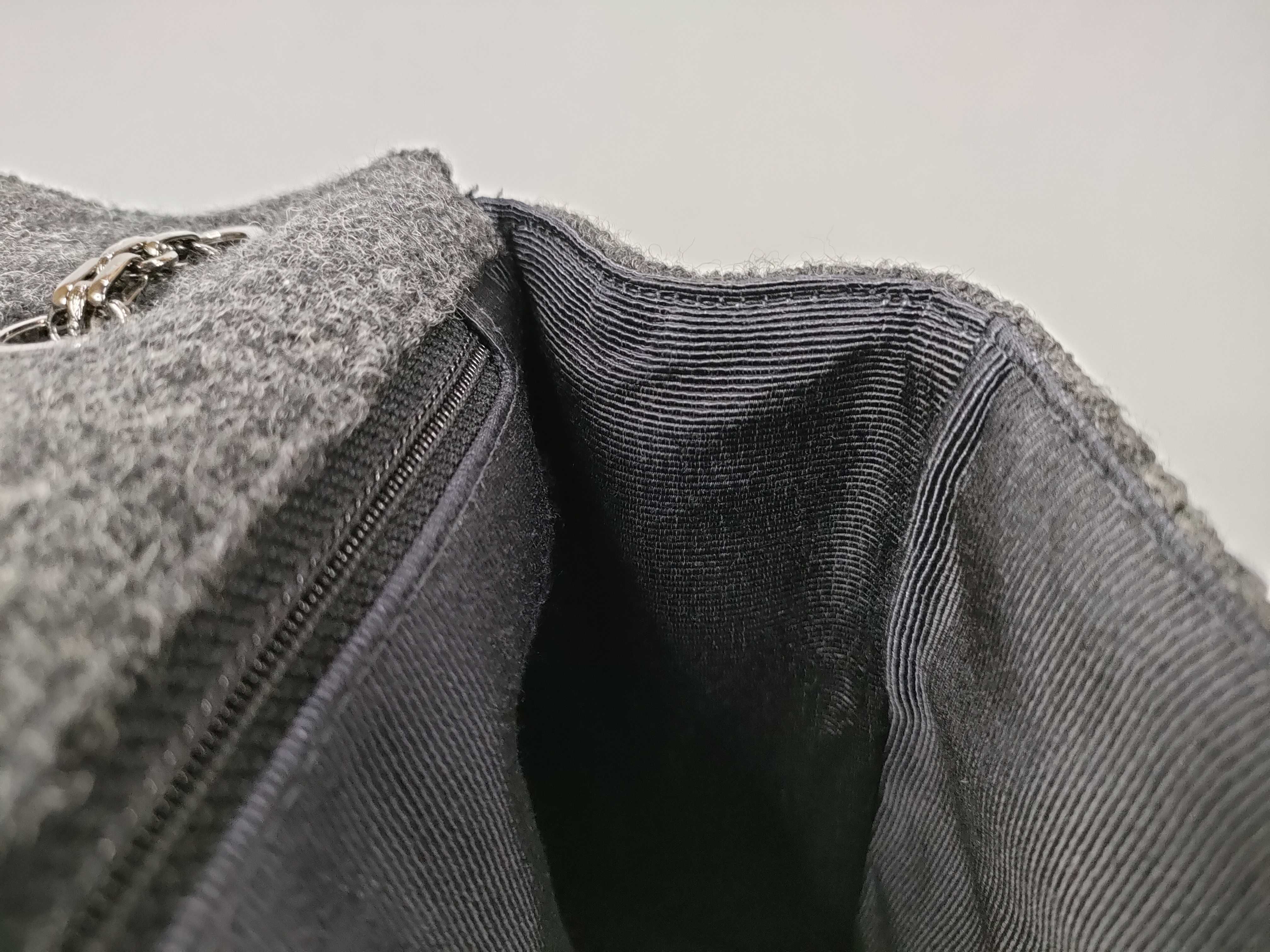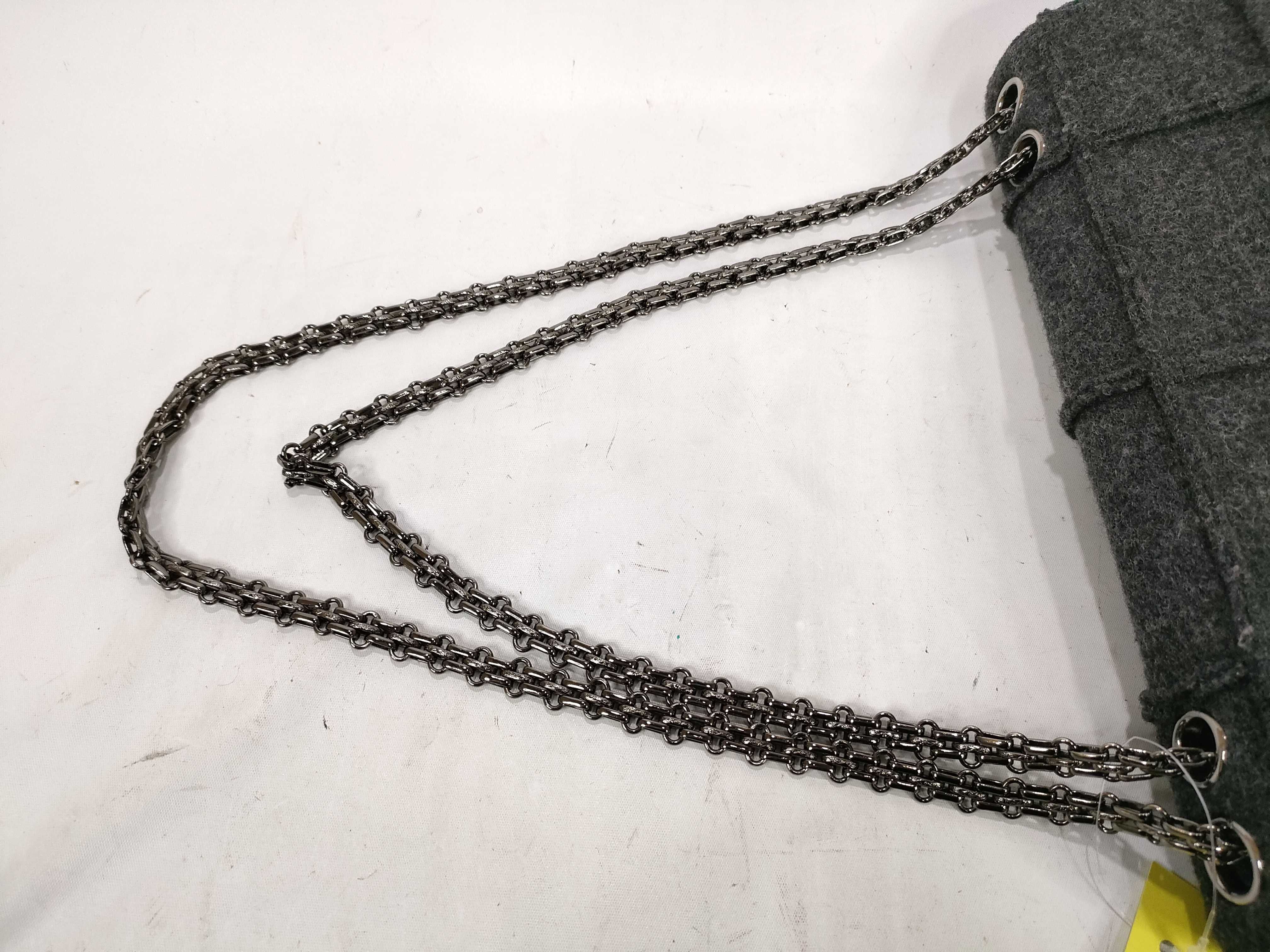 (11943_0050)CHANEL チョコバー フェルト Wチェーンショルダー グレー ショルダーバッグ