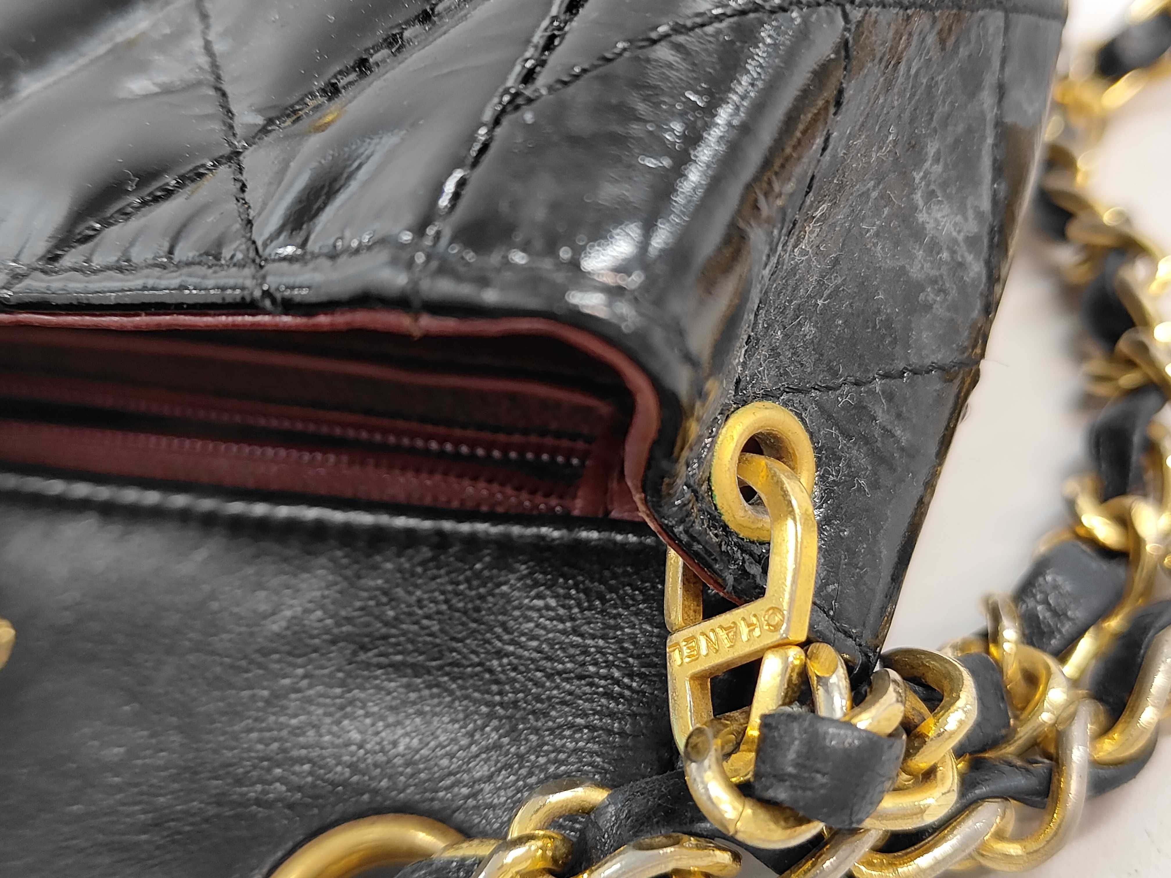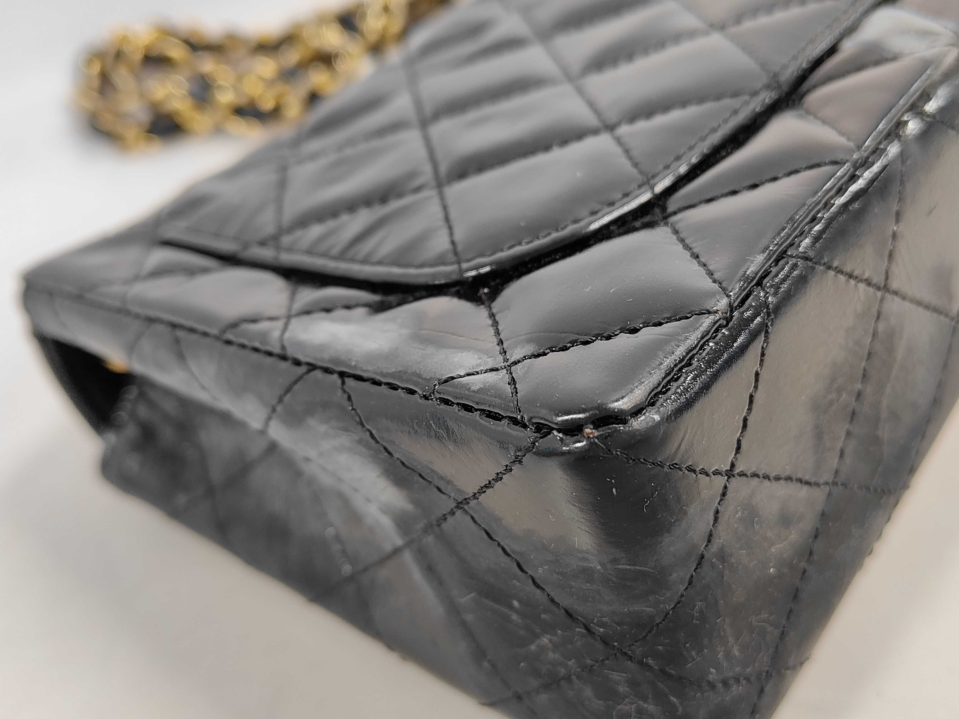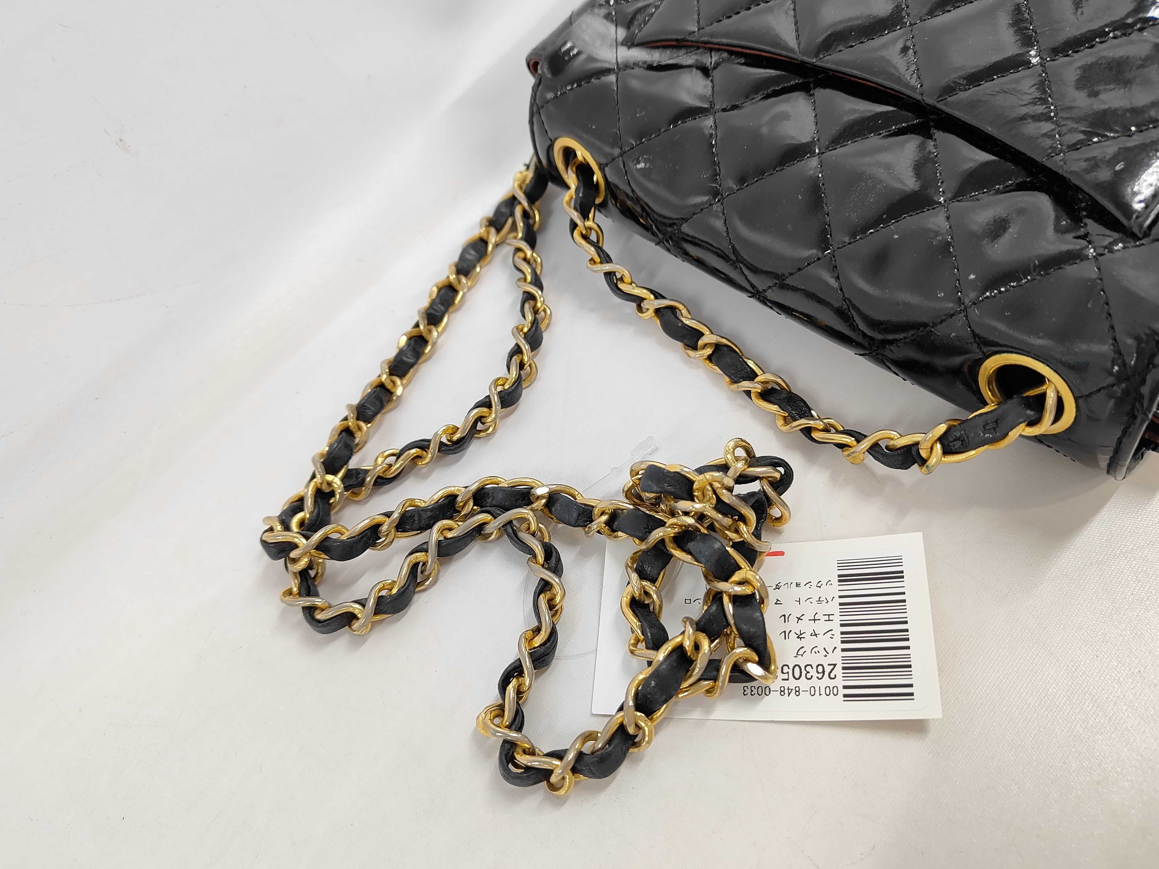 (11943_0116)CHANEL エナメル パテント マトラッセ ターンロックショルダー(表面カビ有) ショルダーバッグ