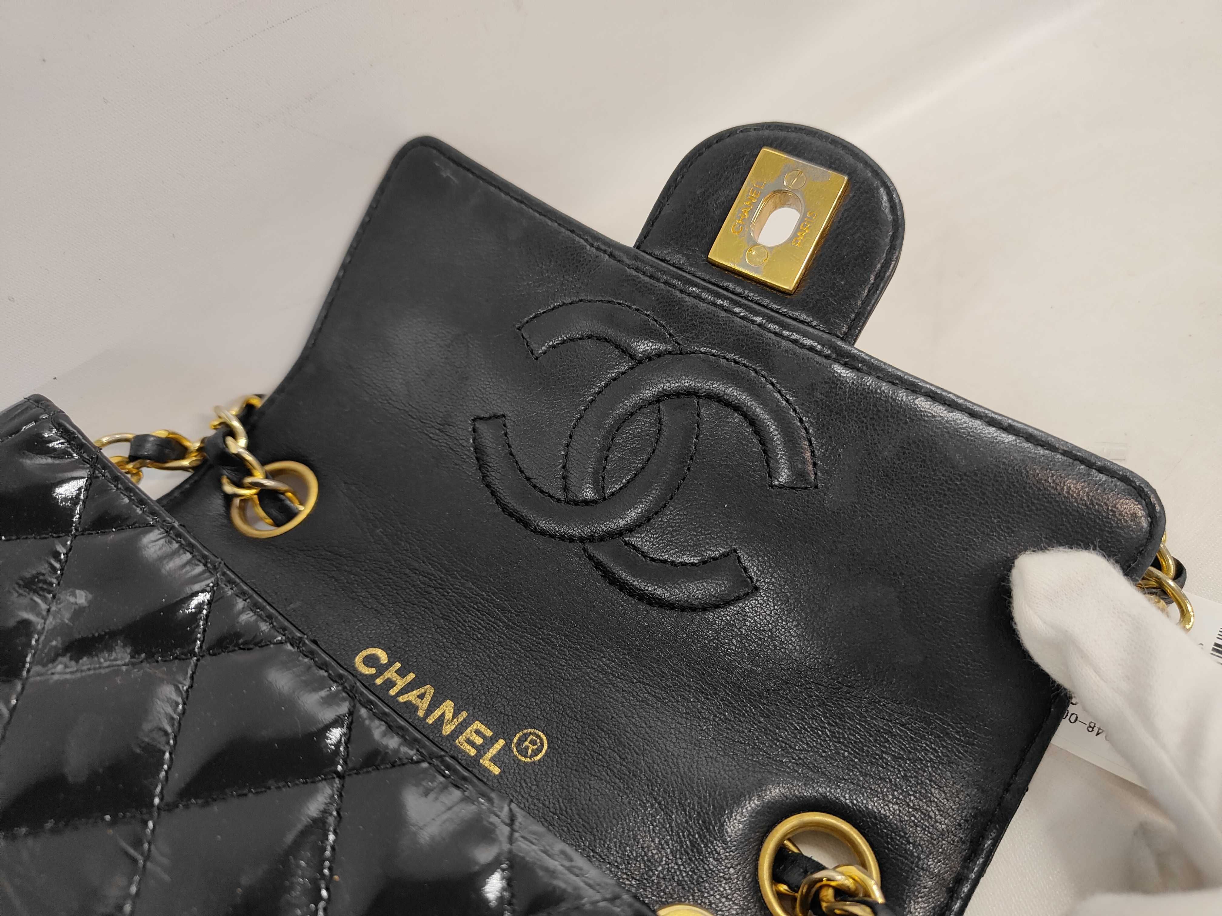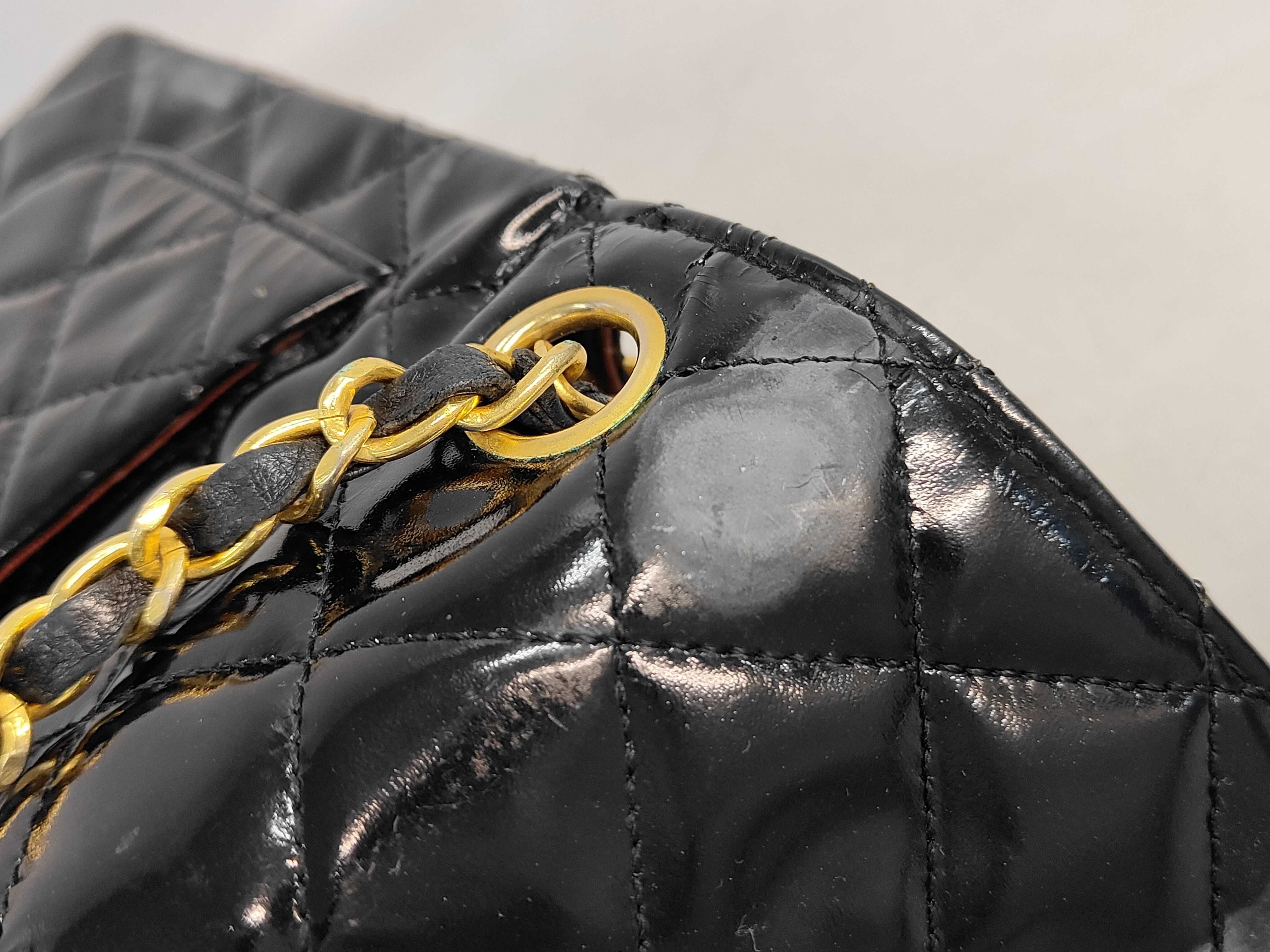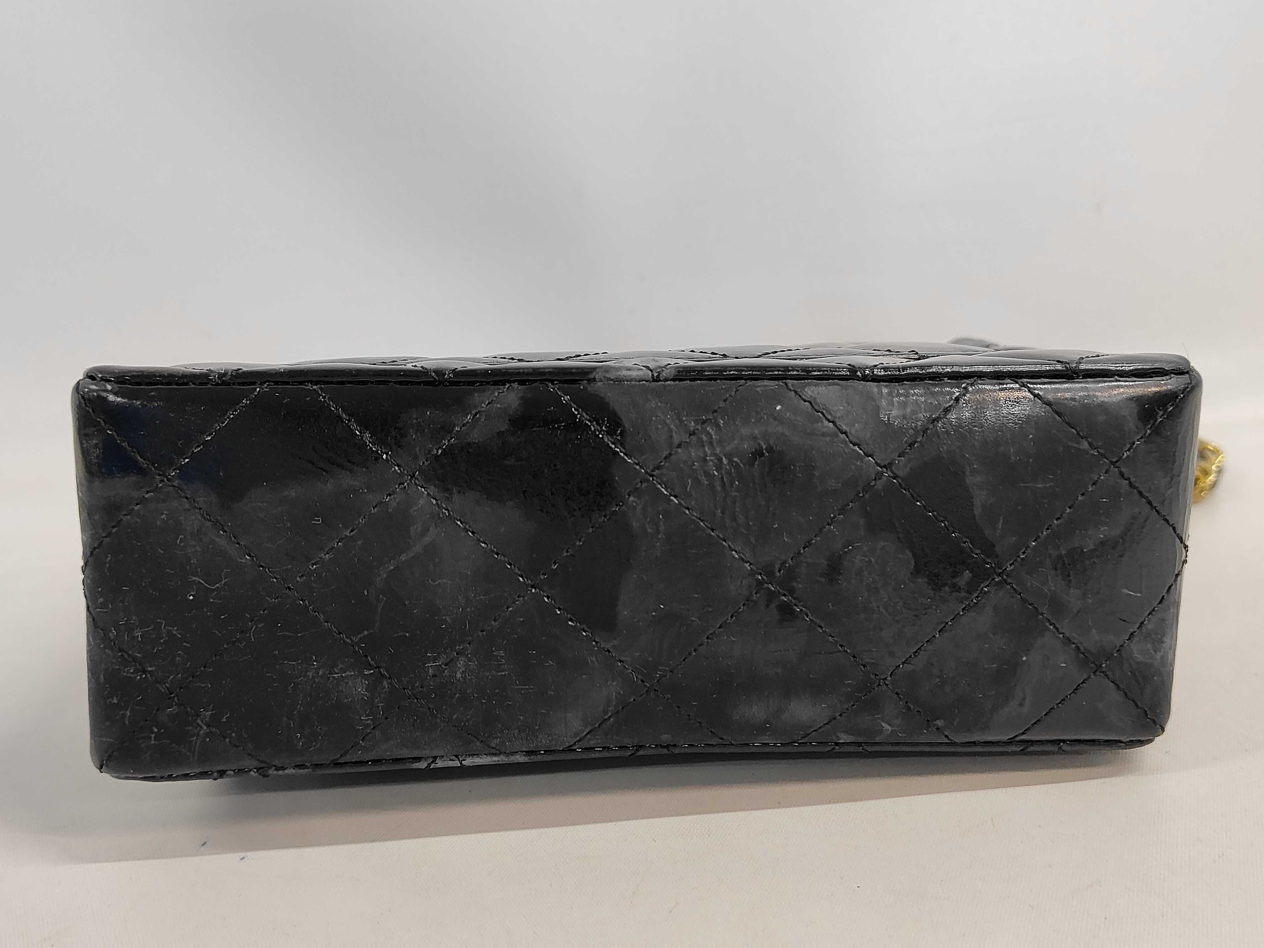(11943_0116)CHANEL エナメル パテント マトラッセ ターンロックショルダー(表面カビ有) ショルダーバッグ