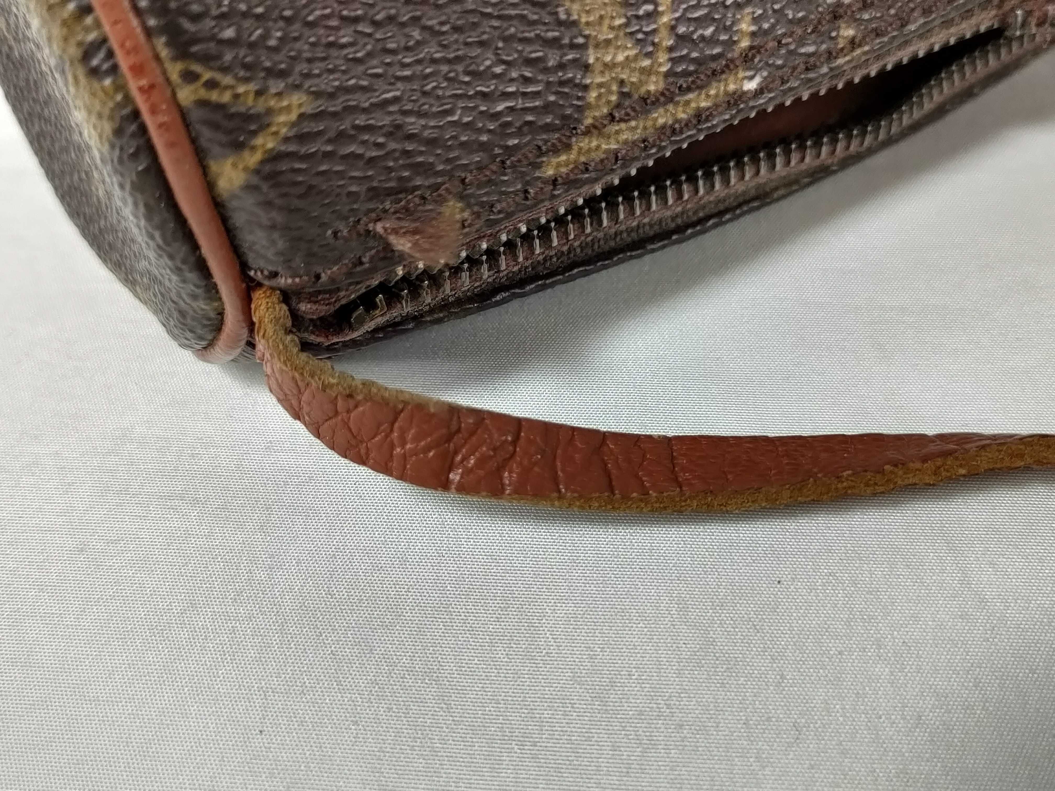 全体擦れ(中) 角擦れ(中) ヌメ革やけ汚れ(中) ヌメ革ヒビ(中) 持ち手・ショルダーひび(中)","タイプライン": "モノグラム", "カテゴリ": "バッグ", "形状コード": "ポーチ", "付属品コード": "", "シリアル・シール・型番": "RFID確認できず シリアル確認できず"