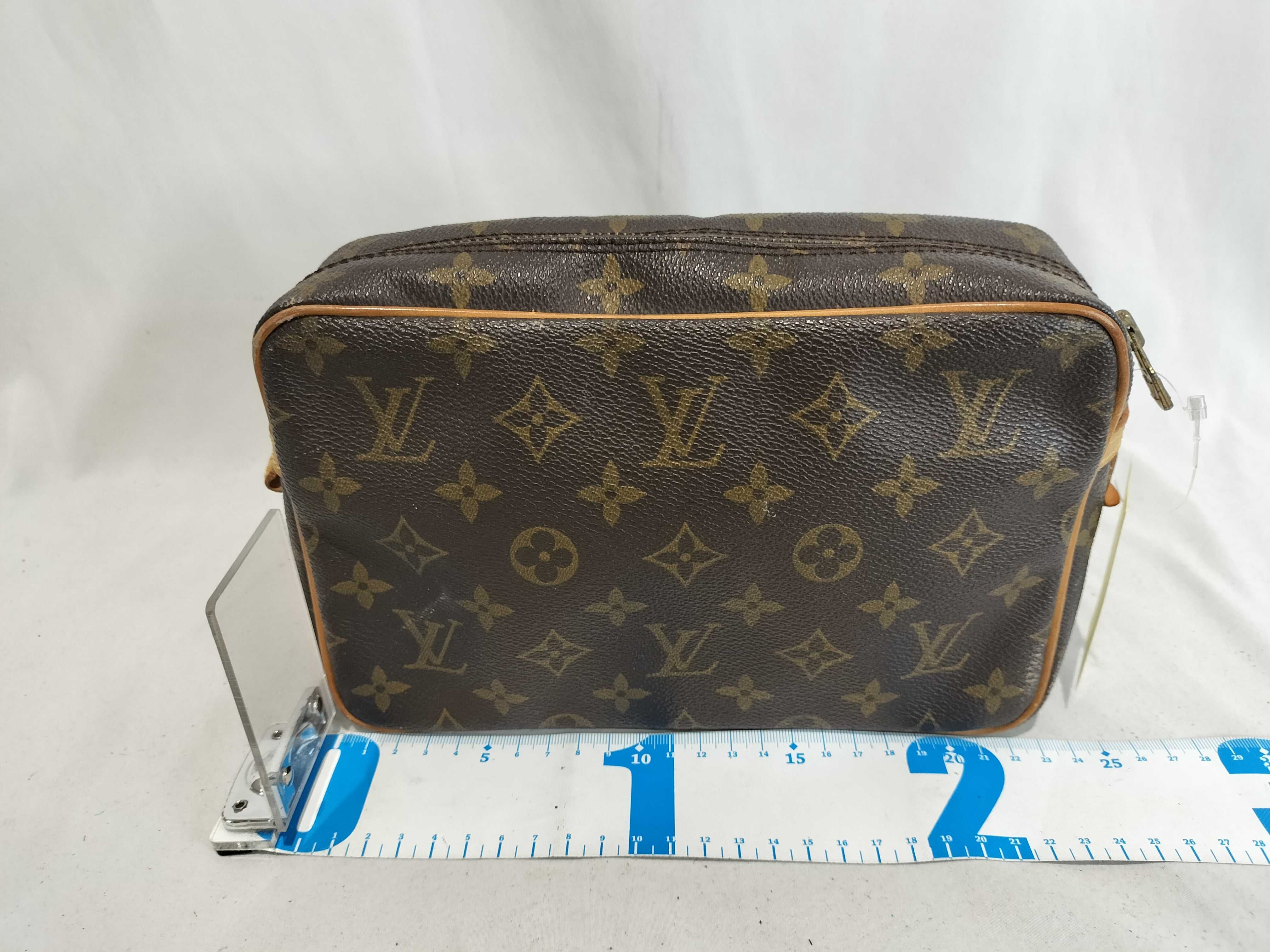 全体擦れ(小) 角擦れ(小) ヌメ革やけ汚れ(小) 金具キズ(小) 内側汚れ(中) ポケット劣化べた剥がれ(有)","タイプライン": "モノグラム", "カテゴリ": "バッグ", "形状コード": "ポーチ", "付属品コード": "", "シリアル・シール・型番": "RFID確認できずシリアル確認できず"