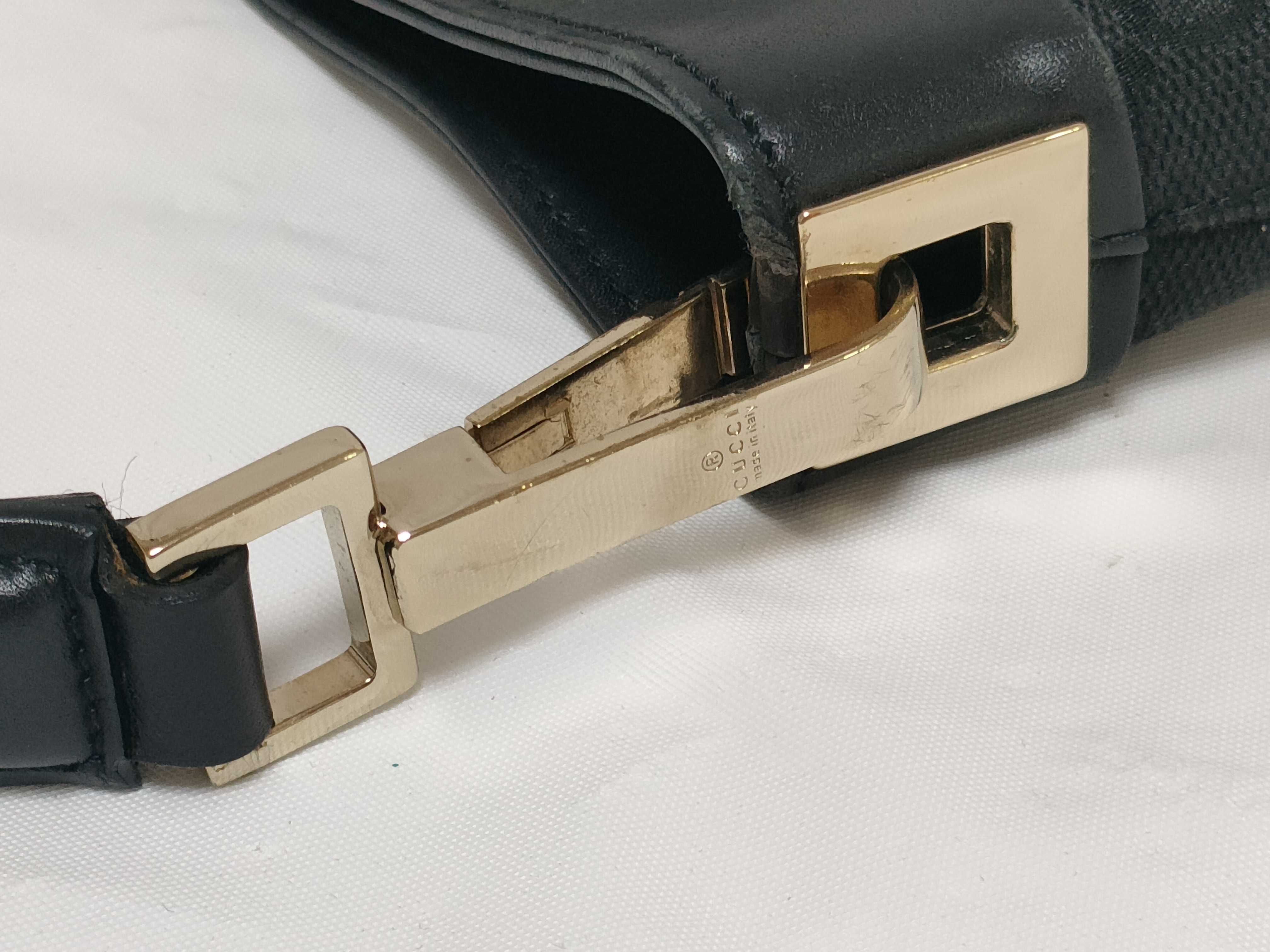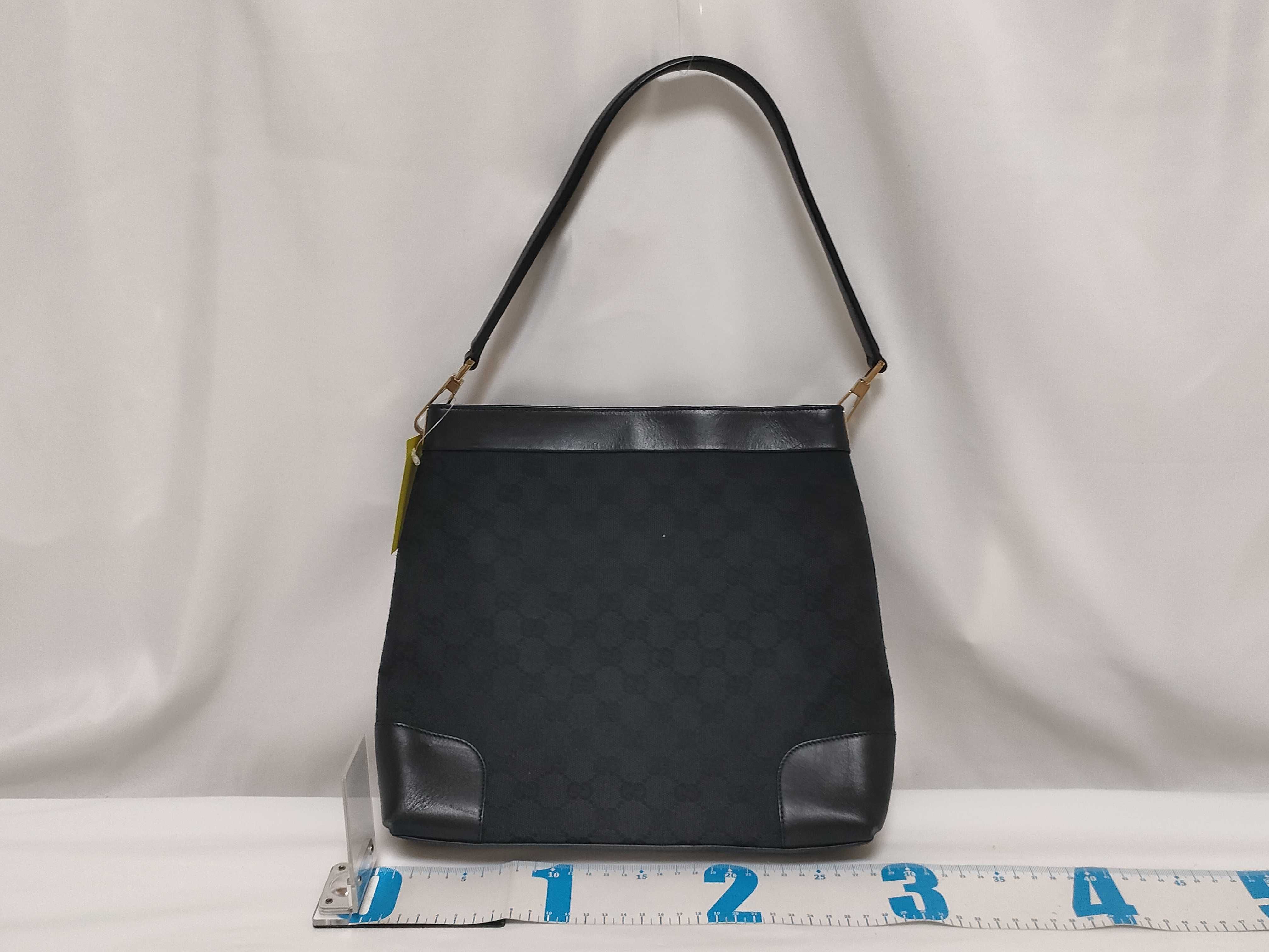 (11945_0183)GUCCI GGキャンバス ワンショルダーバッグ 33900 000926 レザー ブラック ショルダーバッグ
