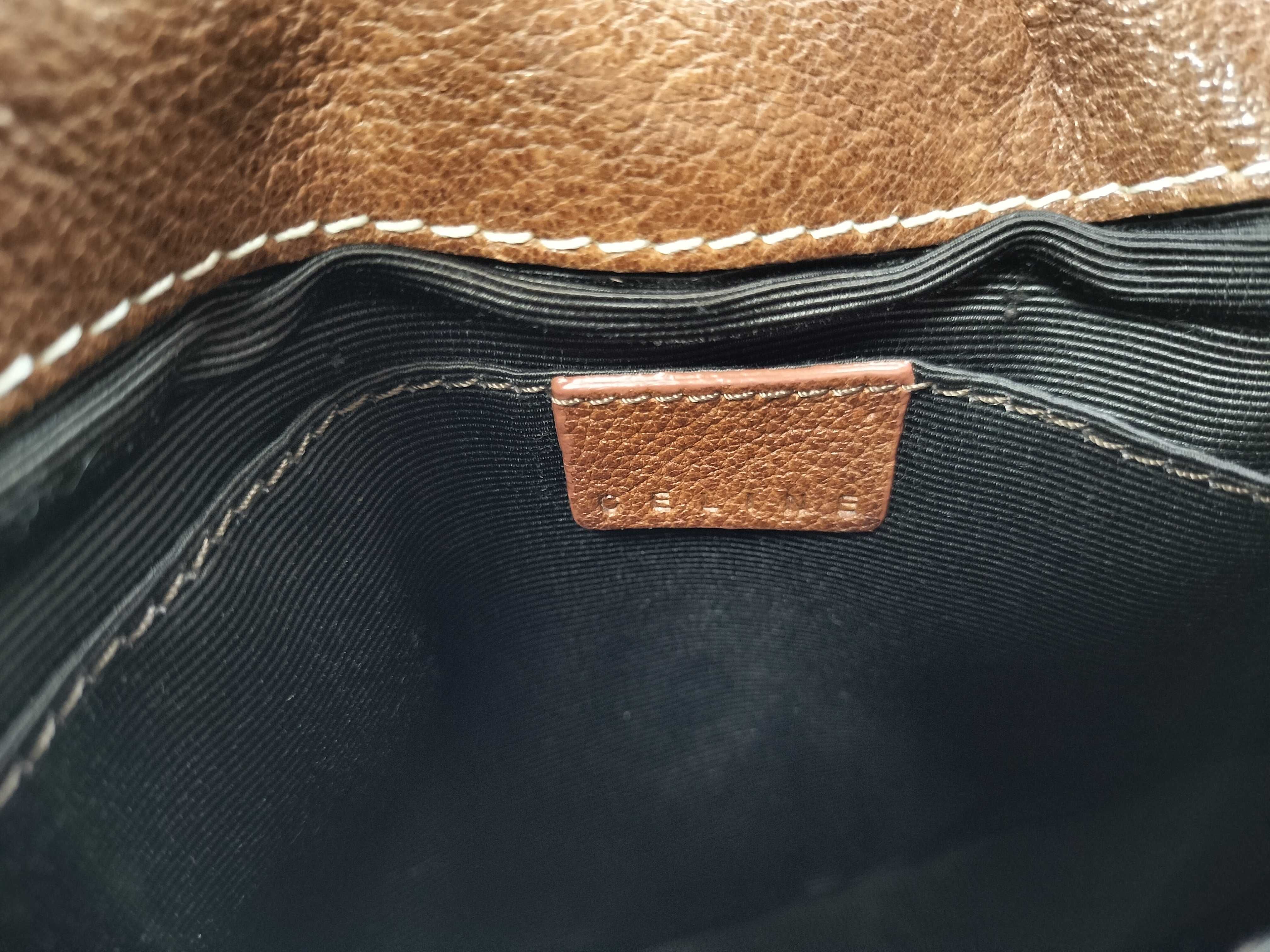 (11945_0350)CELINE レザー 馬車金具・サークル型 ブラウン ショルダーバッグ